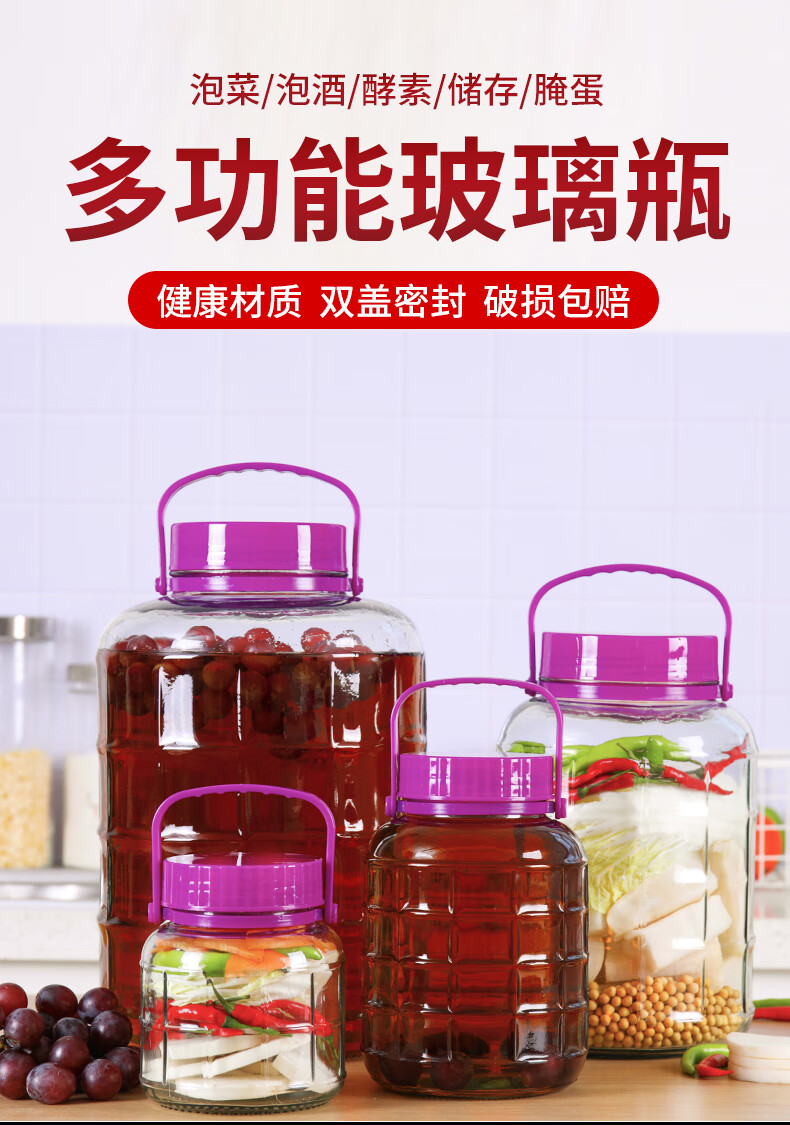 Chen Xiaojiang wine glass bottle sealed jar pickle container wine jar wine bottle 20 catties pickle jar with lid empty bottle quality model 6 catties thickened lead-free glass 3l 3l 33L