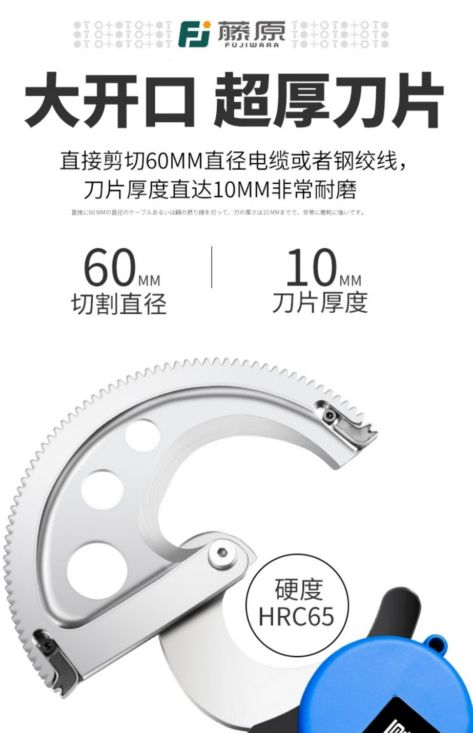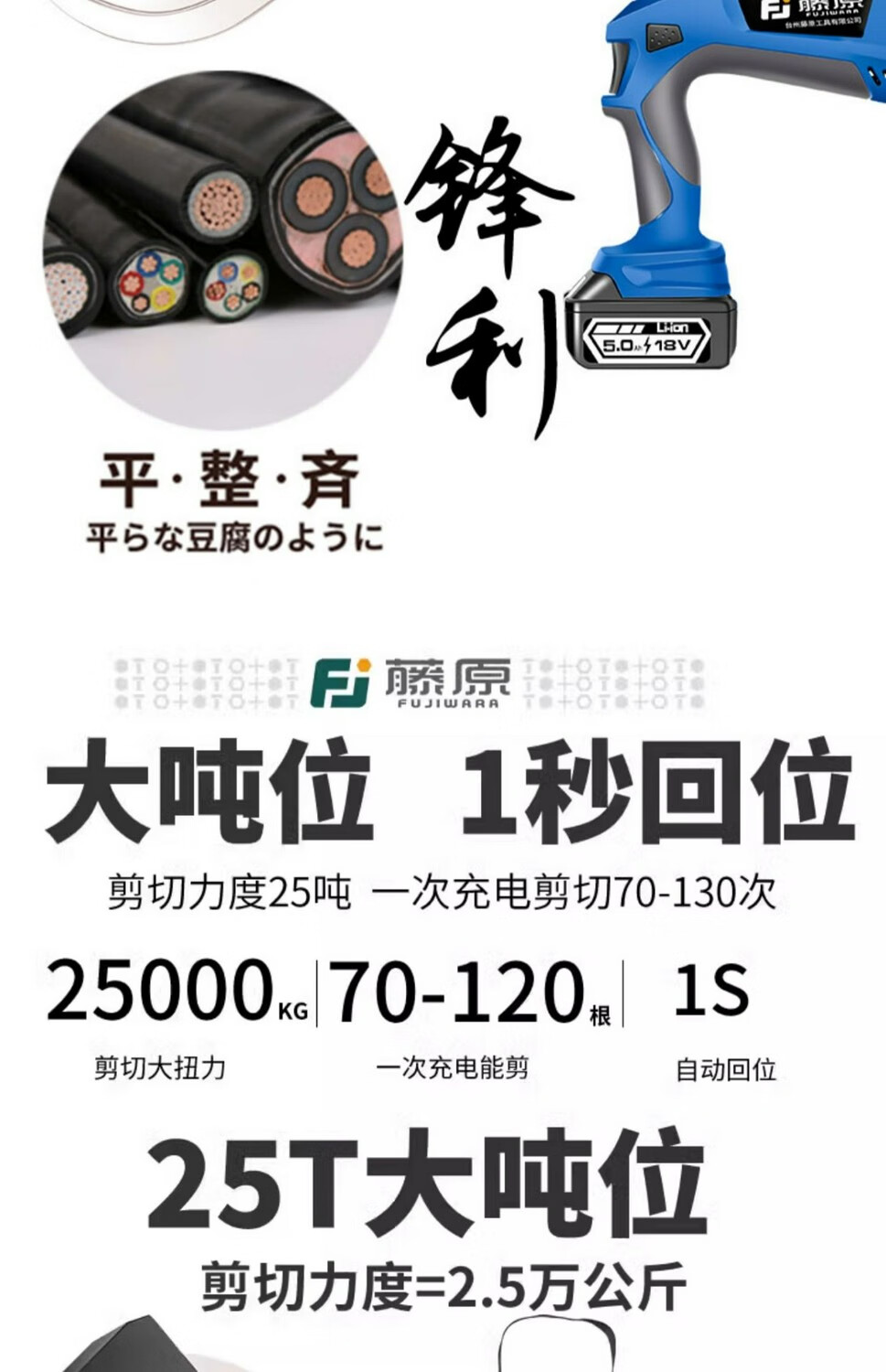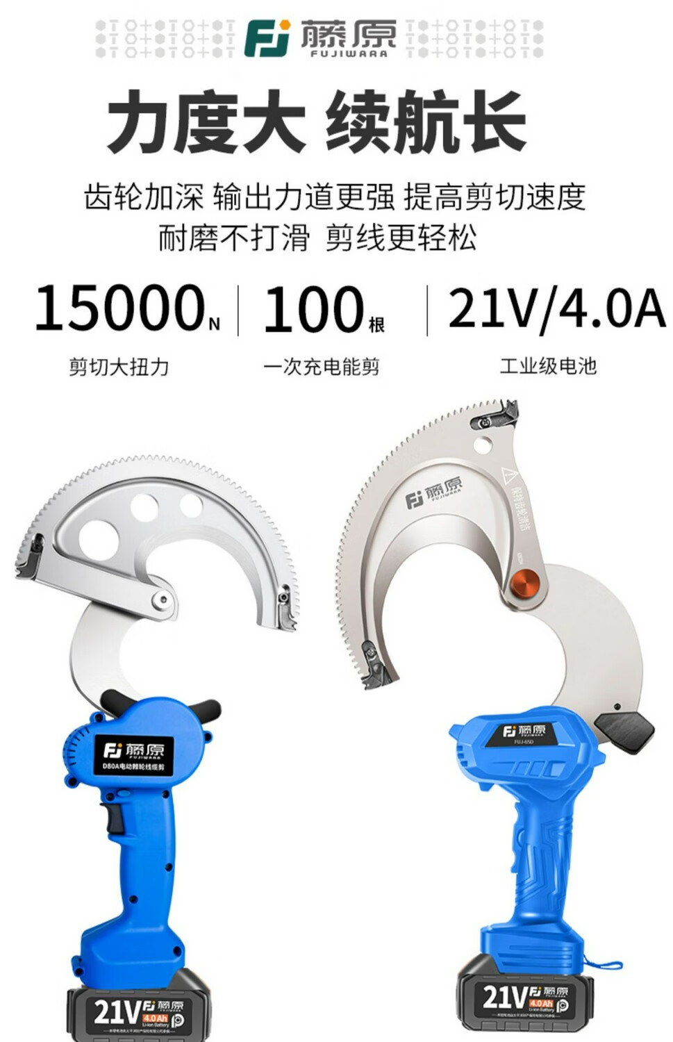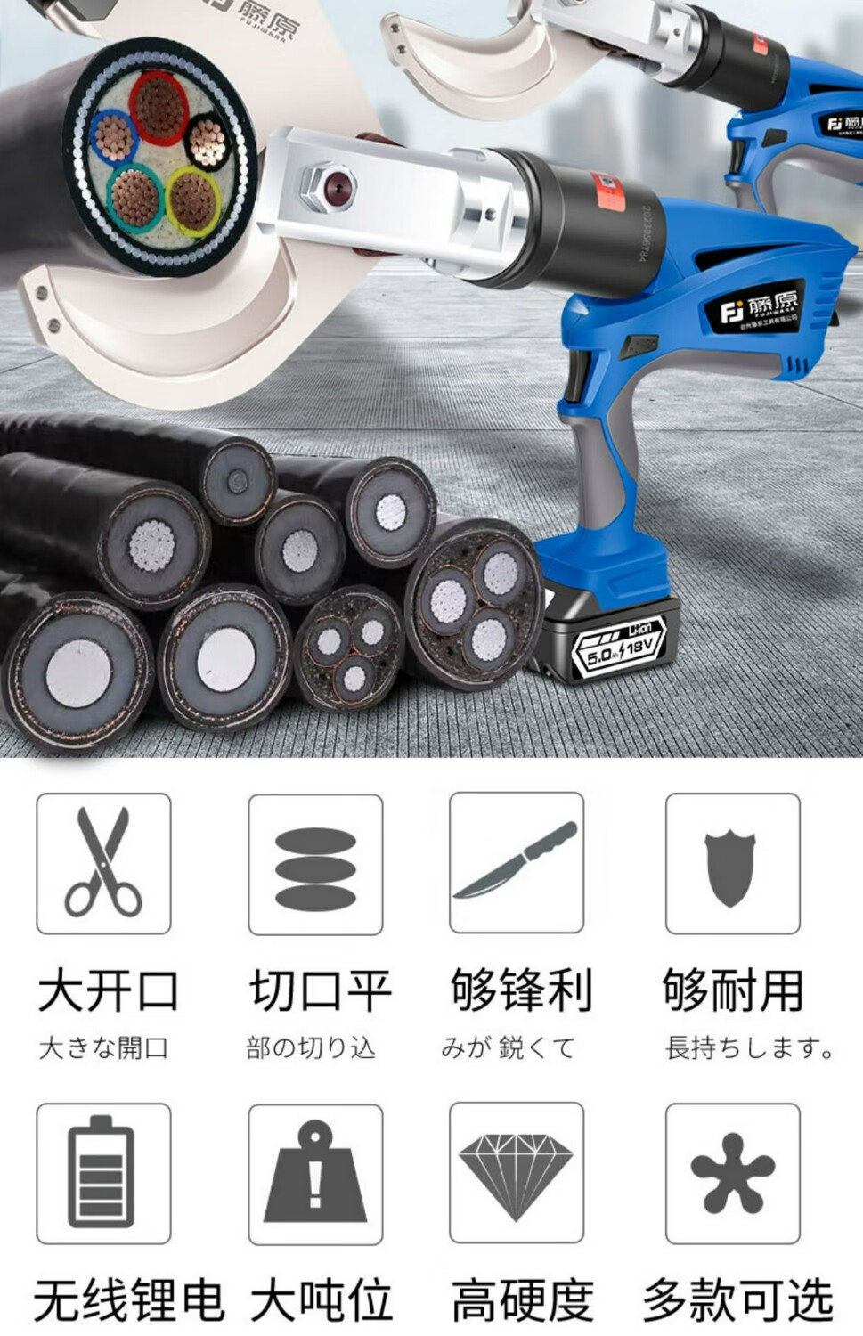 Fujiwara imported from Japan Fujiwara electric ratchet cable cutter wire cutter steel strand rechargeable gear shear lithium battery industrial grade lithium battery steel strand cable cutter FUJ-50G