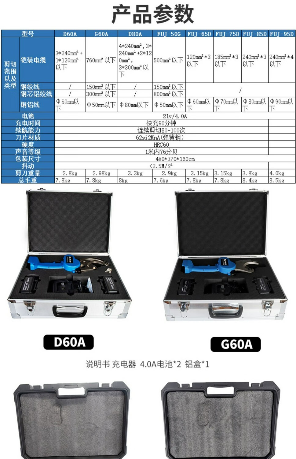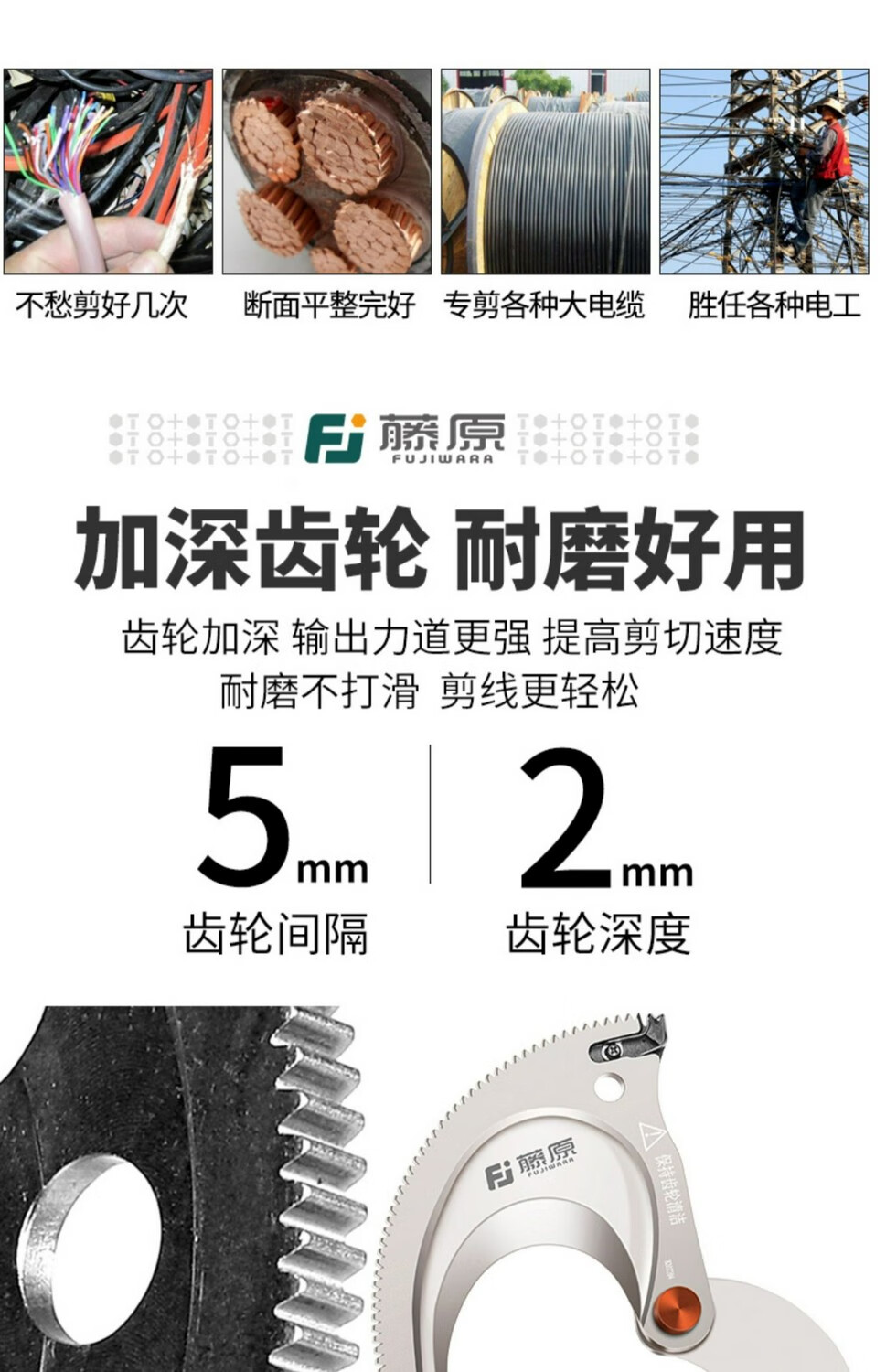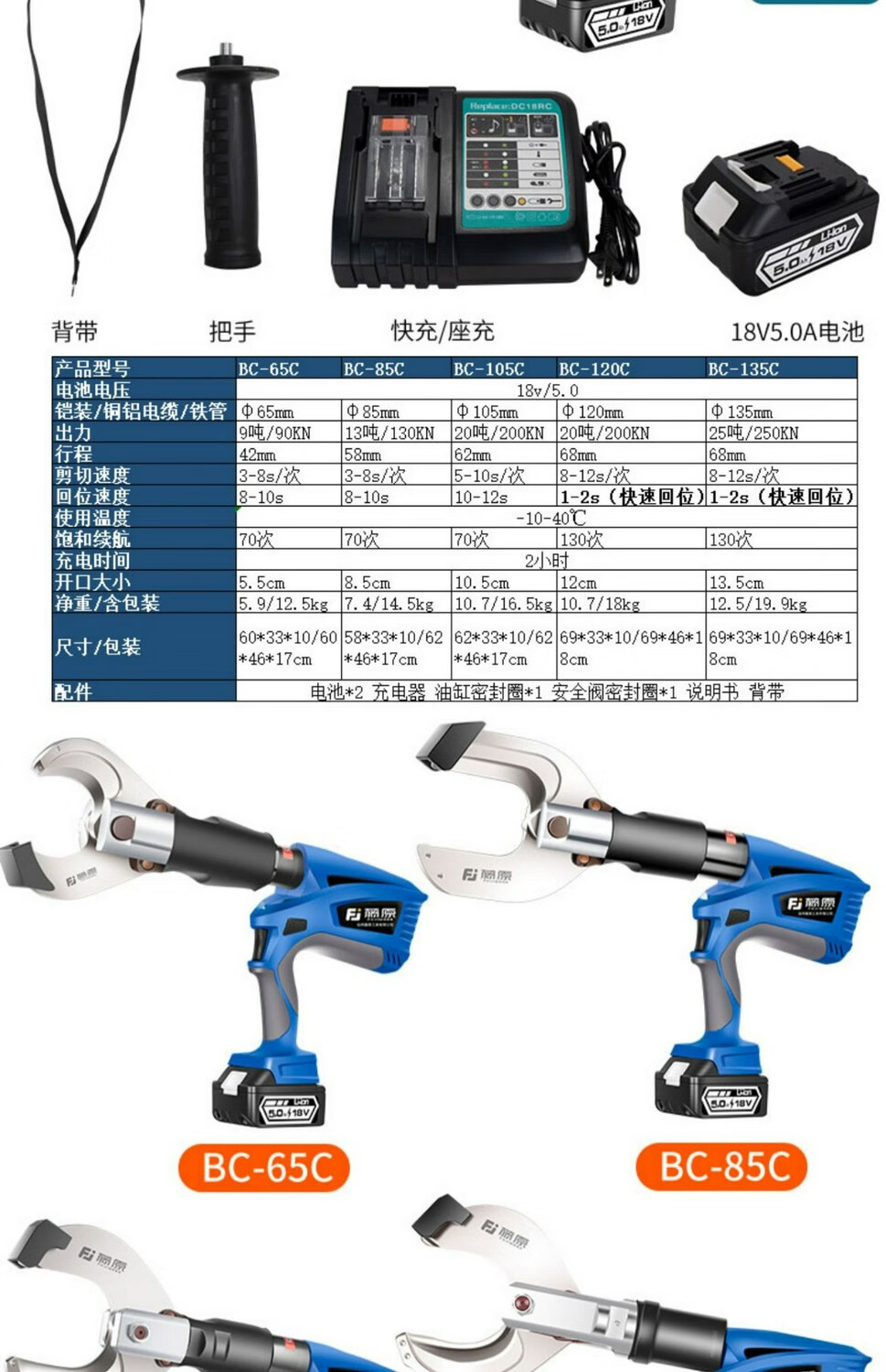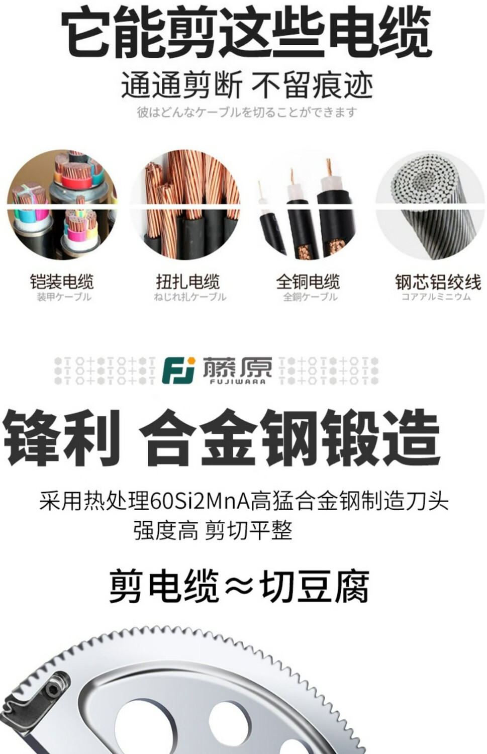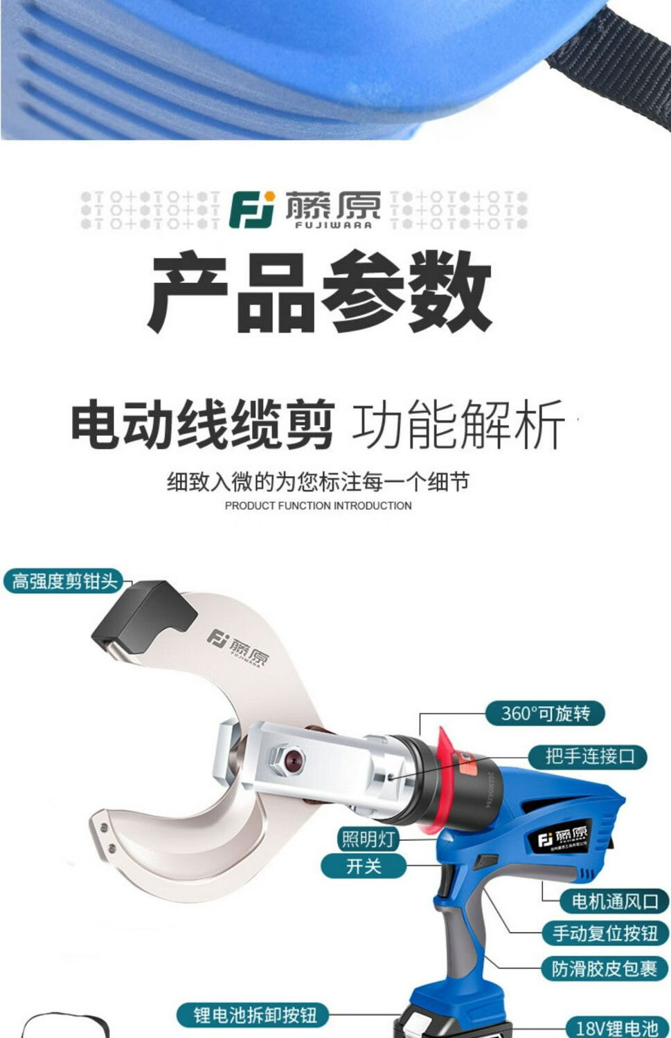 Fujiwara imported from Japan Fujiwara electric ratchet cable cutter wire cutter steel strand rechargeable gear shear lithium battery industrial grade lithium battery steel strand cable cutter FUJ-50G