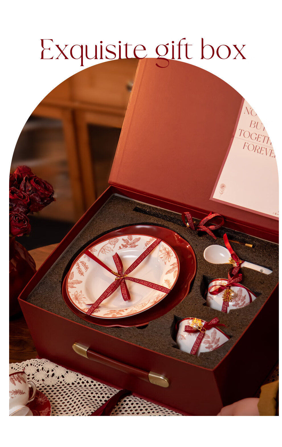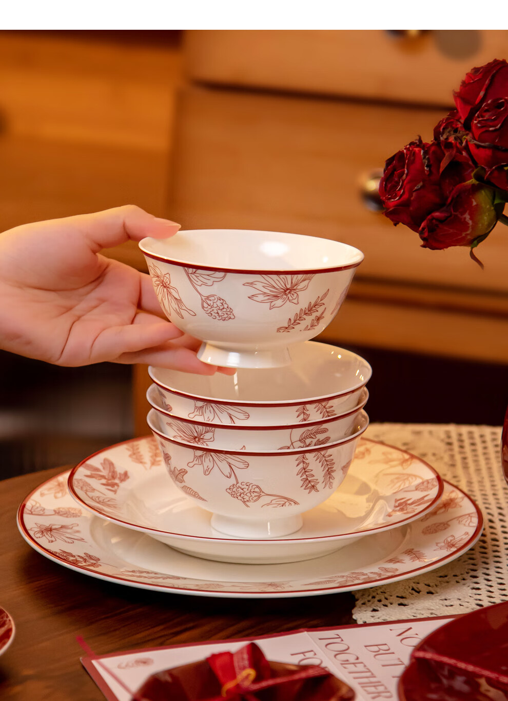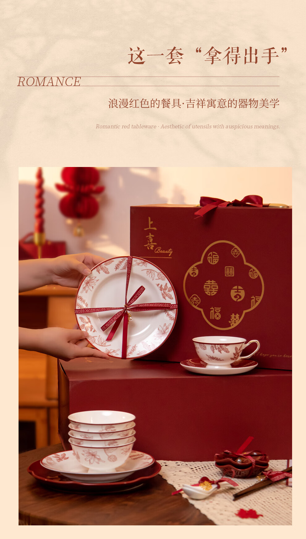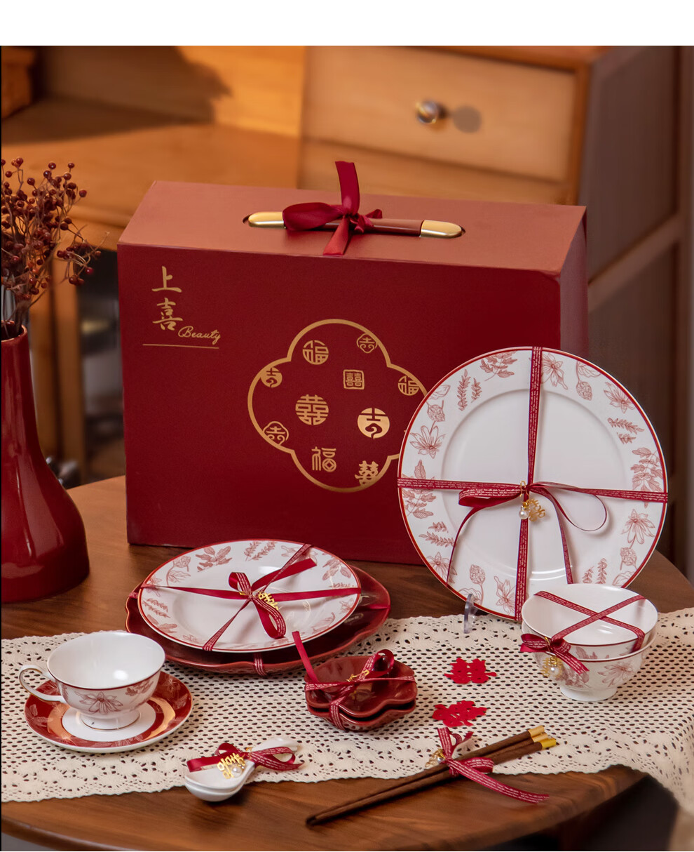 SUCCOHOMEWARE Chinese red festive tableware set gift box wedding gift moving housewarming gift ceramic bowl and plate set Shangxi 4-person meal (high-end gift box) (JD Logistics) fast delivery to the next day