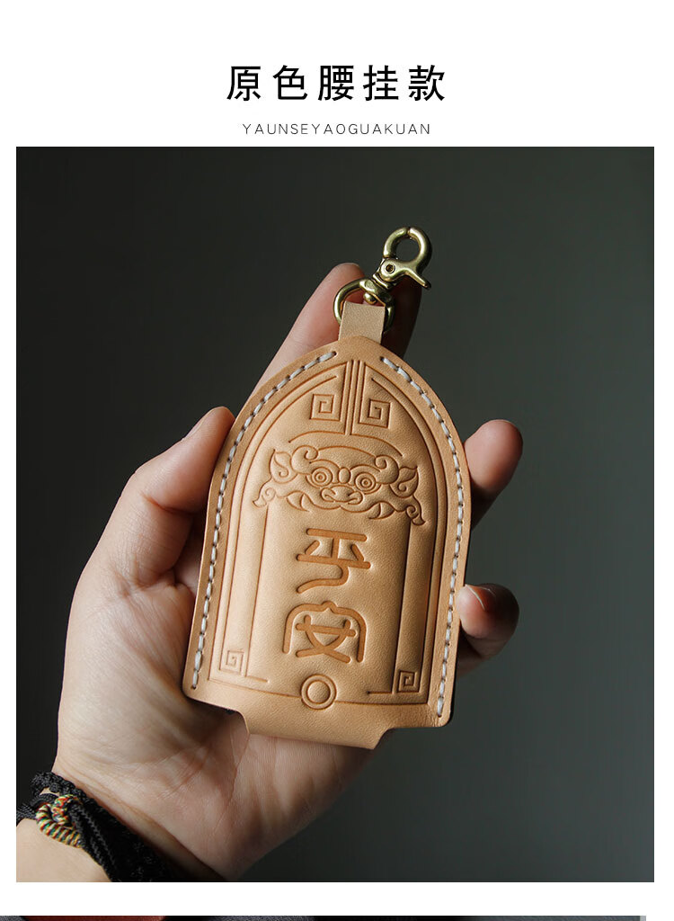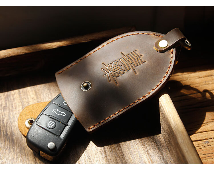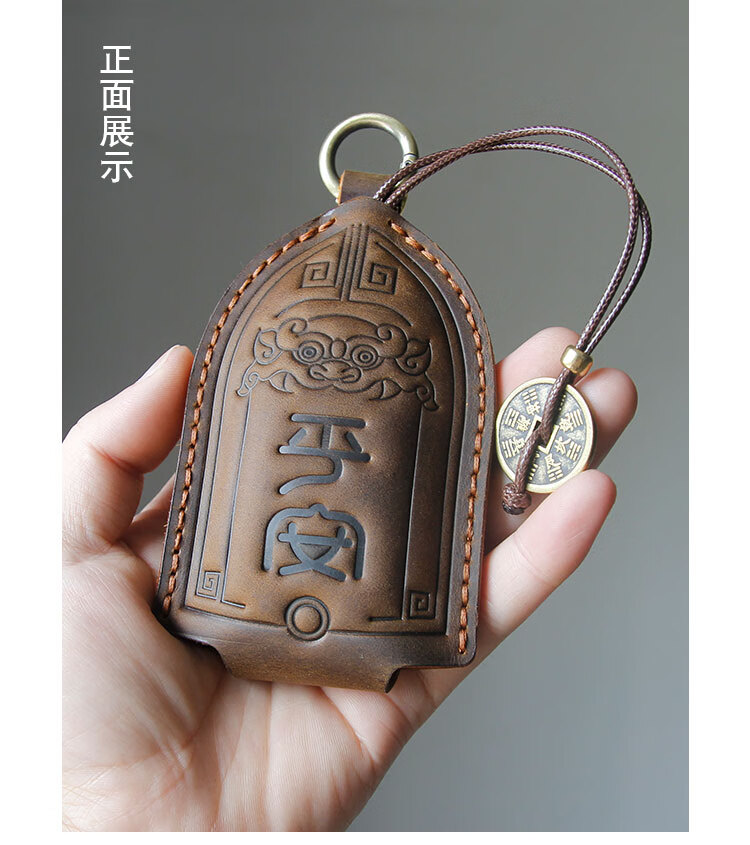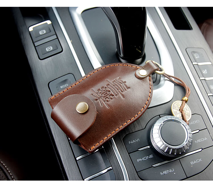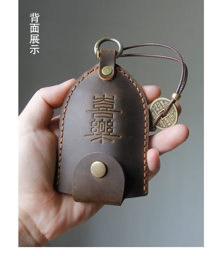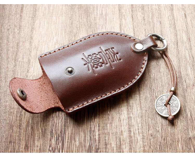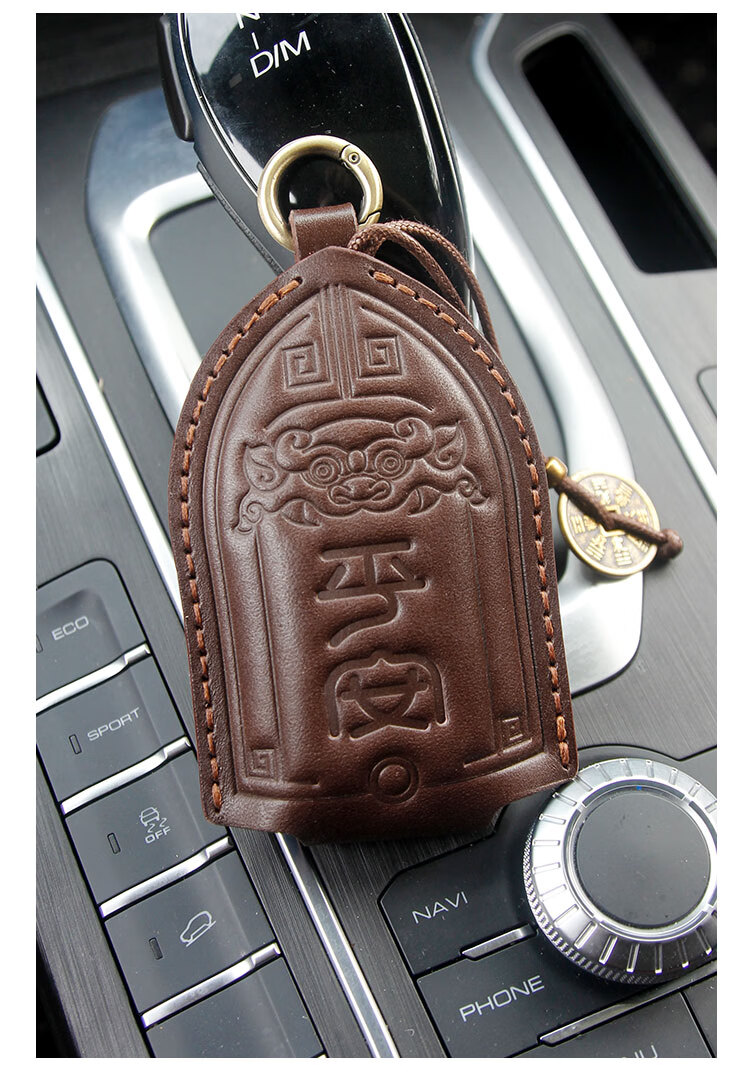 YWZR leather car key bag men's pull-out national style retro universal handmade personalized home leather key cover for men dark khaki (with metal hanging ring)