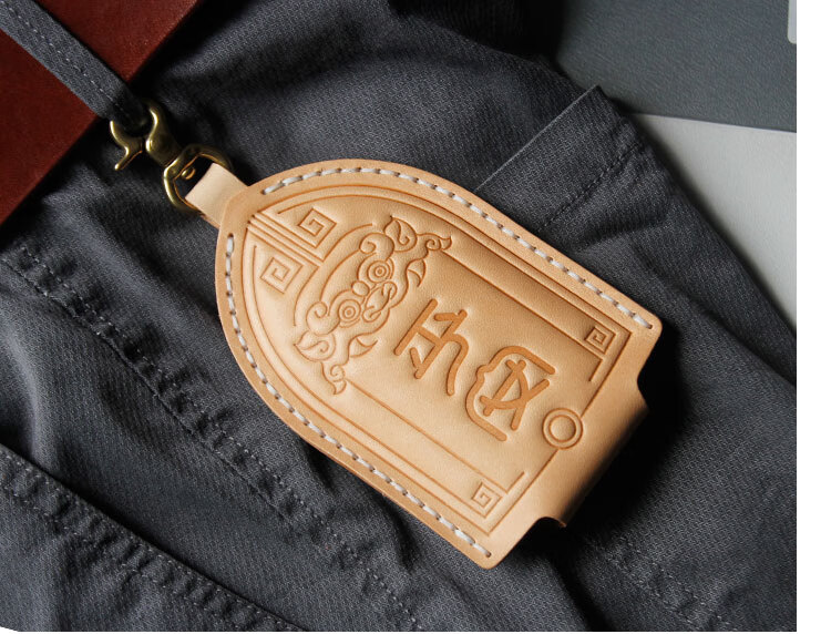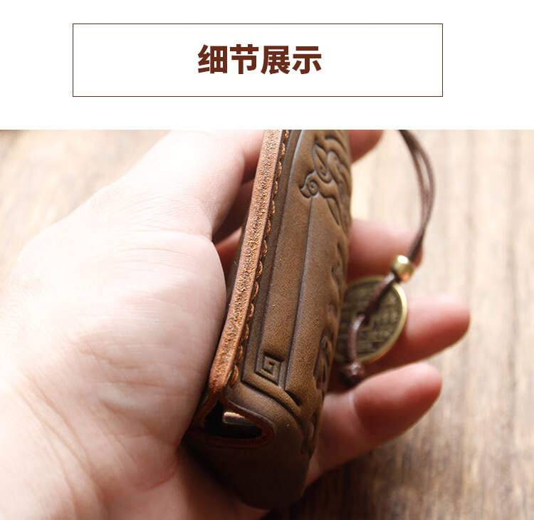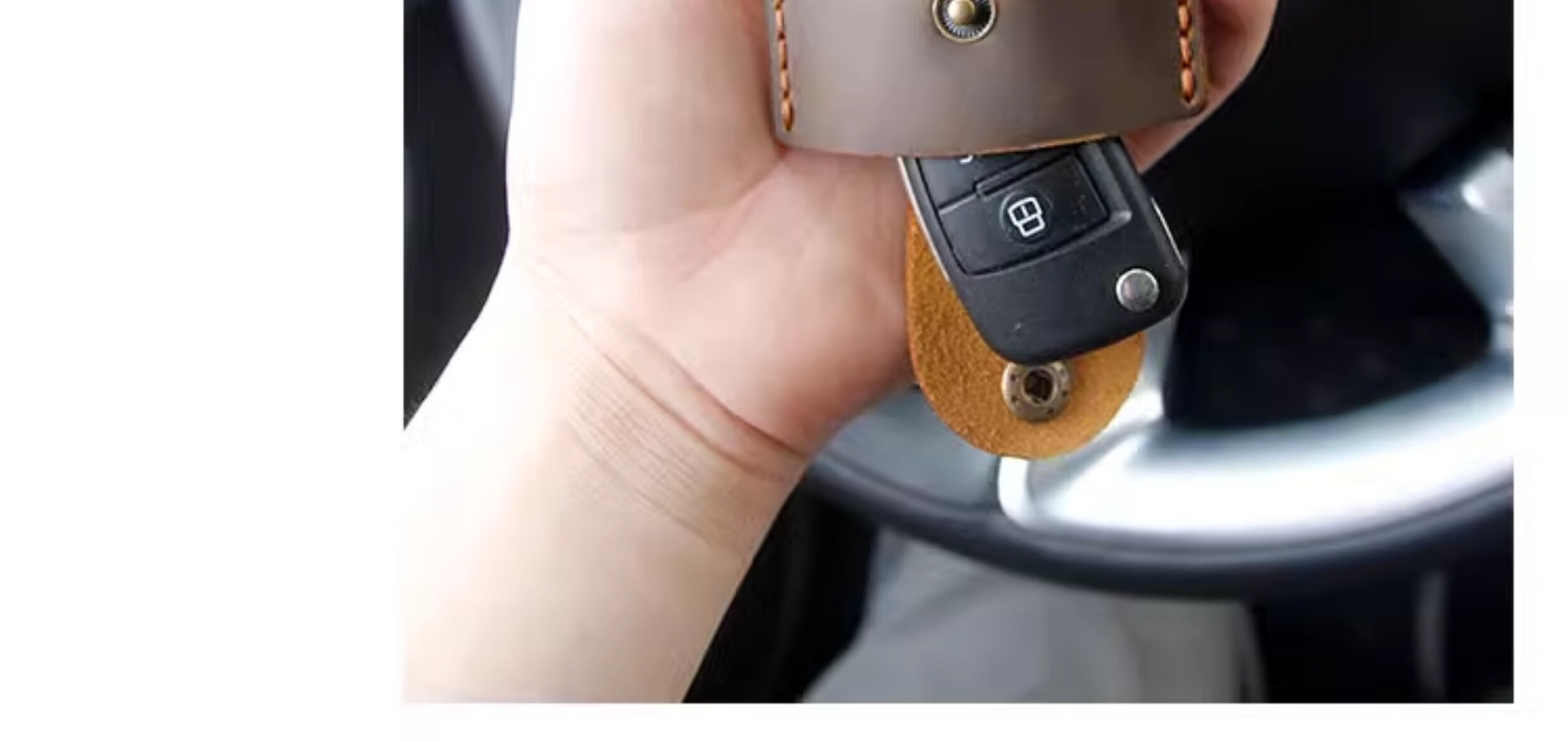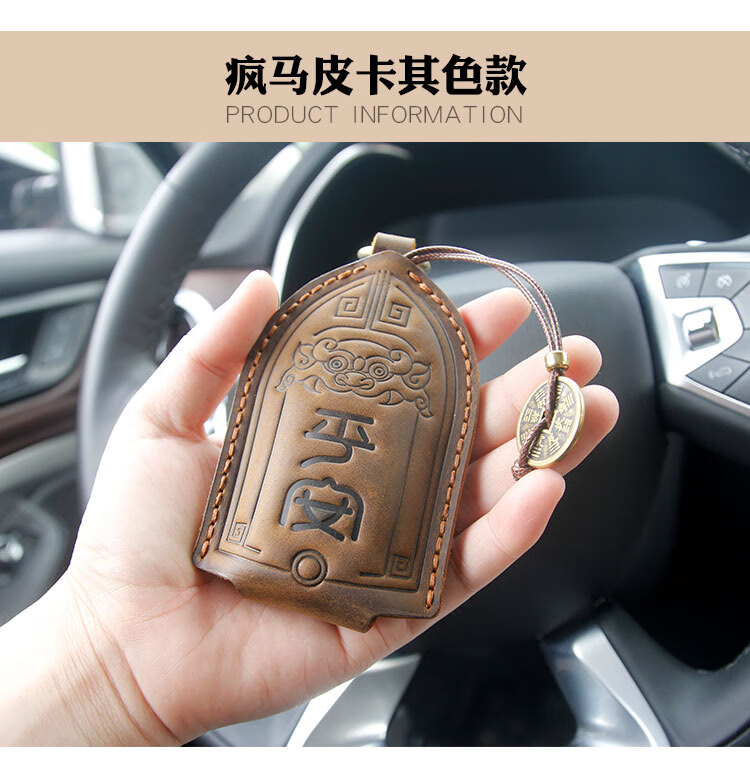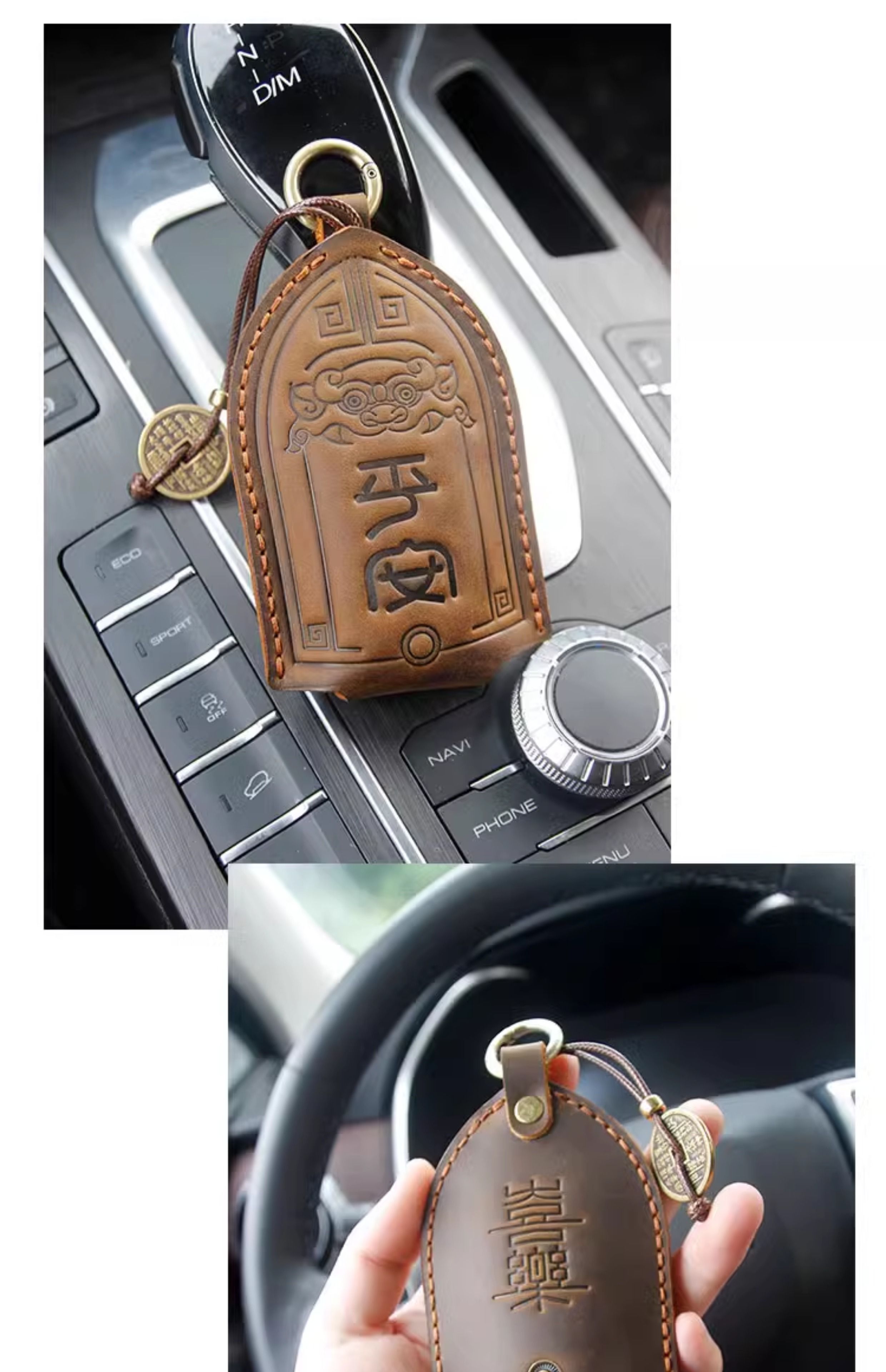 YWZR leather car key bag men's pull-out national style retro universal handmade personalized home leather key cover for men dark khaki (with metal hanging ring)