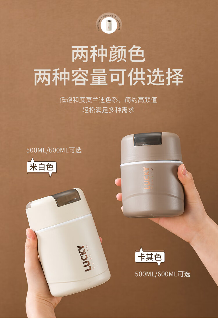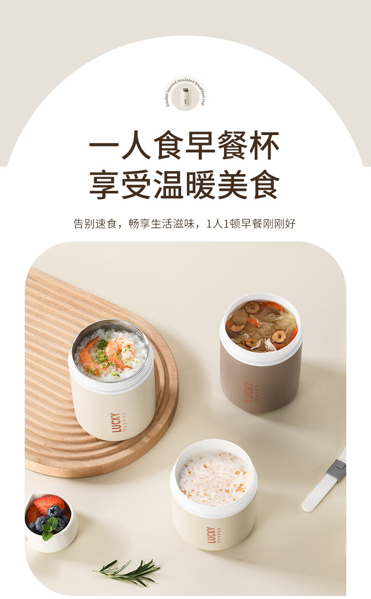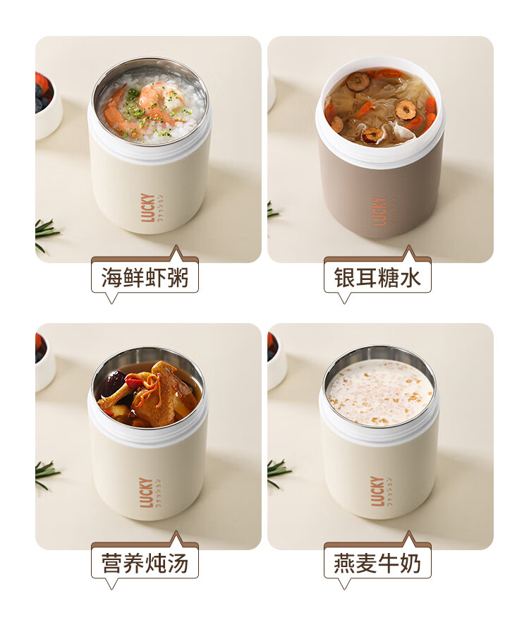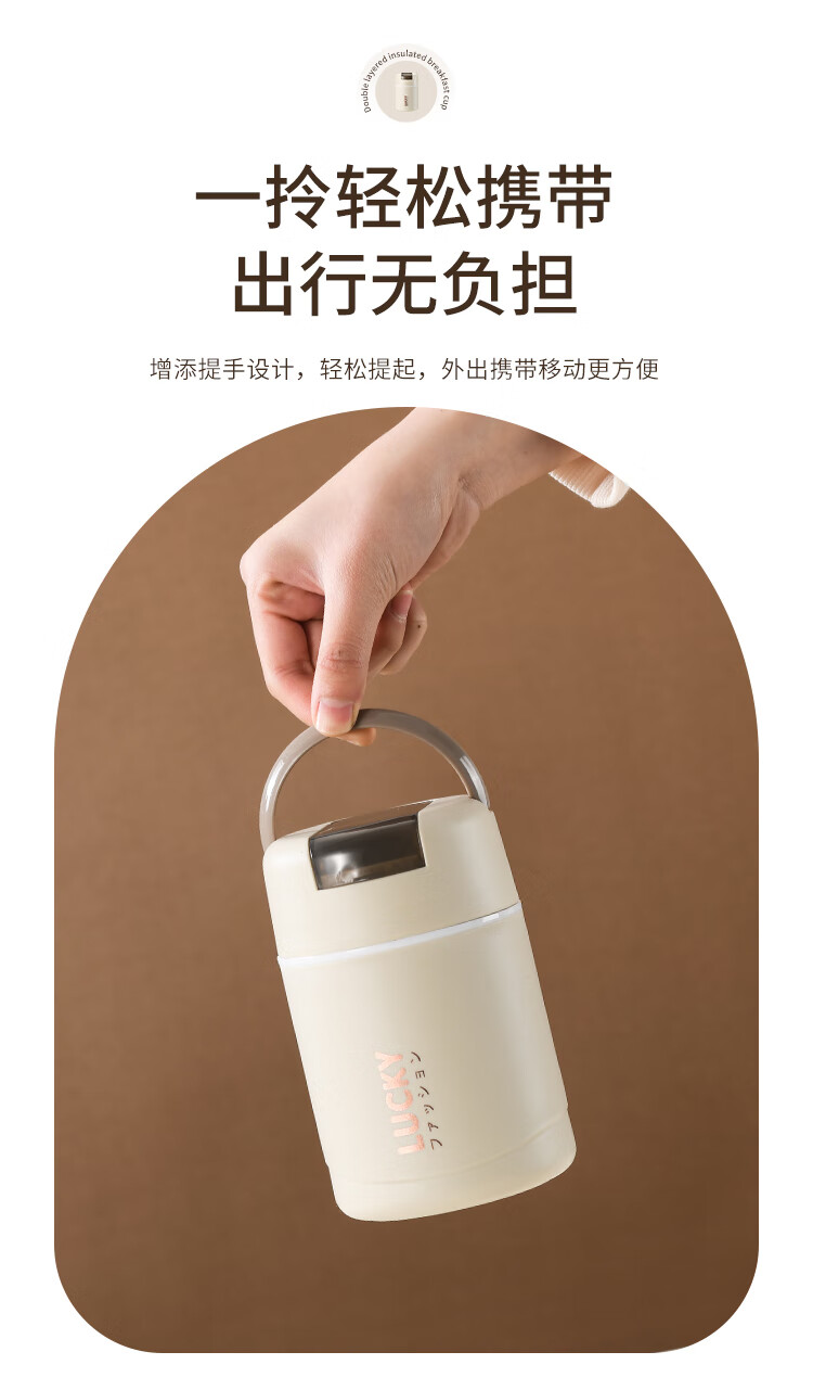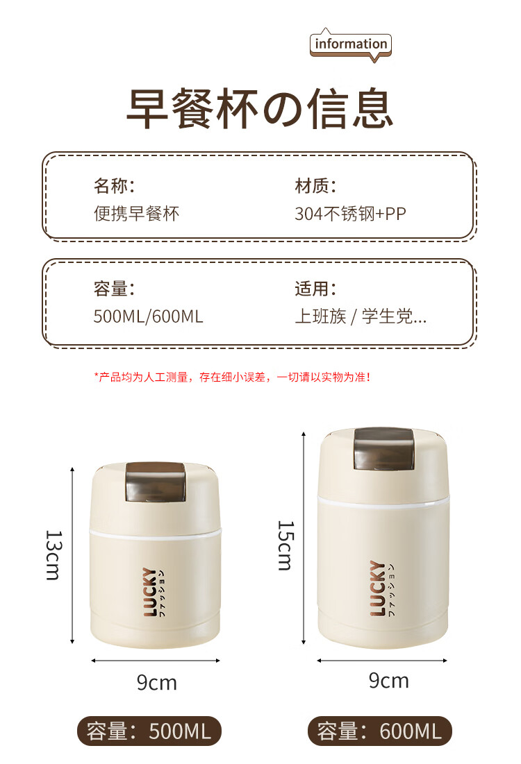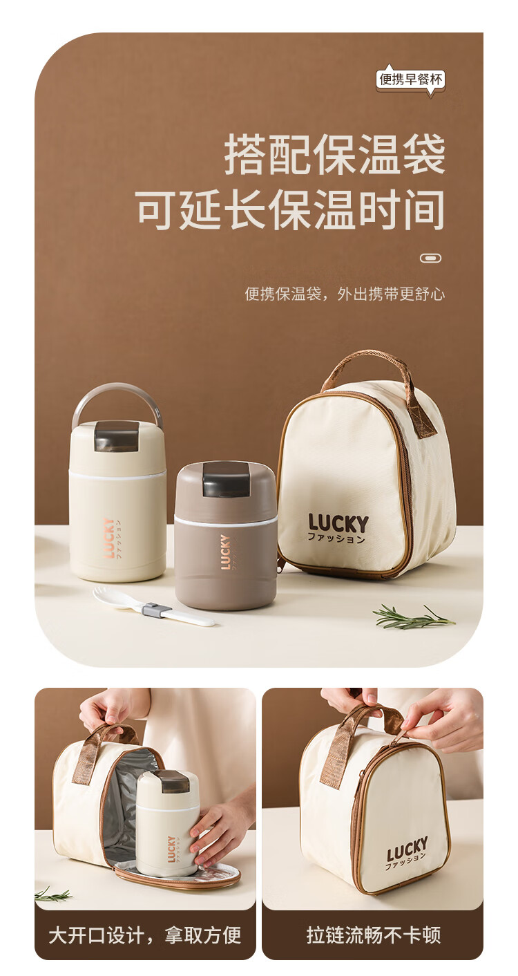 304 Stainless Steel Breakfast Cup with Lid Spoon Girls Breakfast Porridge Cup Soup Kettle Soy Milk Portable Takeaway Cup Water Cup Milk White 580ml 304 Liner + Folding Spoon
