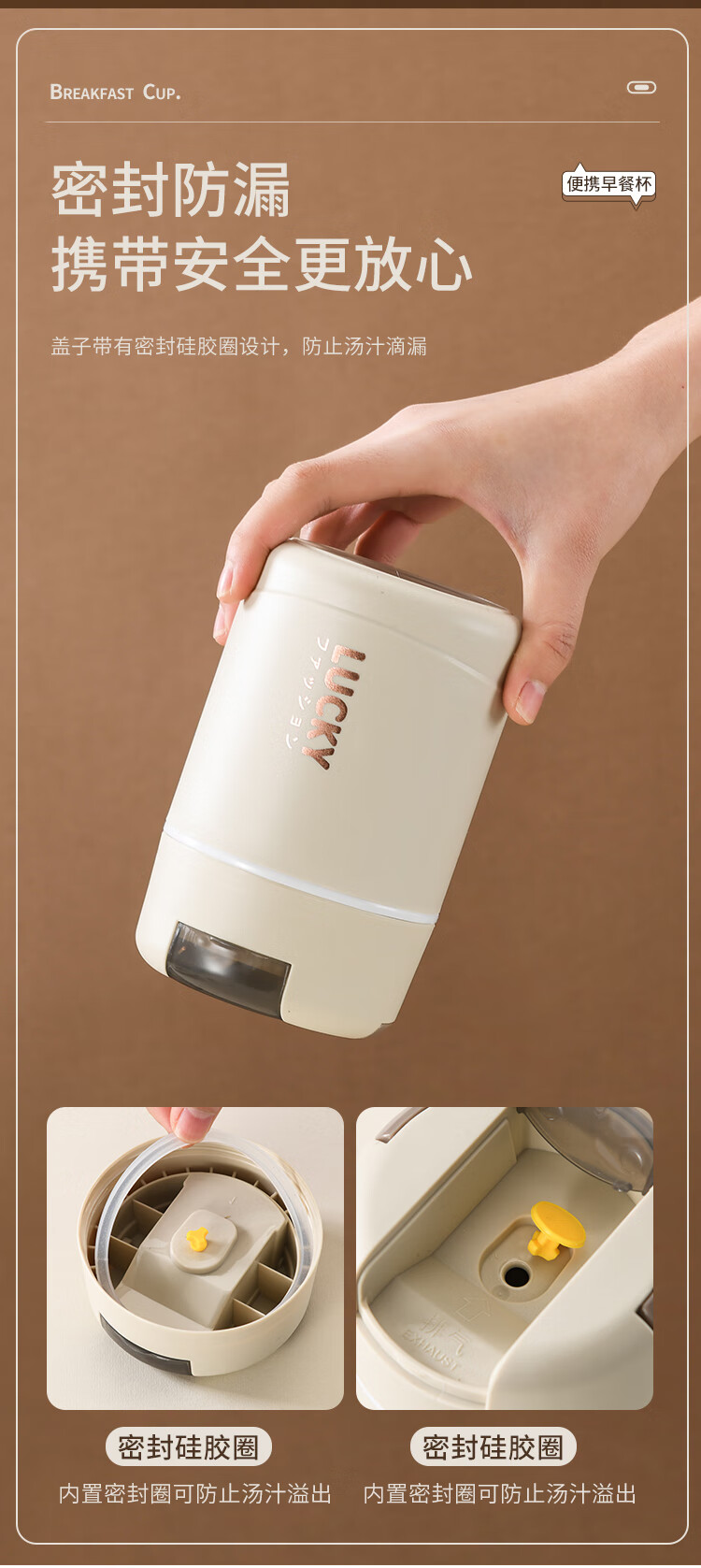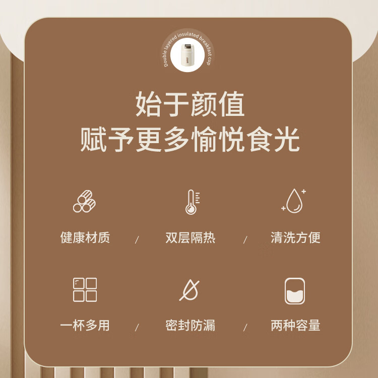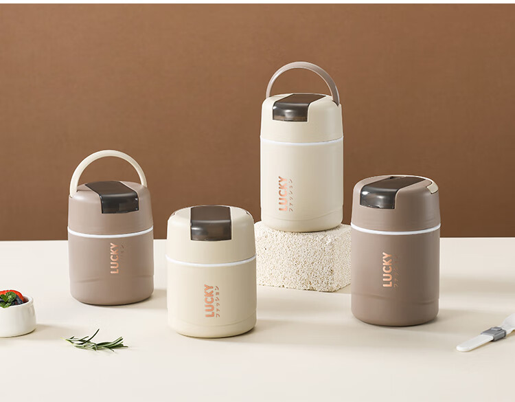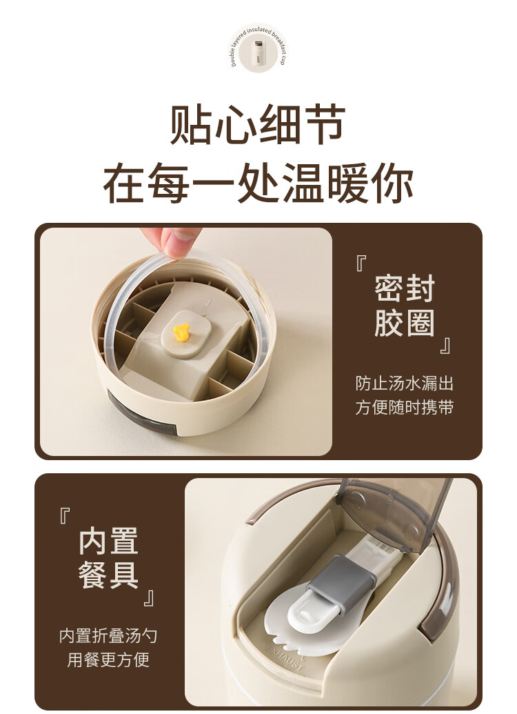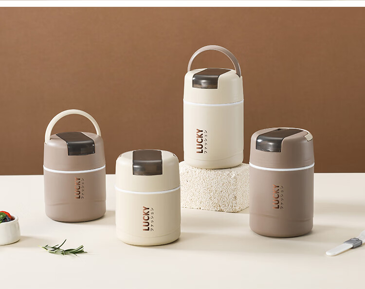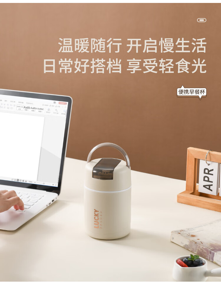 304 Stainless Steel Breakfast Cup with Lid Spoon Girls Breakfast Porridge Cup Soup Kettle Soy Milk Portable Takeaway Cup Water Cup Milk White 580ml 304 Liner + Folding Spoon