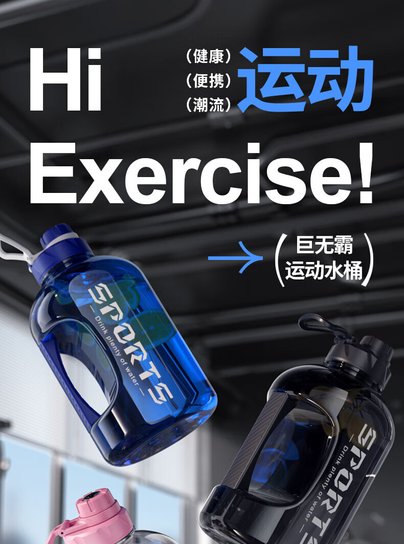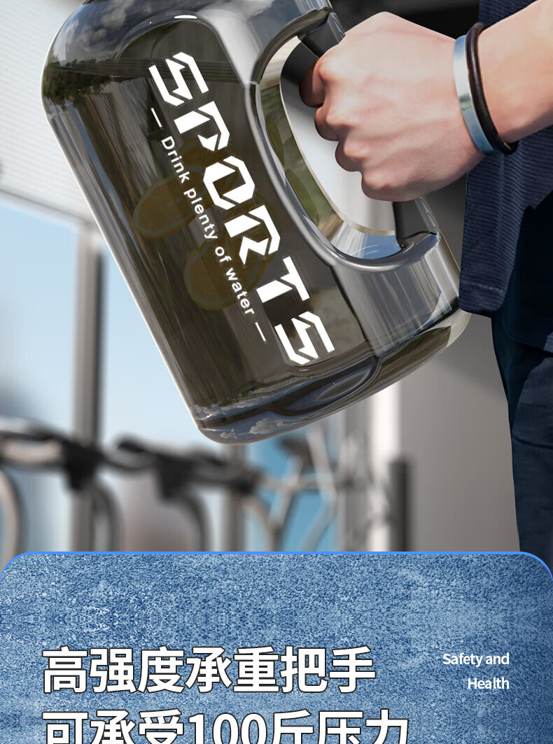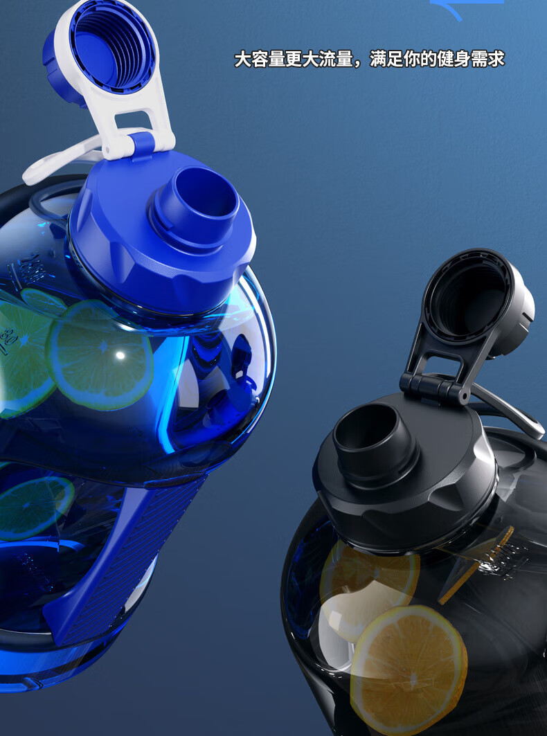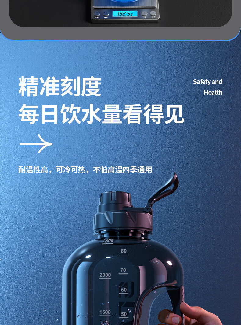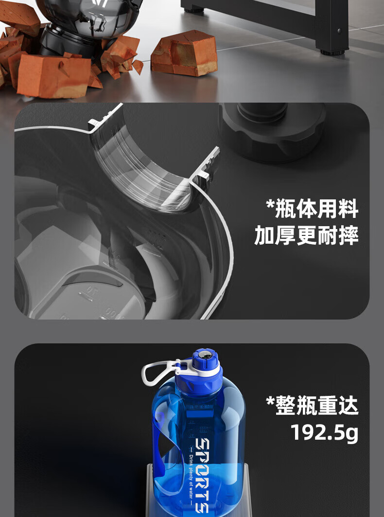 Shoumi Internet celebrity water cup large capacity plastic compass sports water bottle summer straw cup portable big belly cup tons of bucket Vitality black gift compass + straw + cup 1800ml One bucket holds ten cups