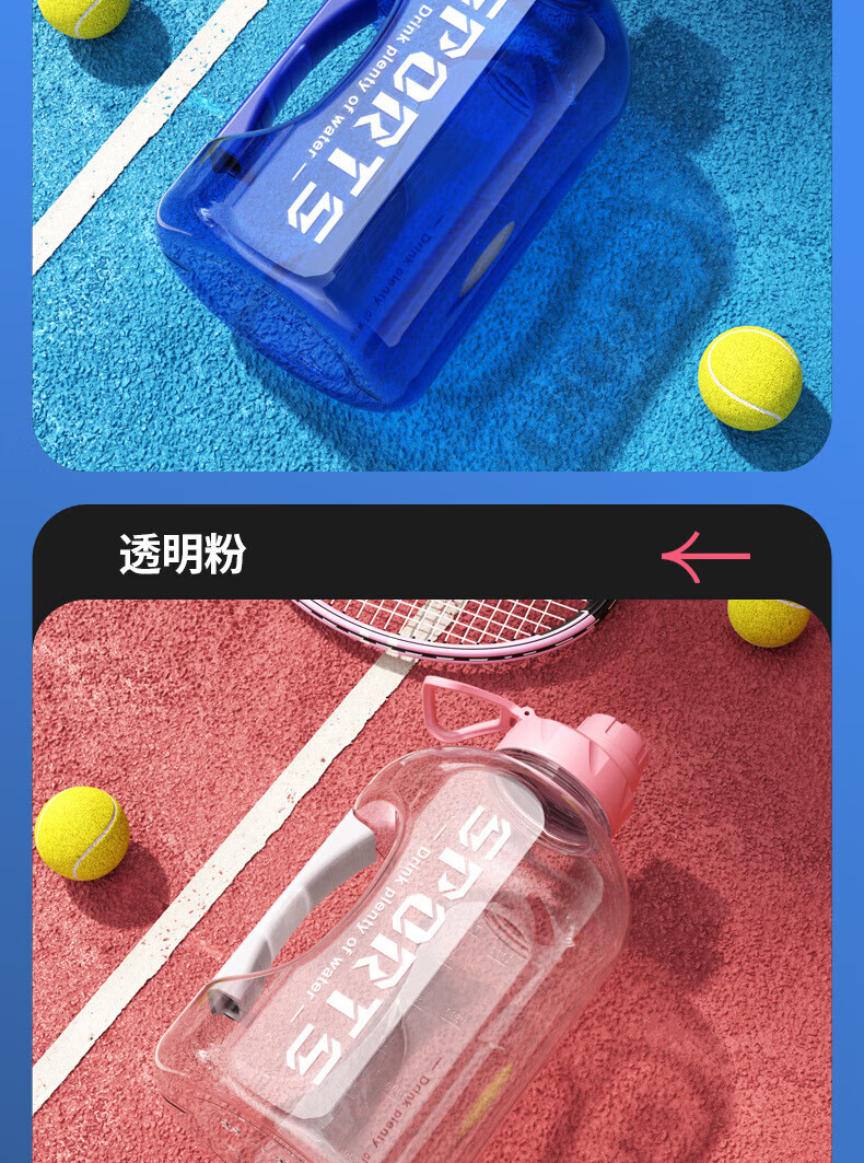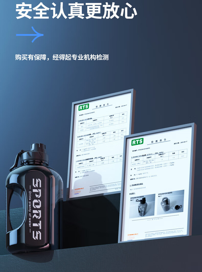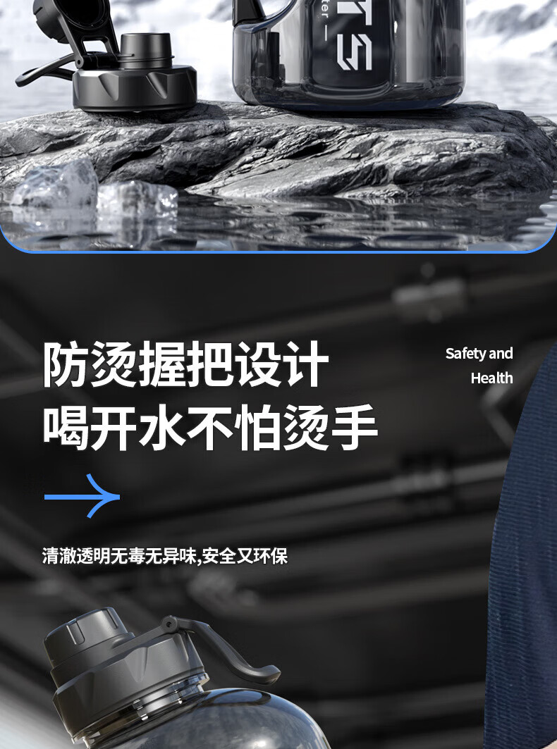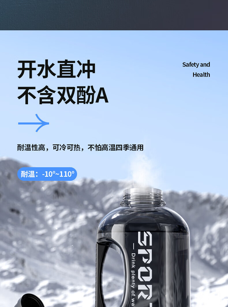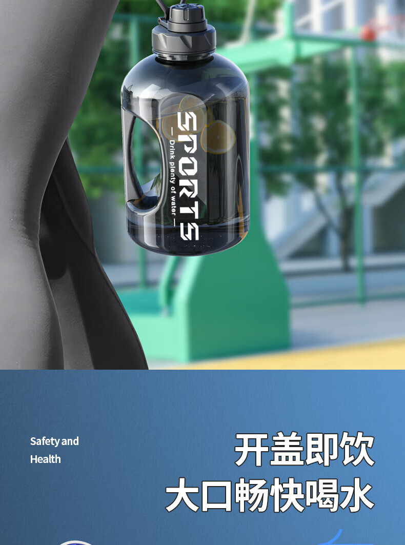 Shoumi Internet celebrity water cup large capacity plastic compass sports water bottle summer straw cup portable big belly cup tons of bucket Vitality black gift compass + straw + cup 1800ml One bucket holds ten cups