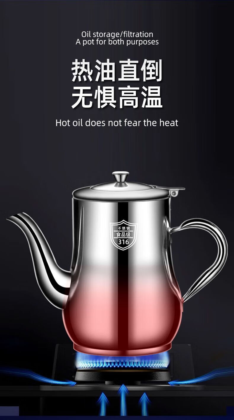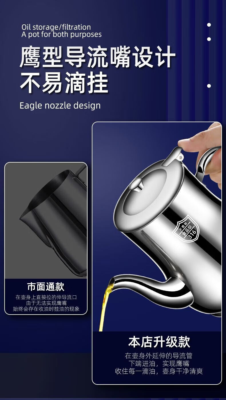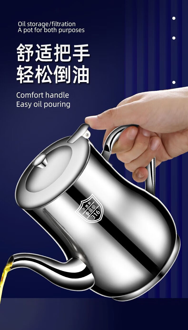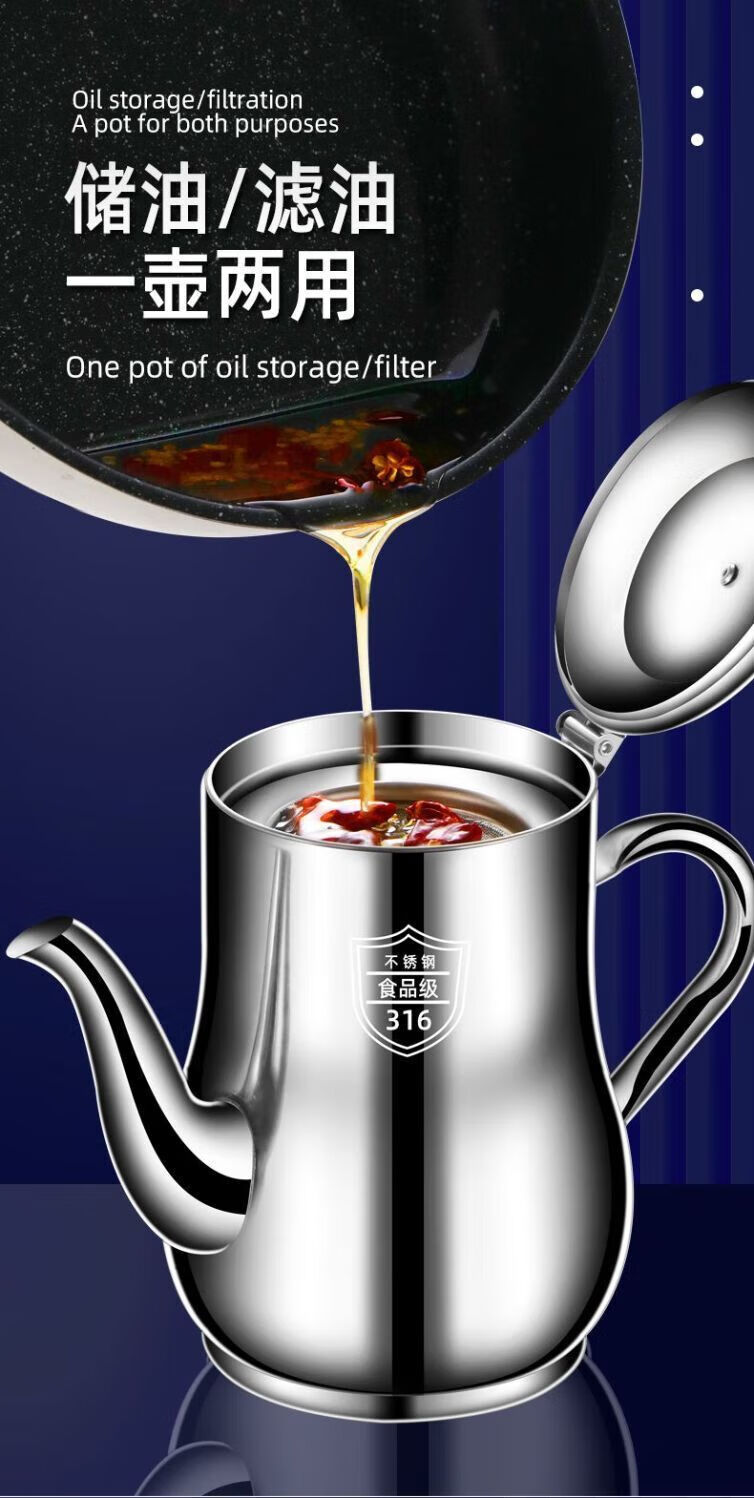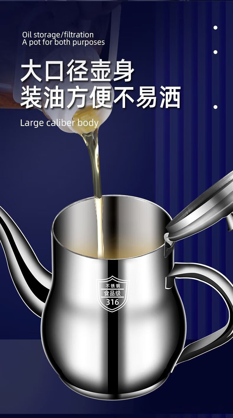 Filter oil pot, stainless steel oil pot, household leak-proof ounce kettle, pouring oil bottle, condiment bottle, kitchen oil can, extra thick 500 ml (304/316 need to contact), the huge thick version is about to end and comes with a filter + dustproof