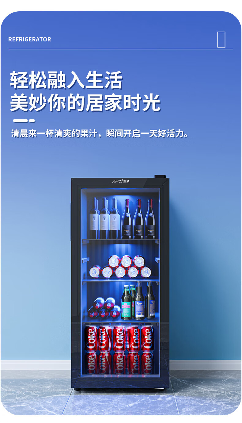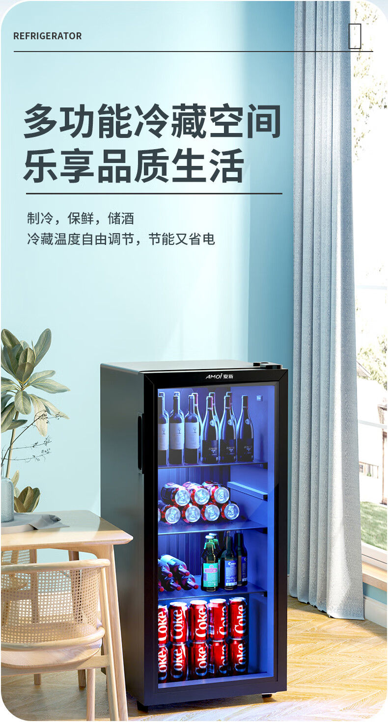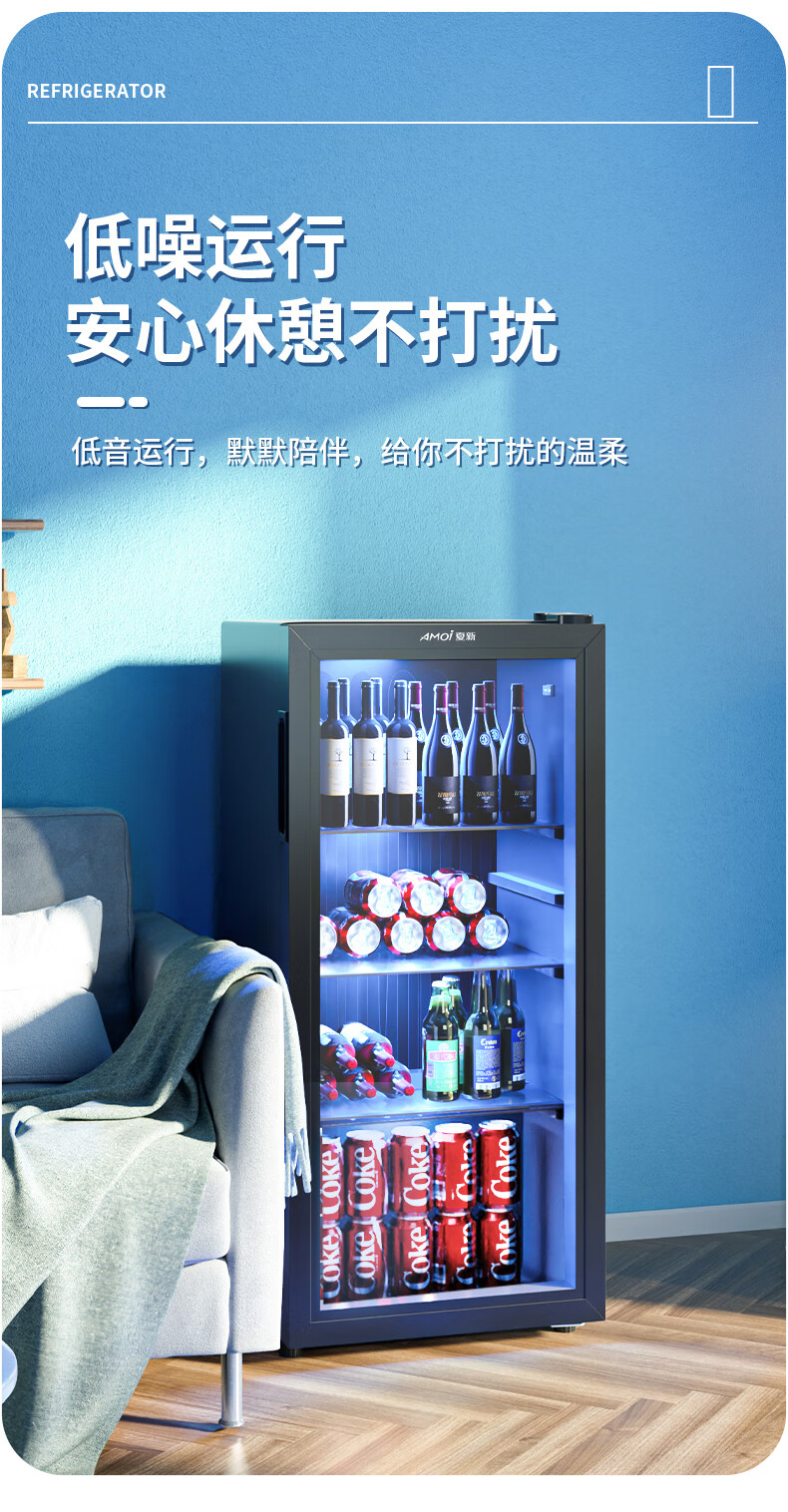 Amoi Ice Bar Freezer European Style Constant Temperature Wine Cabinet Hotel Home Living Room Refrigerator Mini Small Single Door Office Fresh Display Sample Tea Beverage Medicine Cabinet Fully Refrigerated + Blue Light Lamp Level 1 Energy Efficiency 109 Liters