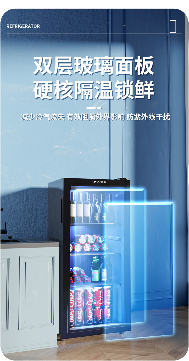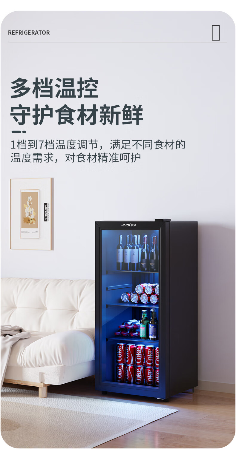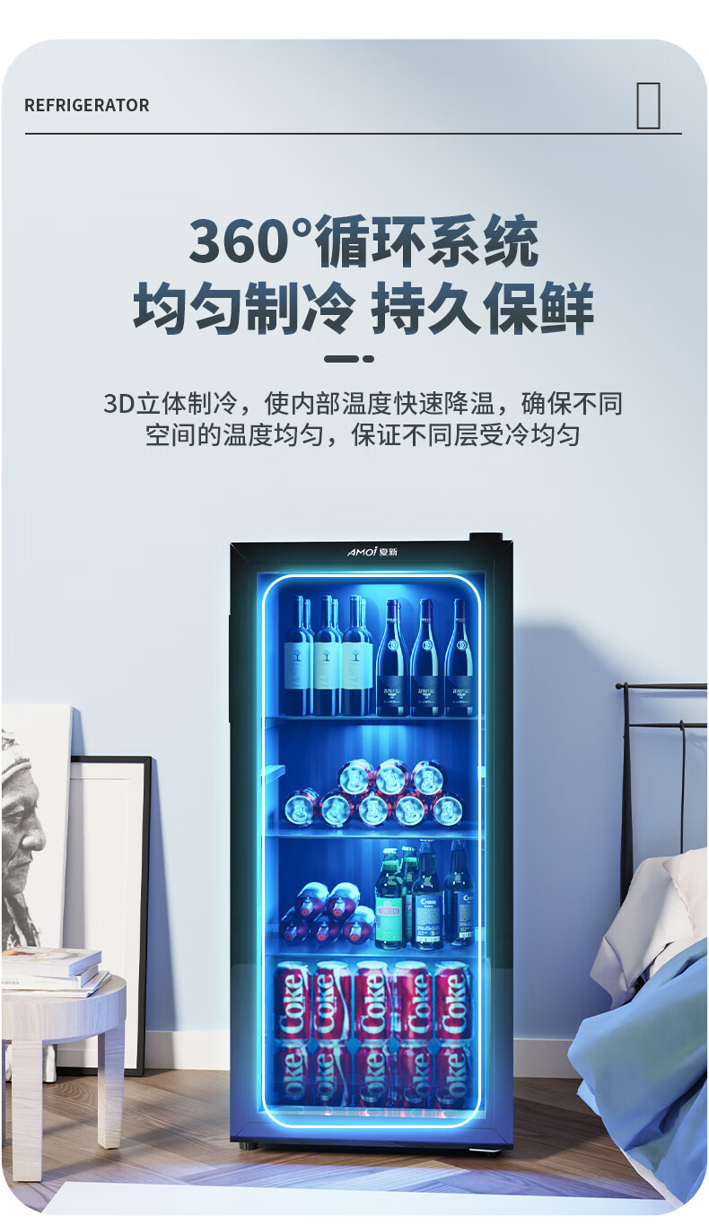 Amoi Ice Bar Freezer European Style Constant Temperature Wine Cabinet Hotel Home Living Room Refrigerator Mini Small Single Door Office Fresh Display Sample Tea Beverage Medicine Cabinet Fully Refrigerated + Blue Light Lamp Level 1 Energy Efficiency 109 Liters