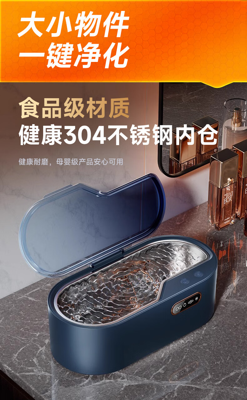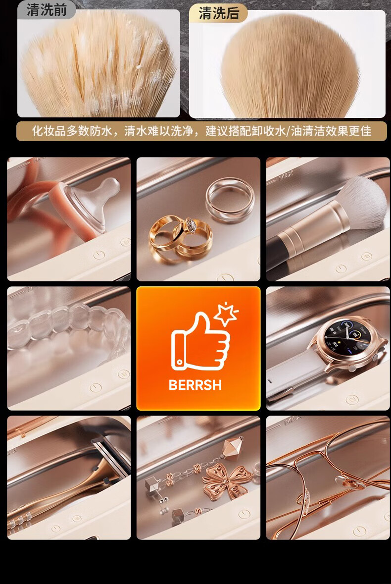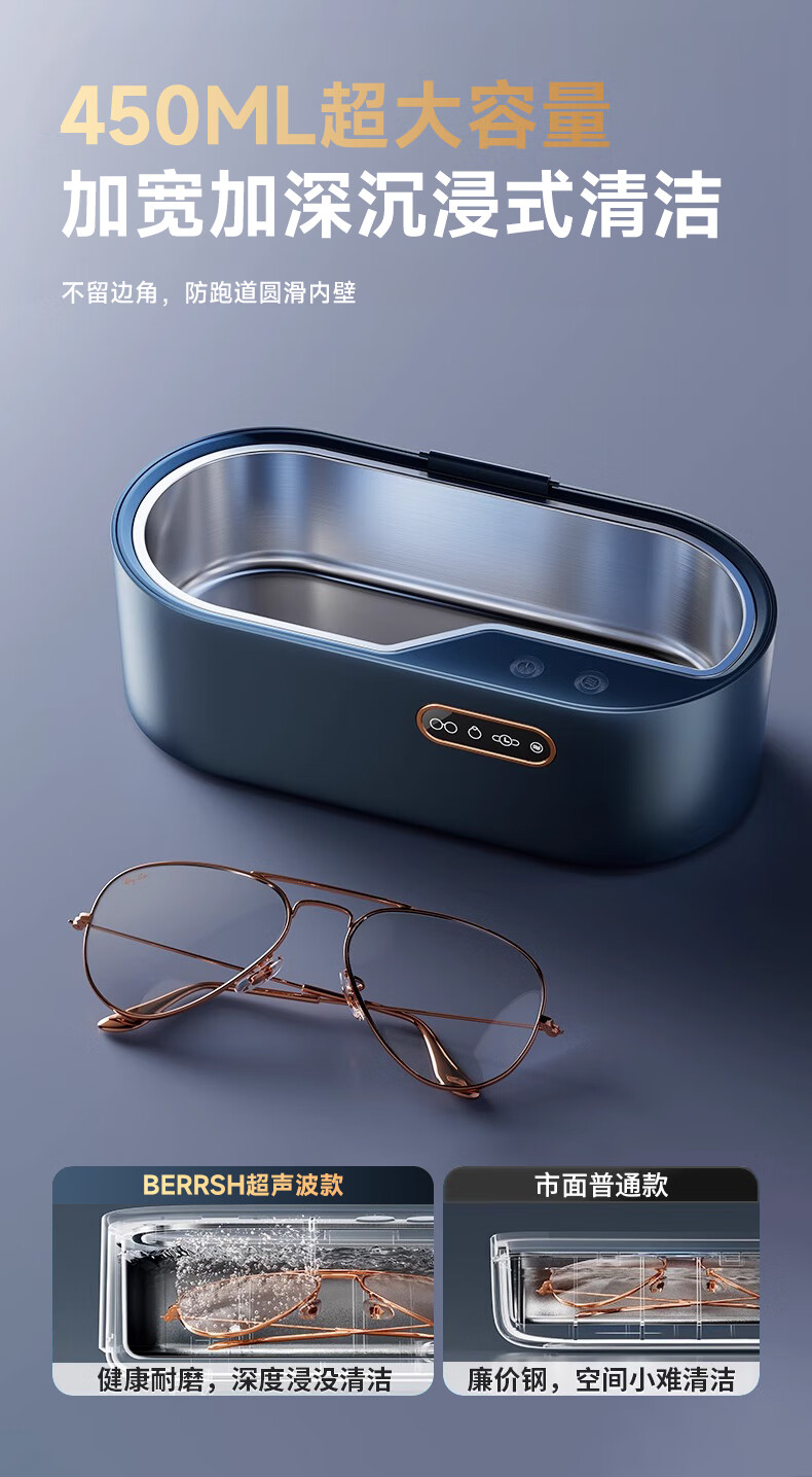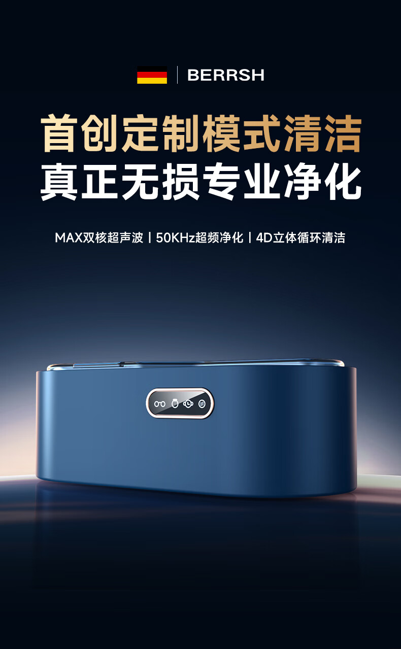 BERRSH (Germany Berry) Ultrasonic Cleaning Machine Glasses Cleaning Machine Fully Automatic Glass Cleaning Contact Contact Lenses Braces Makeup Brush Home Jewelry Watch Strap Industrial High Power Blue Free Storage Rack丨450ML Large Capacity Non-Destructive Purification Professional Customized Mode Cleaning