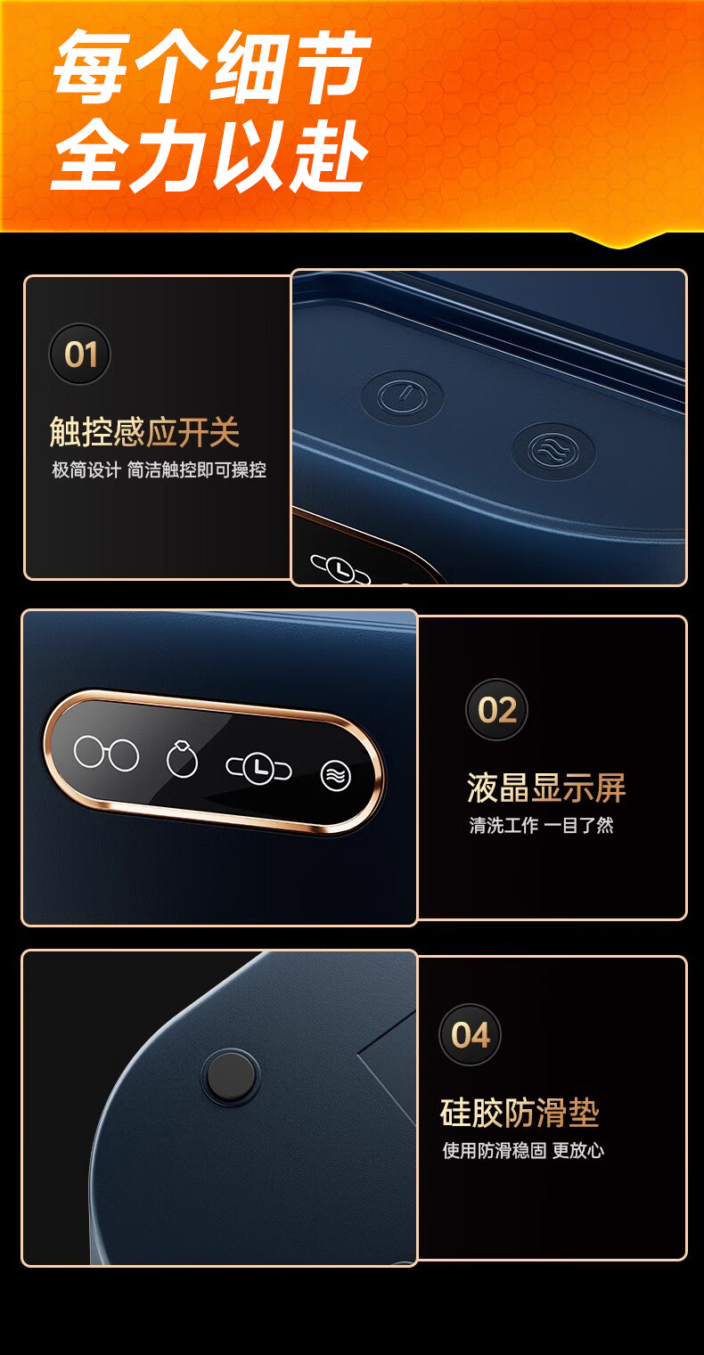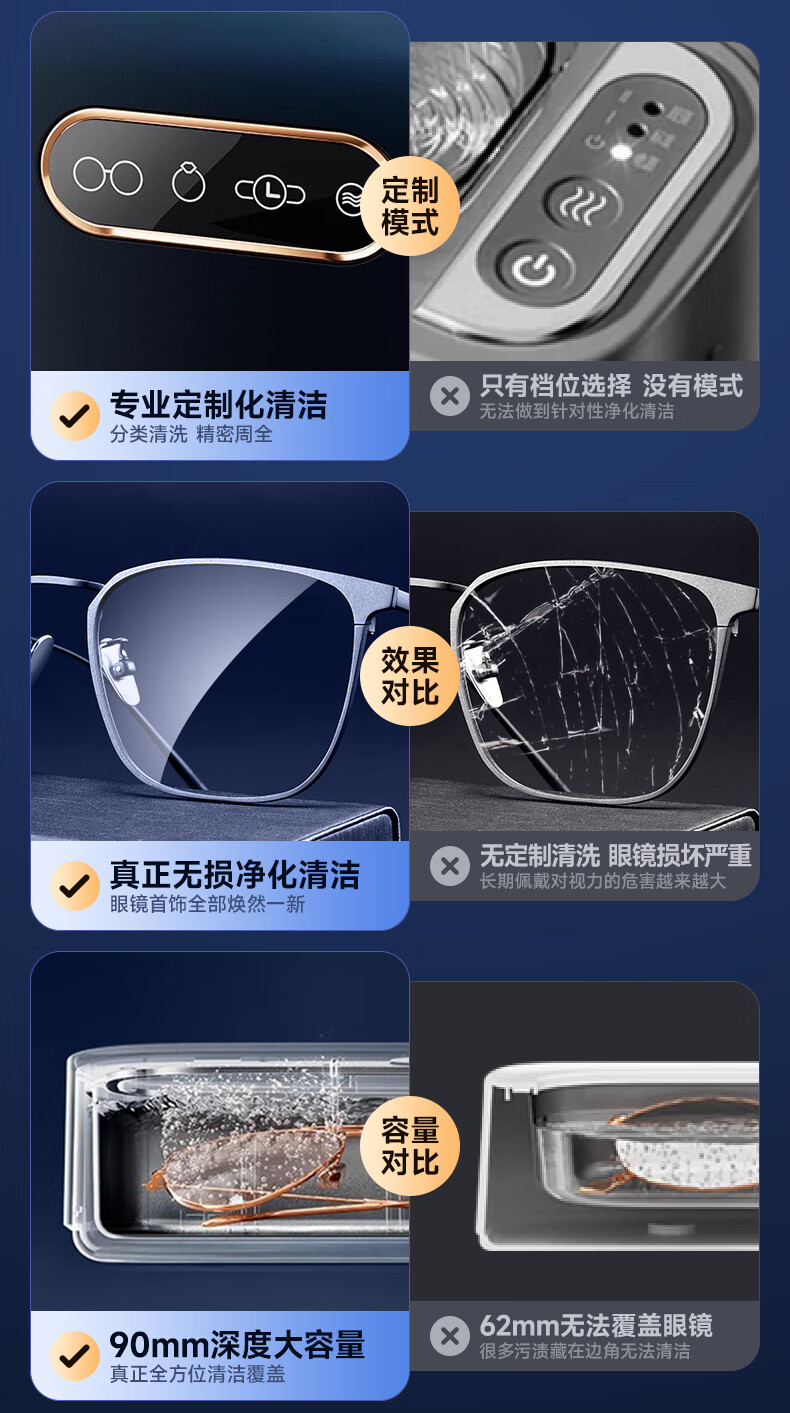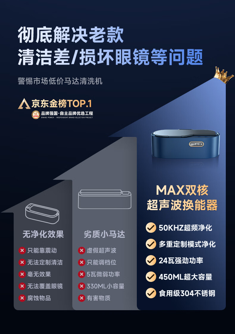 BERRSH (Germany Berry) Ultrasonic Cleaning Machine Glasses Cleaning Machine Fully Automatic Glass Cleaning Contact Contact Lenses Braces Makeup Brush Home Jewelry Watch Strap Industrial High Power Blue Free Storage Rack丨450ML Large Capacity Non-Destructive Purification Professional Customized Mode Cleaning