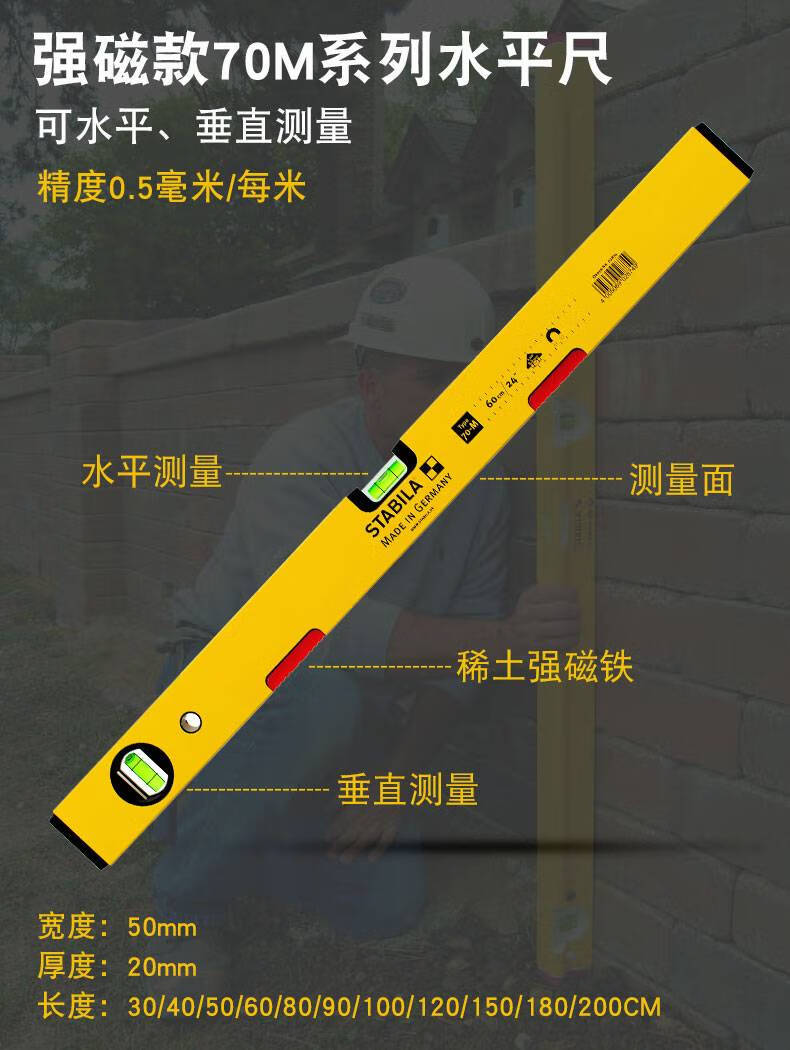 Junmo level high-precision 2-meter tile leveling level aluminum alloy strong magnetic angle ruler anti-fall 200CM_Two blisters_02292