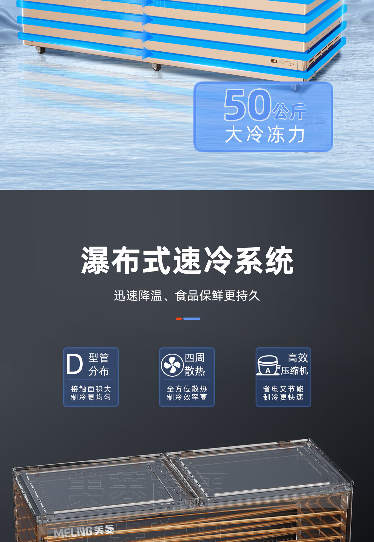 Meiling 418/528/738L household commercial refrigeration freezer low temperature first-class energy efficiency cryogenic computer temperature controlled steel plate liner large capacity - 180 days only replacement without repair, trade-in 865 liters - 32 degree electronic control steel plate liner ten years warranty 865L