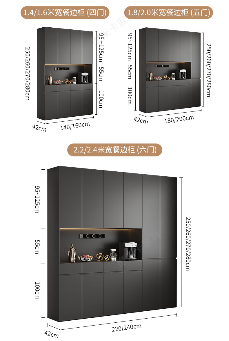 Momica ENF grade custom-made sideboard and dining table integrated 2.5/2.6/2.7/2.8 meters high cabinet wine cabinet storage cabinet 1.4 meters long * 2.6 meters high four-door sideboard six doors