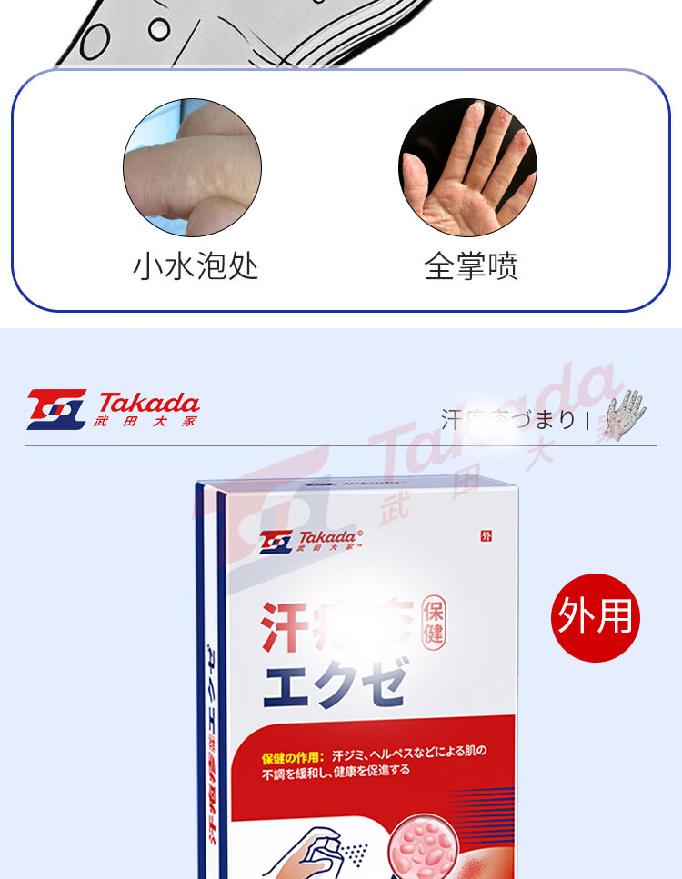 Takeda Otsuka sweat blisters special spray for sweat blisters on hands to relieve itching rashes itchy small blisters fungal infection spray 1 box 1~2 small blisters