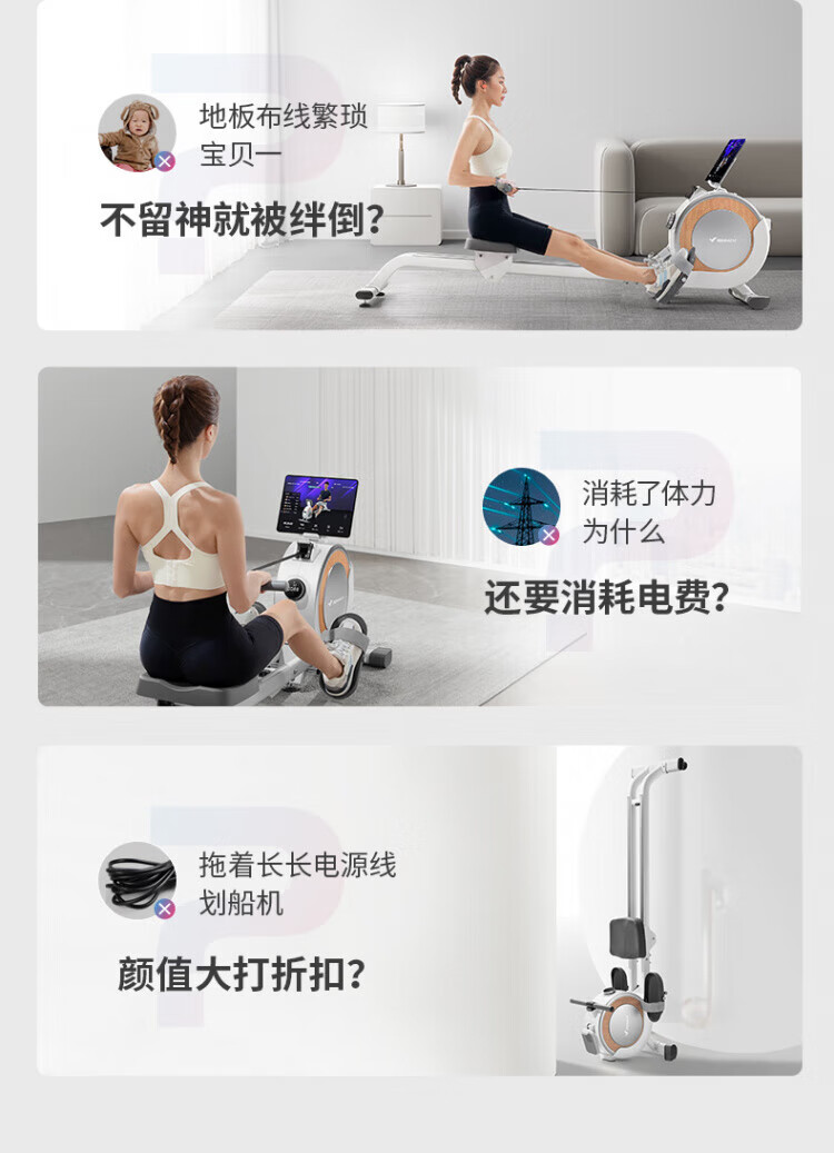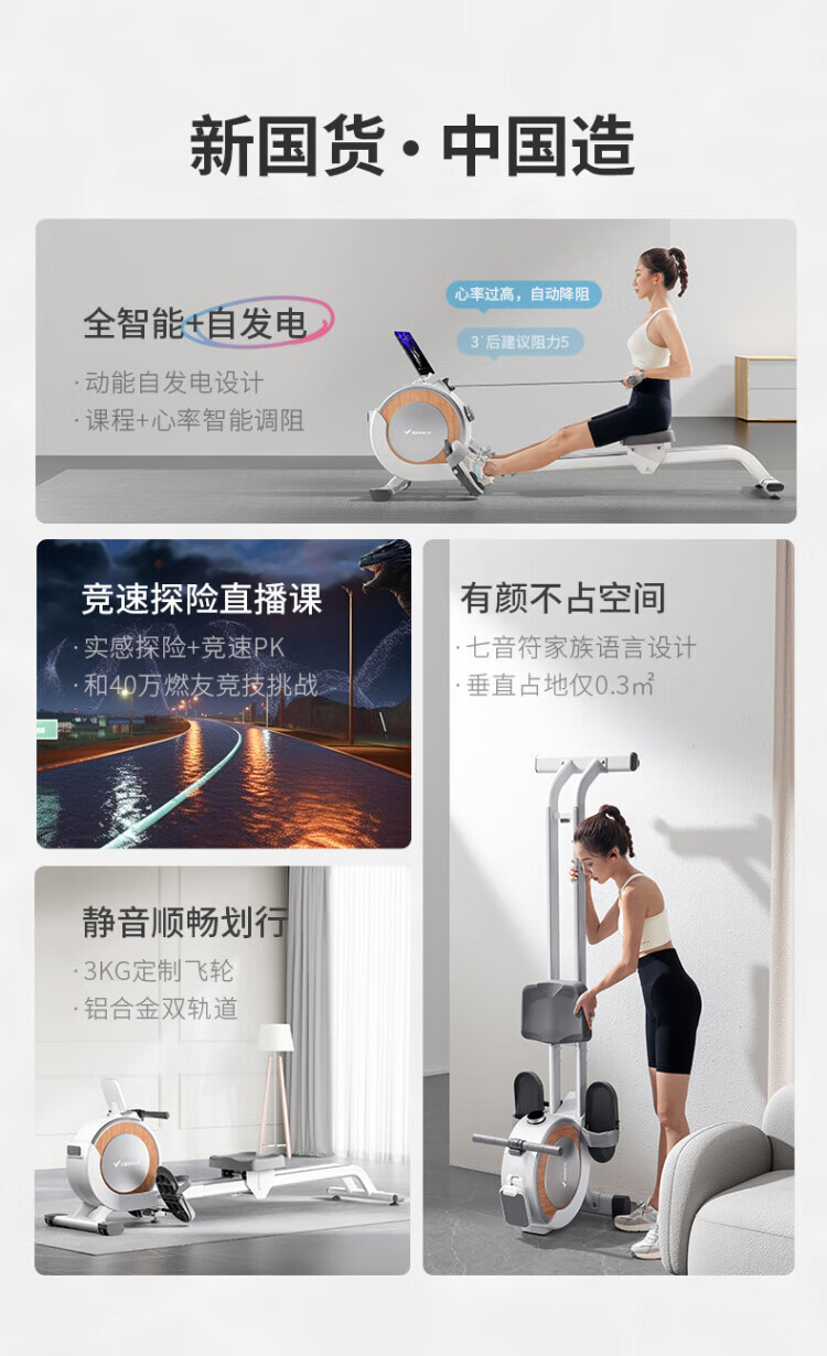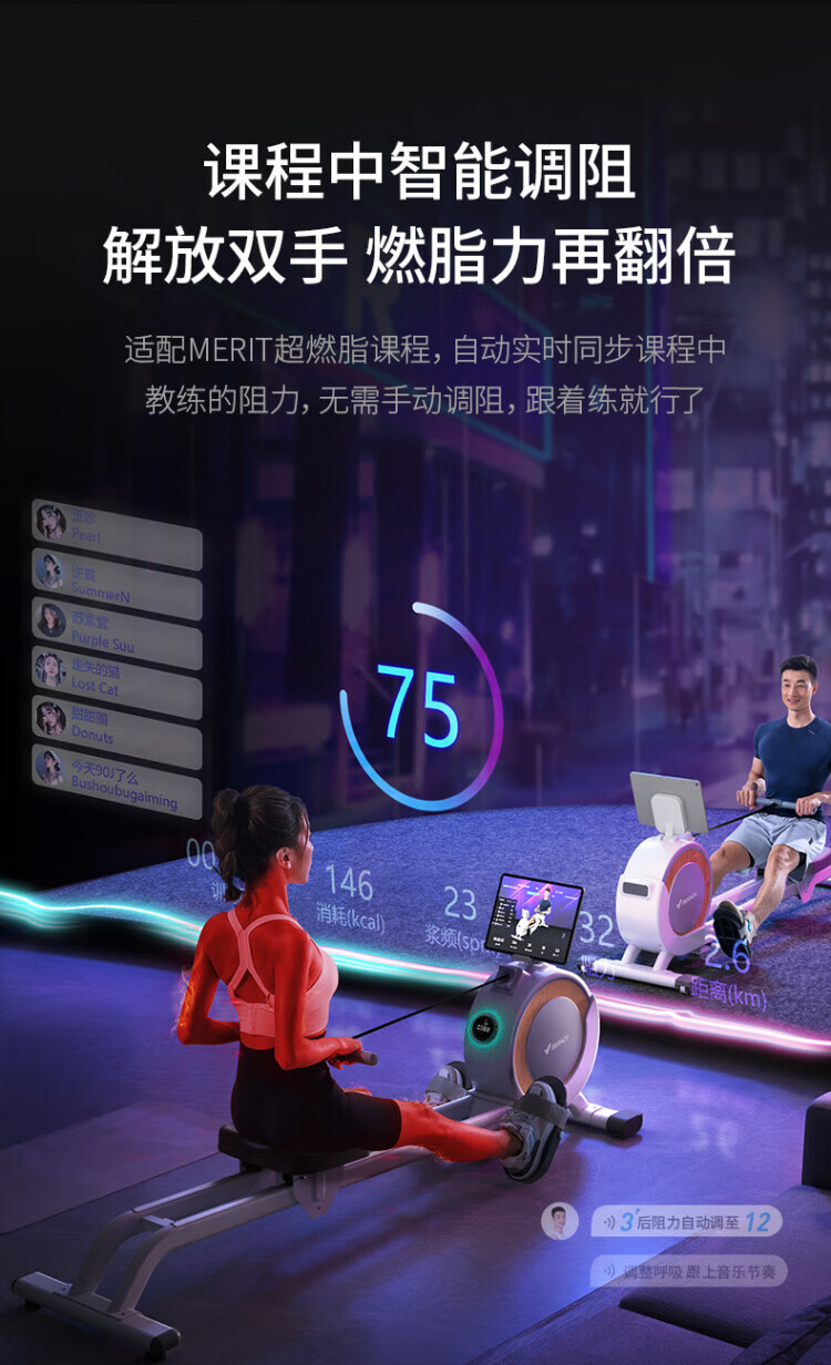 MERACH smart self-generating rowing machine home magnetically controlled indoor rowing machine for aerobic fitness Q1 white self-generating version | 32-stop intelligent variable resistance | exclusive