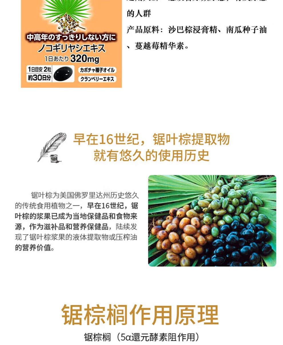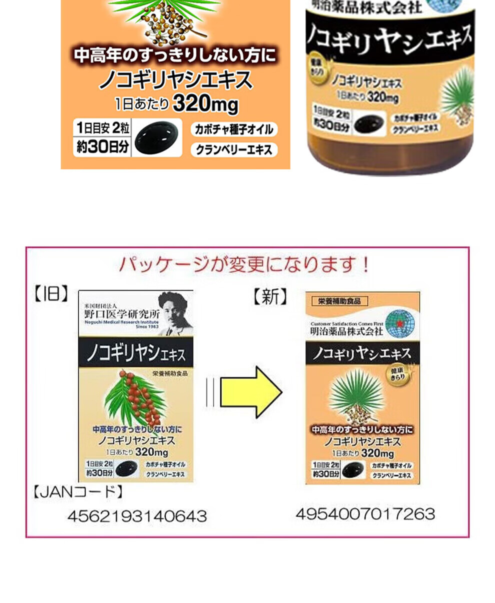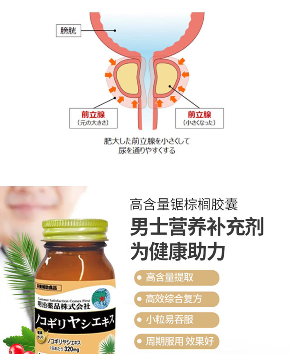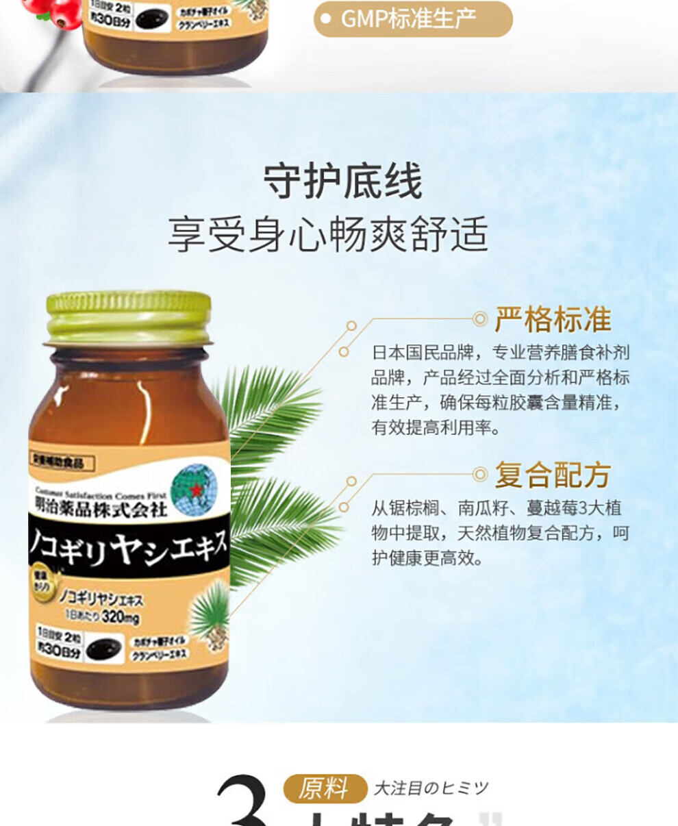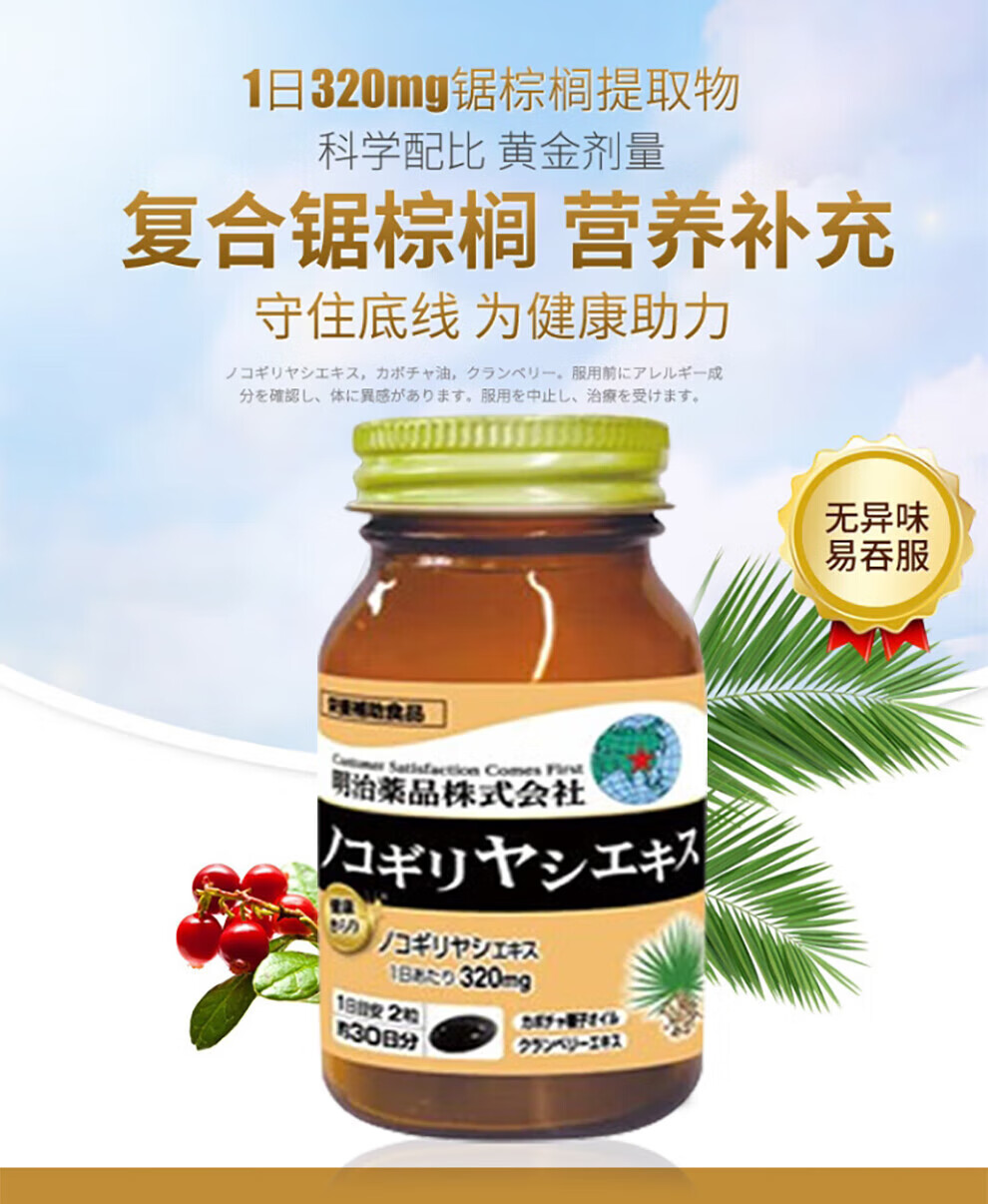Meiji Pharmaceuticals Men's Saw Palmetto Capsules contain pumpkin seed oil extract Japanese original 320mg high content saw palmetto capsules 1 bottle 60 capsules/bottle