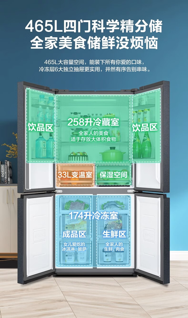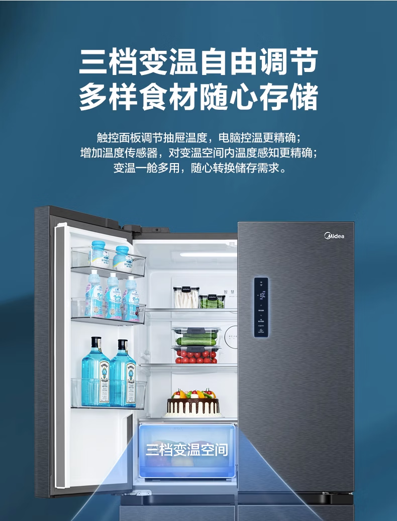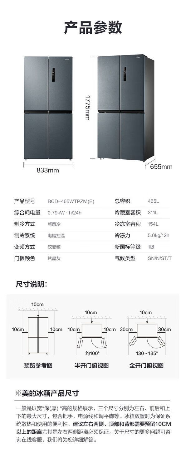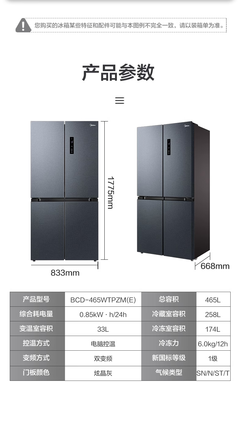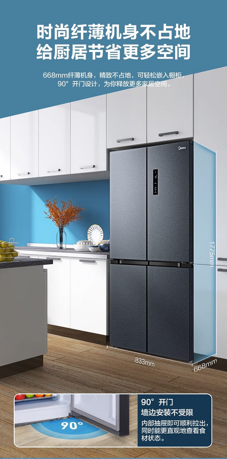 Midea air-cooled frost-free refrigerator BCD-465WTPZM (E) first-class frequency conversion cross four-door air-cooled frost-free refrigerator Midea/Midea BCD-465WTPZM (E) first-class