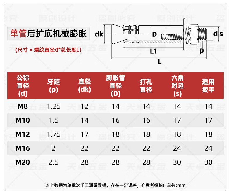 Tianzhuo Hardware 304 stainless steel bottom expansion mechanical anchor expansion screw back-cut heavy-duty anchor M8M10M12 single tube bolt 304 double tube 20*260 1