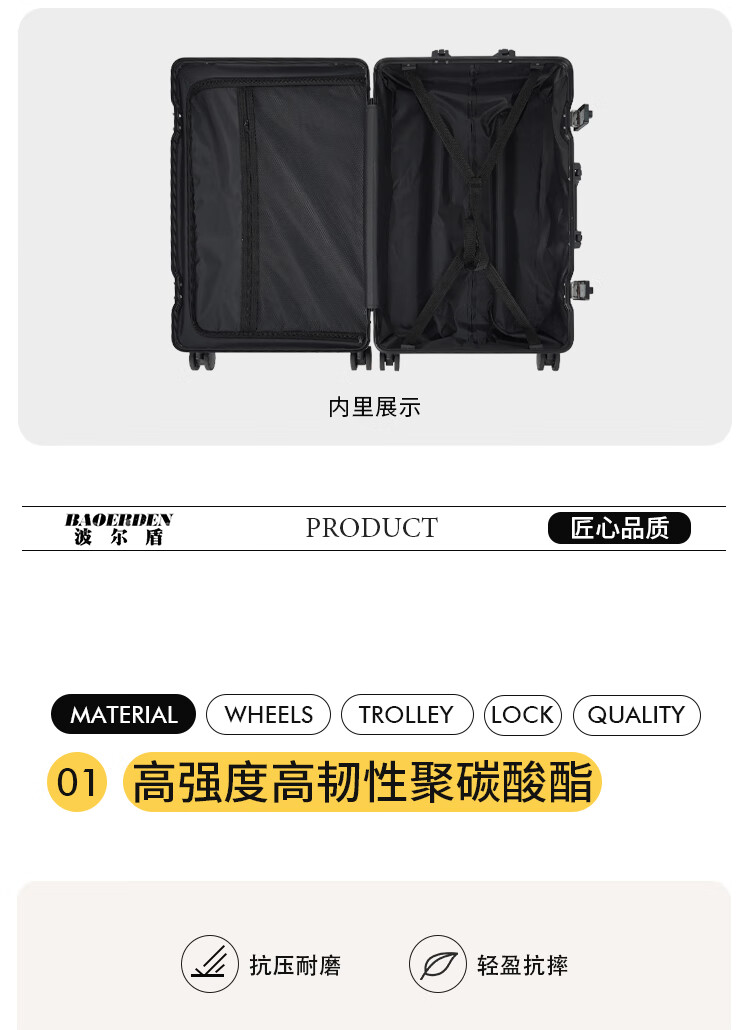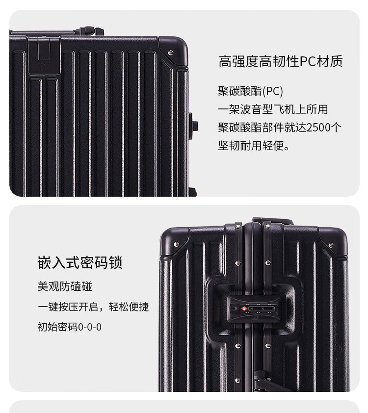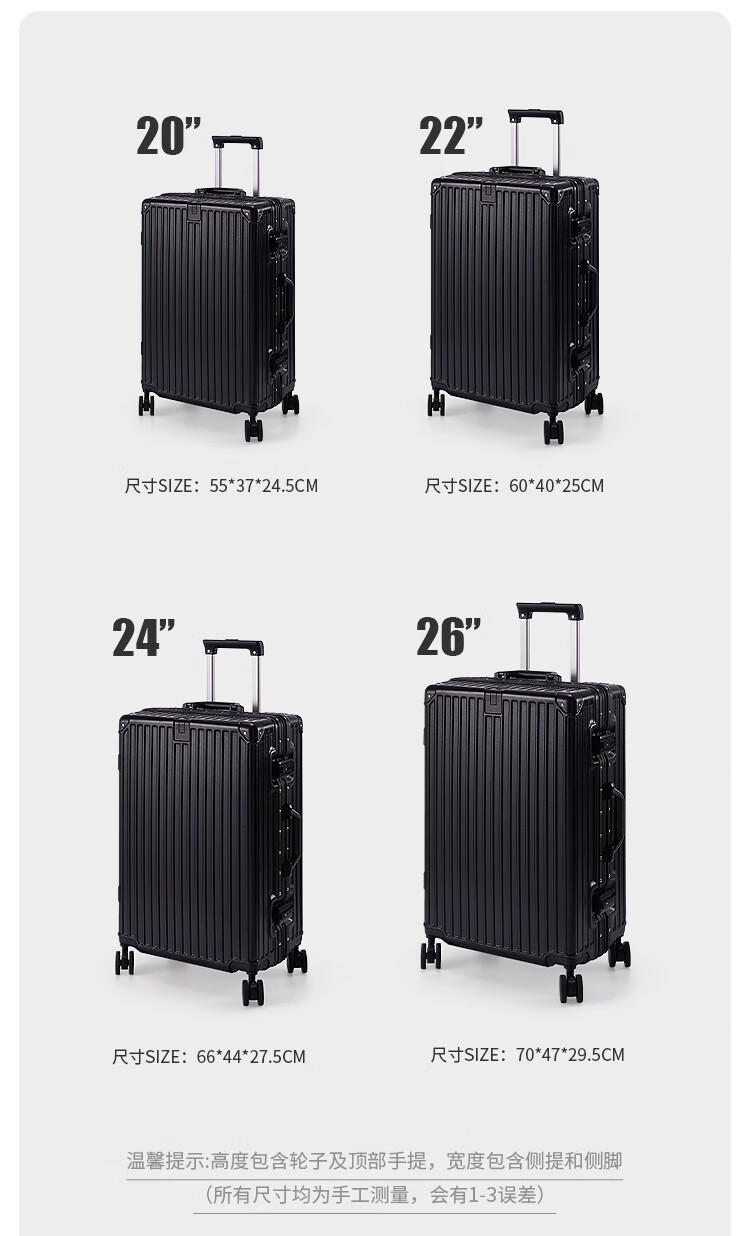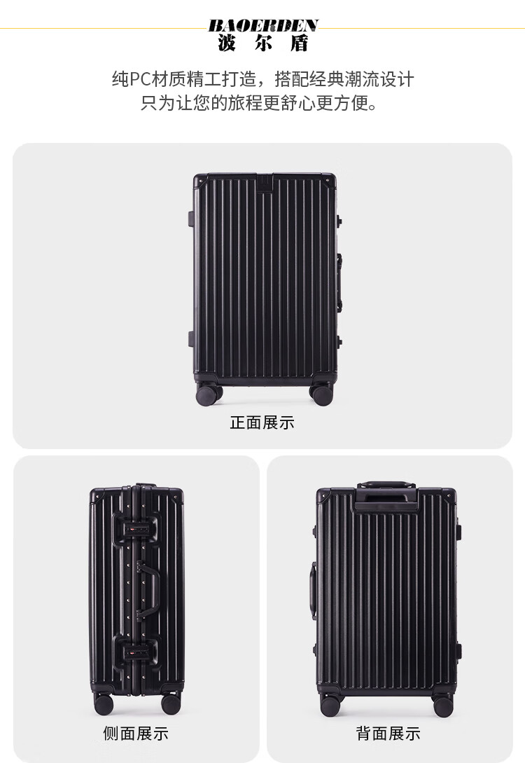 Boldun suitcase trolley case with large capacity 20 inches for men to board the plane 24 business trip check-in password suitcase, dark night black zipper style + lifetime warranty 26 inches can be checked in, suitable for more than 15 days