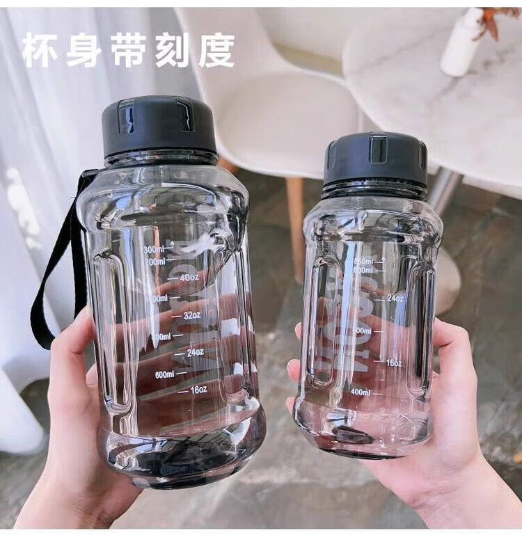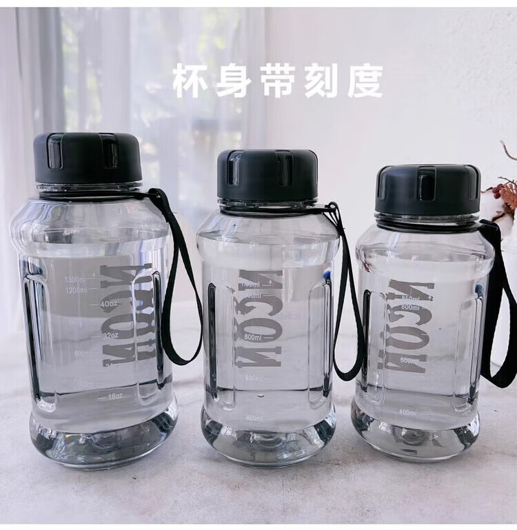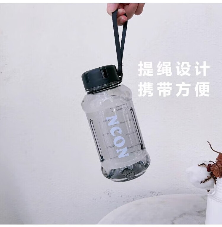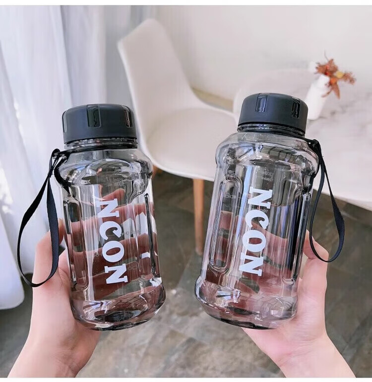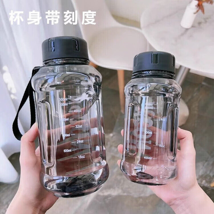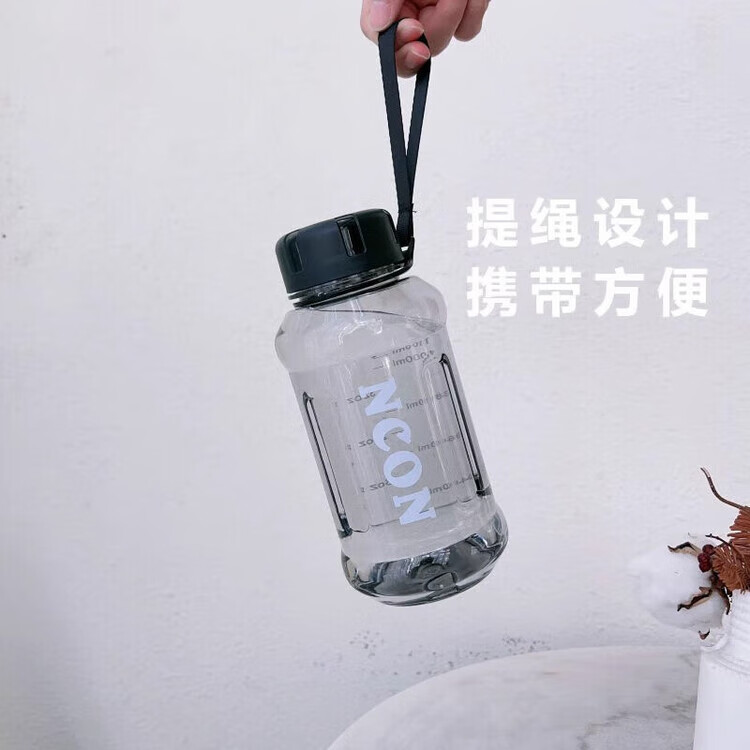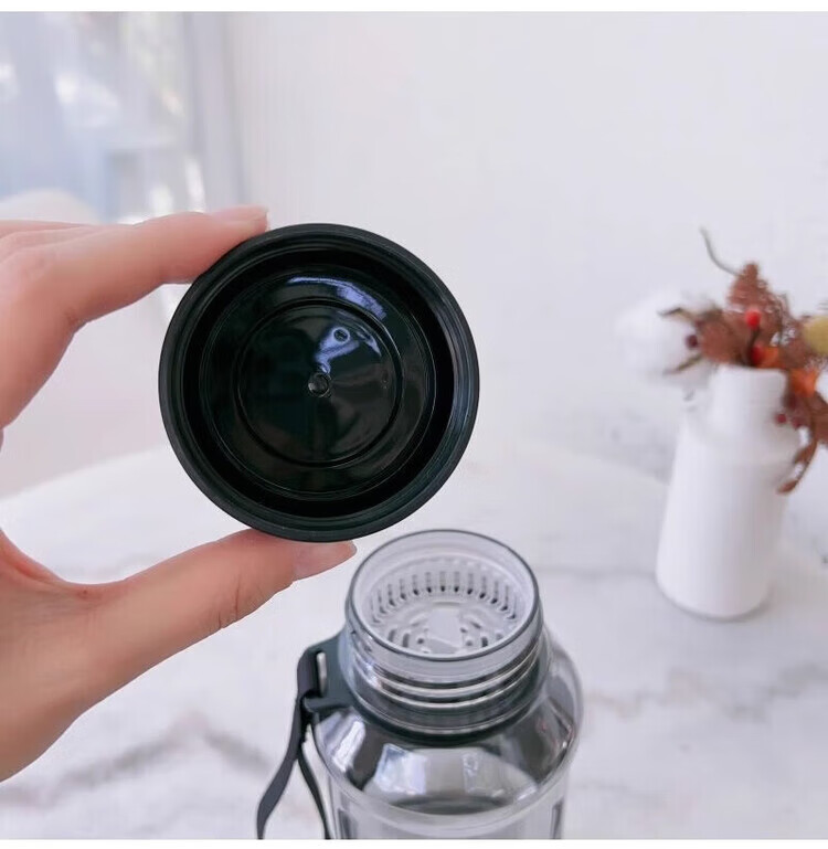Jiaojing plastic cup, high temperature resistant PP material, super large capacity, high appearance, ins ready cup, anti-fall sports water cup, 1100ml, simple black, tons of barrel + with tea drain