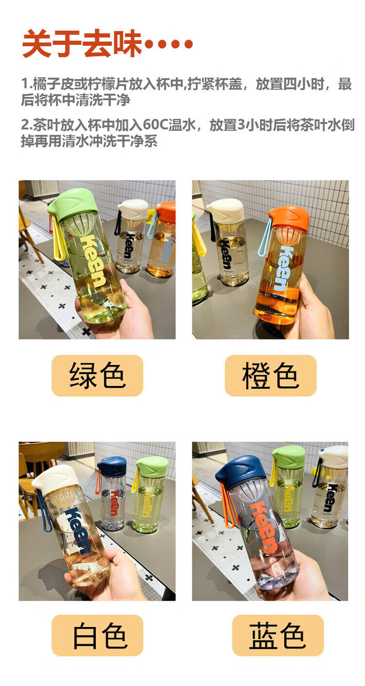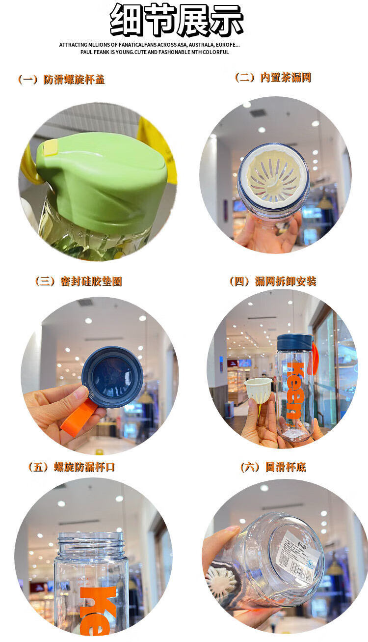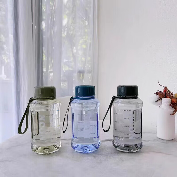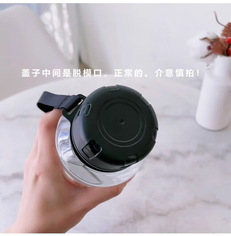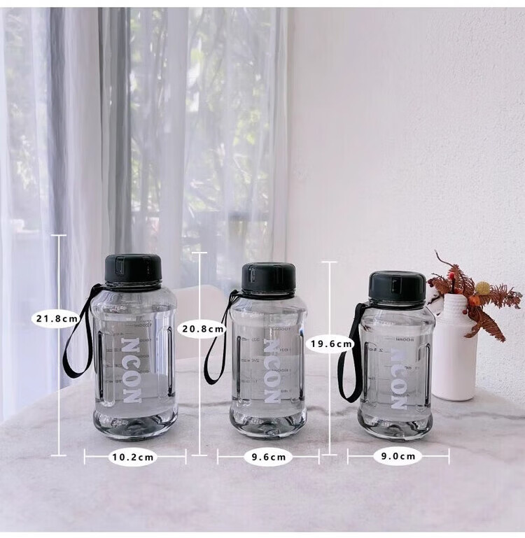 Jiaojing plastic cup, high temperature resistant PP material, super large capacity, high appearance, ins ready cup, anti-fall sports water cup, 1100ml, simple black, tons of barrel + with tea drain