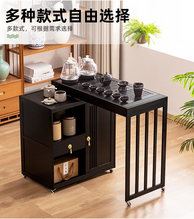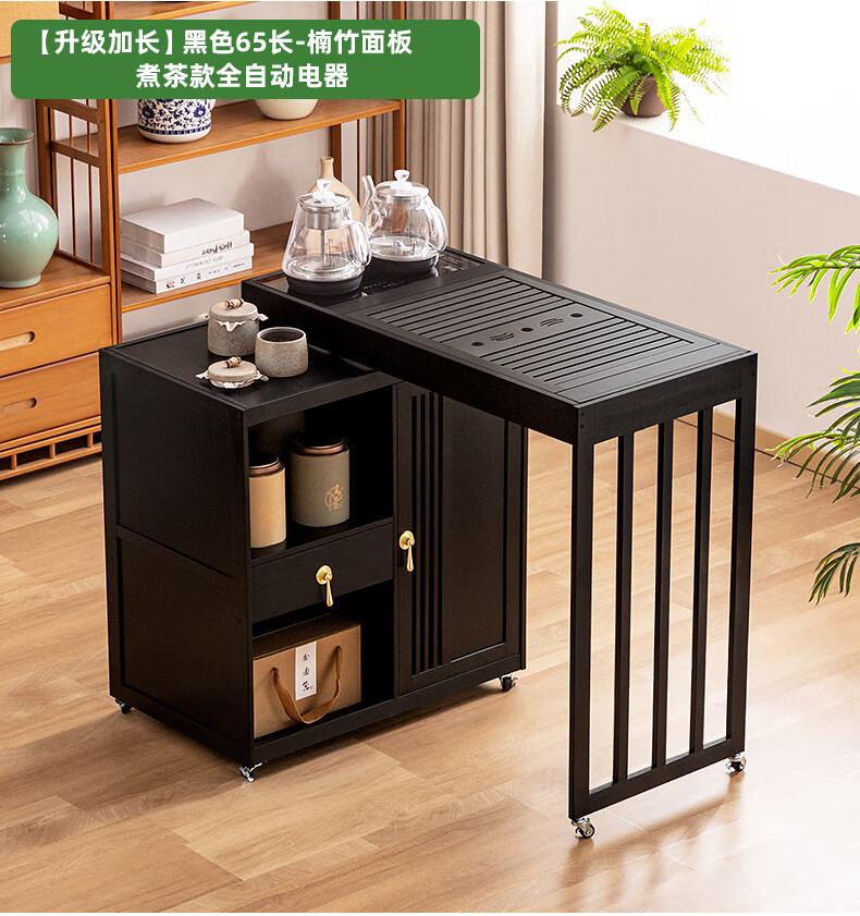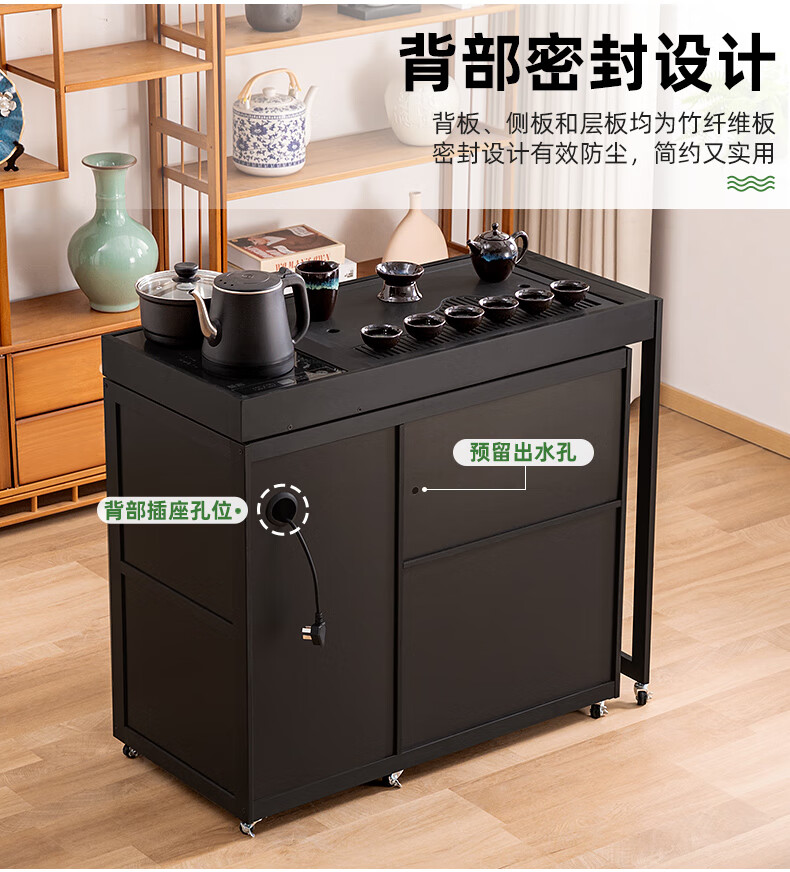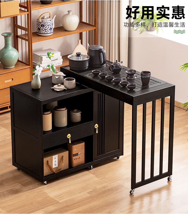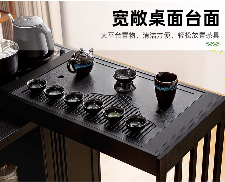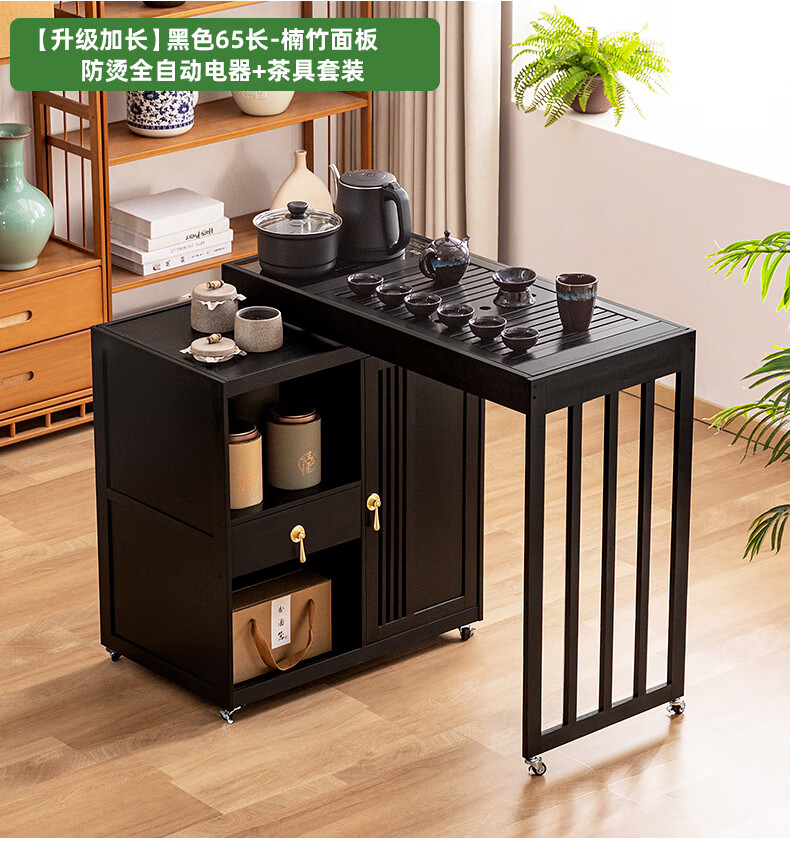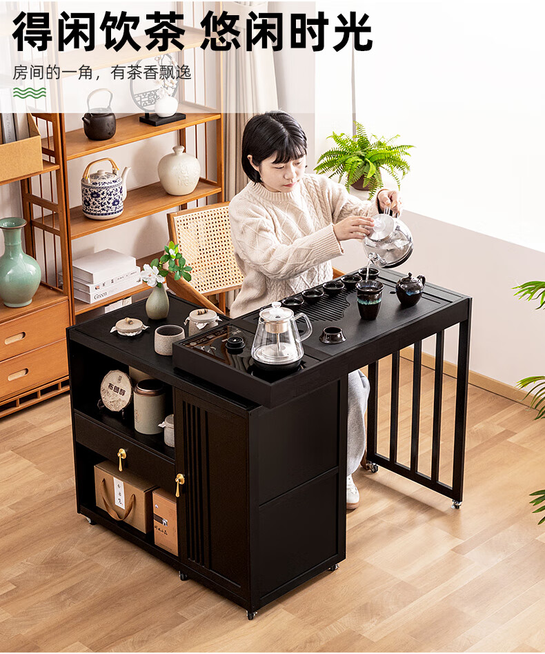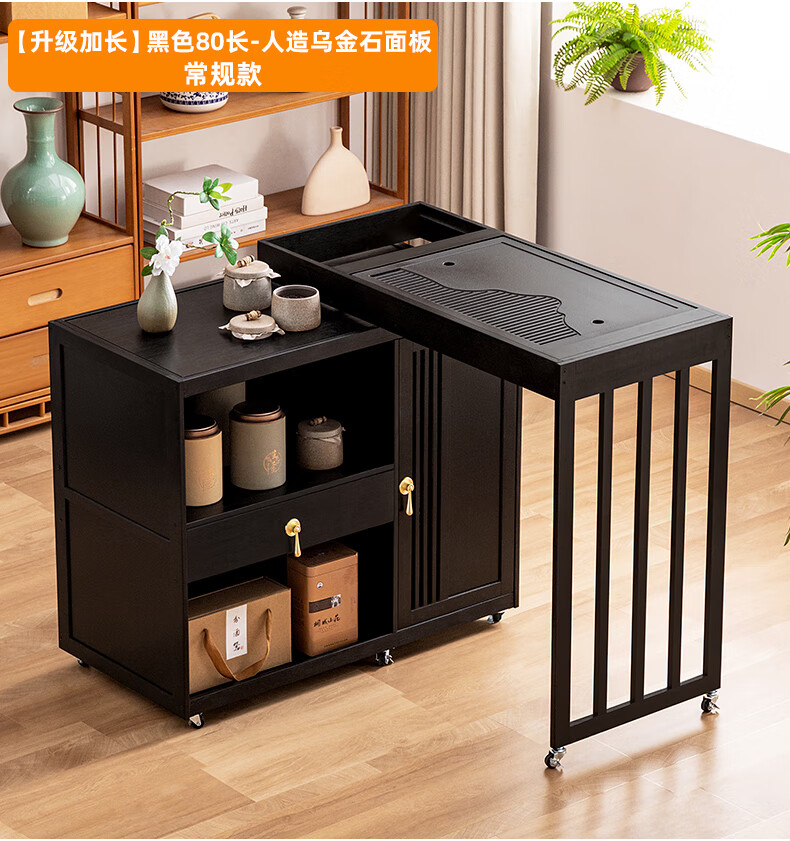 Trojan mobile tea table small tea table kettle all-in-one home balcony leisure living room coffee table tea table multi-function 80 long - black gold stone panel + tea making appliances + tea set