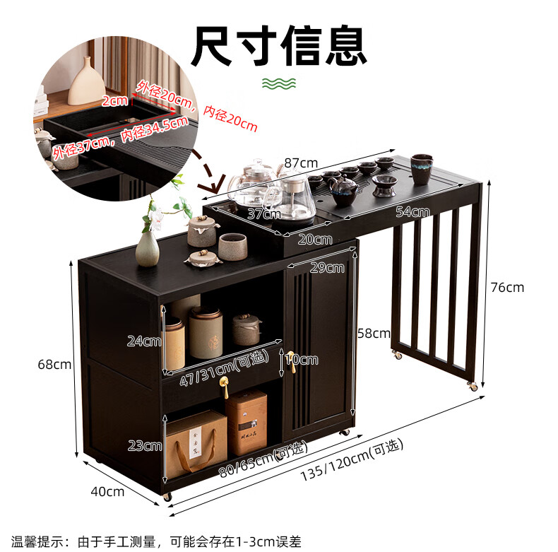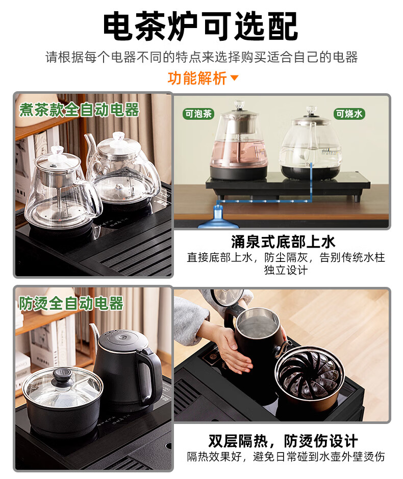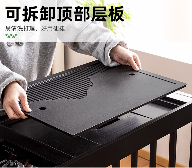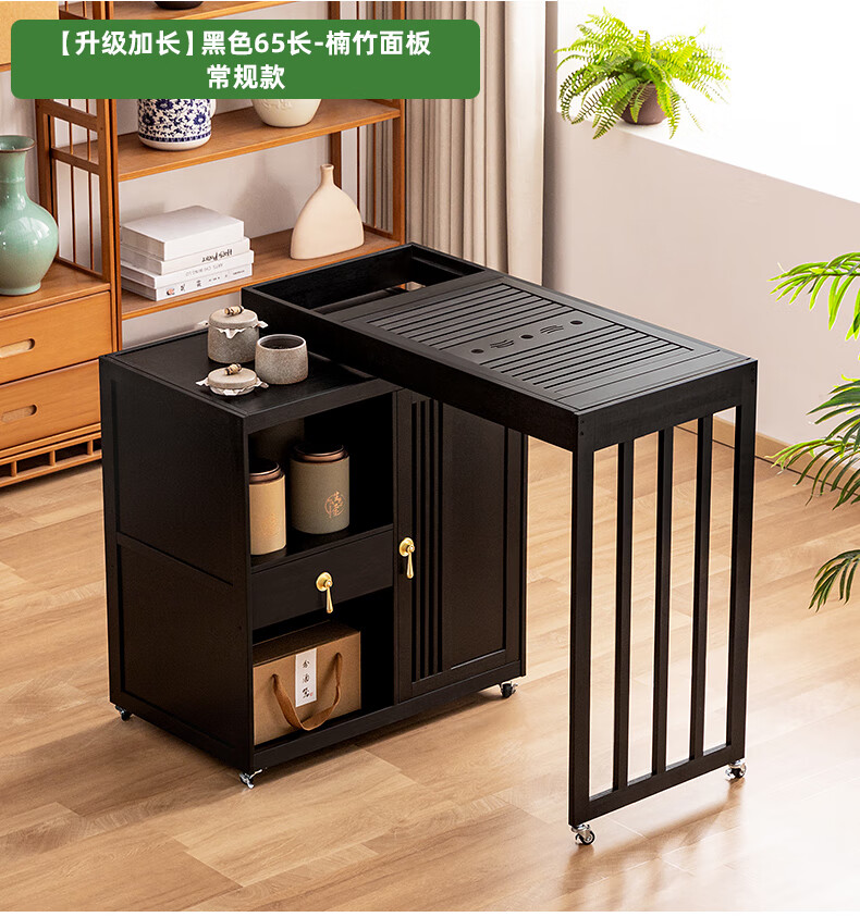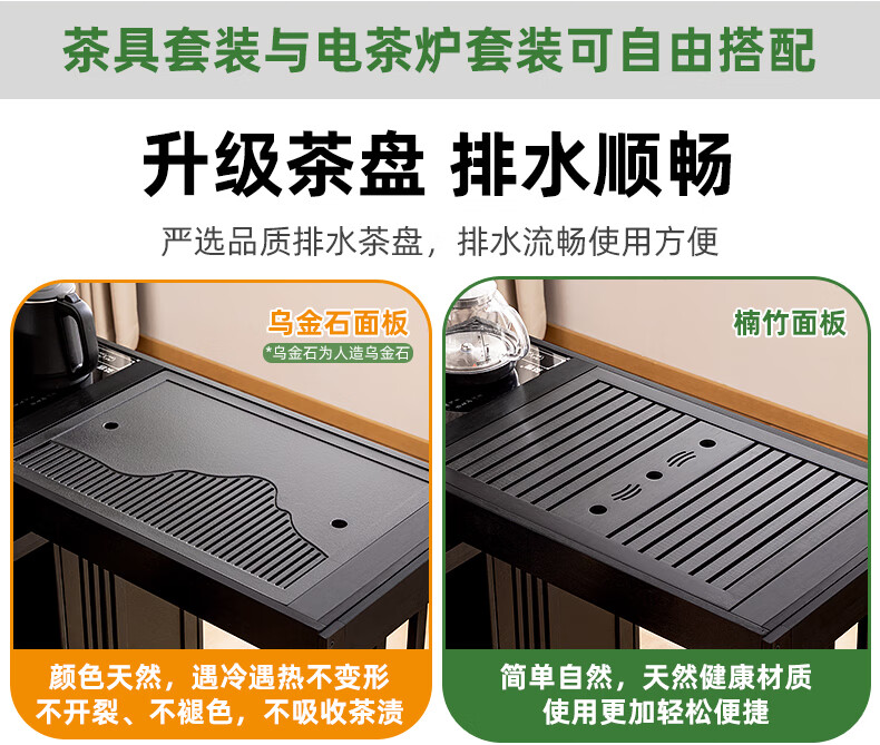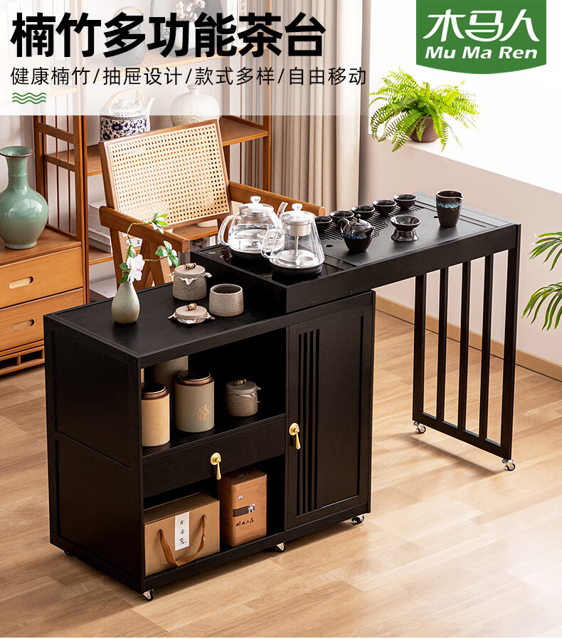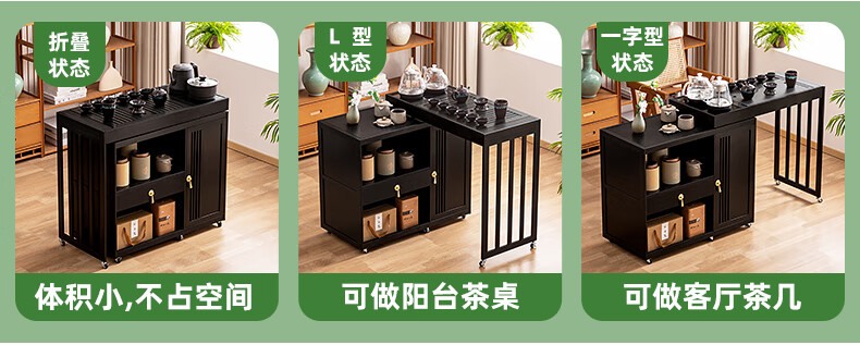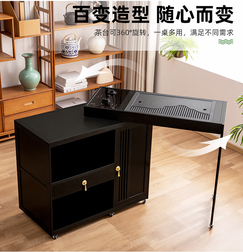 Trojan mobile tea table small tea table kettle all-in-one home balcony leisure living room coffee table tea table multi-function 80 long - black gold stone panel + tea making appliances + tea set
