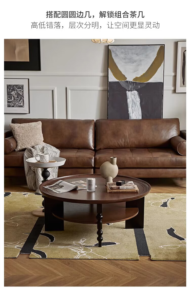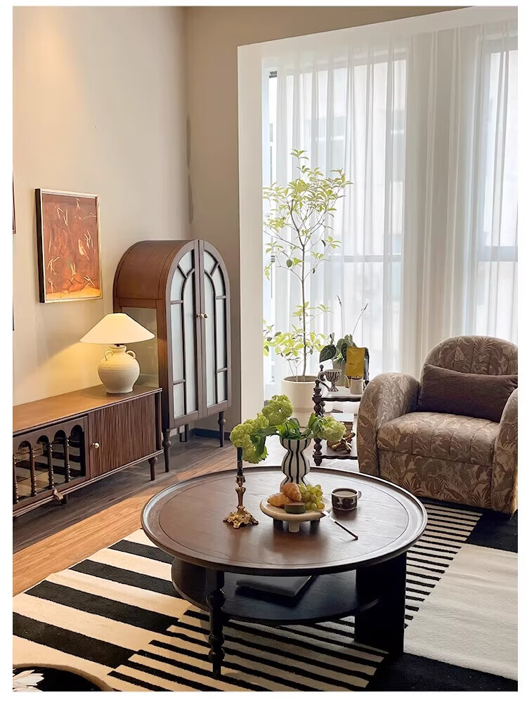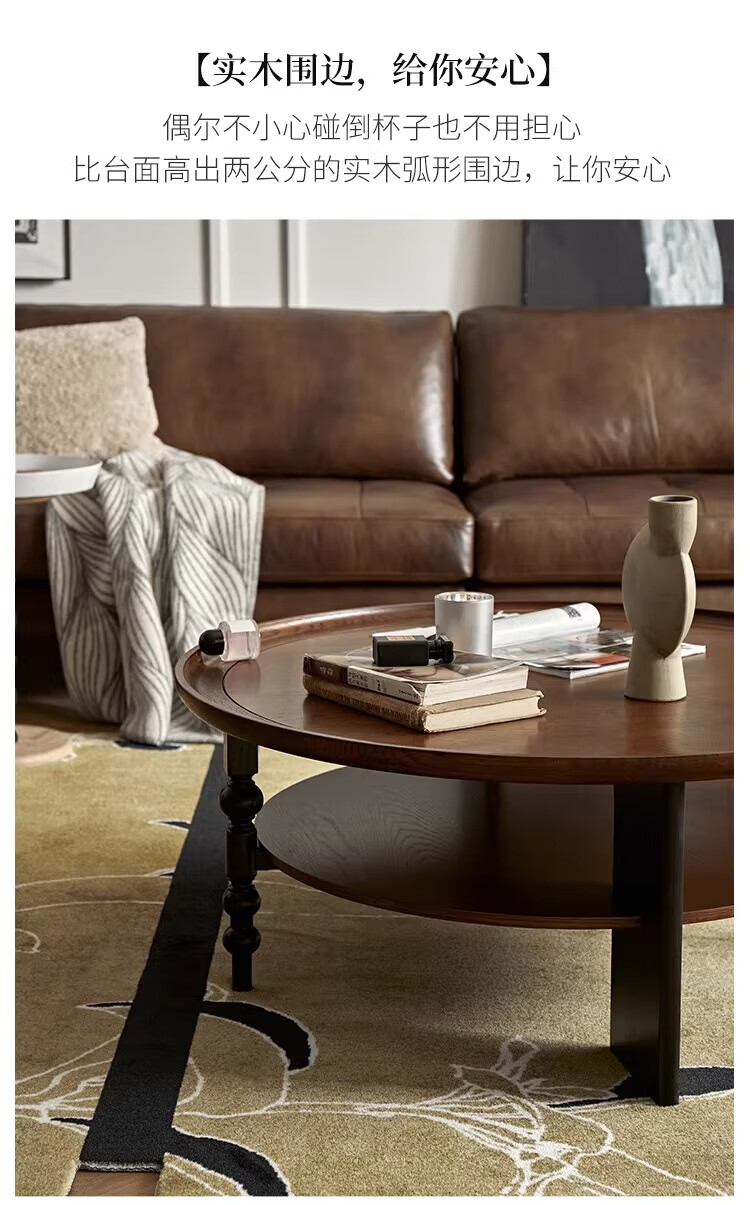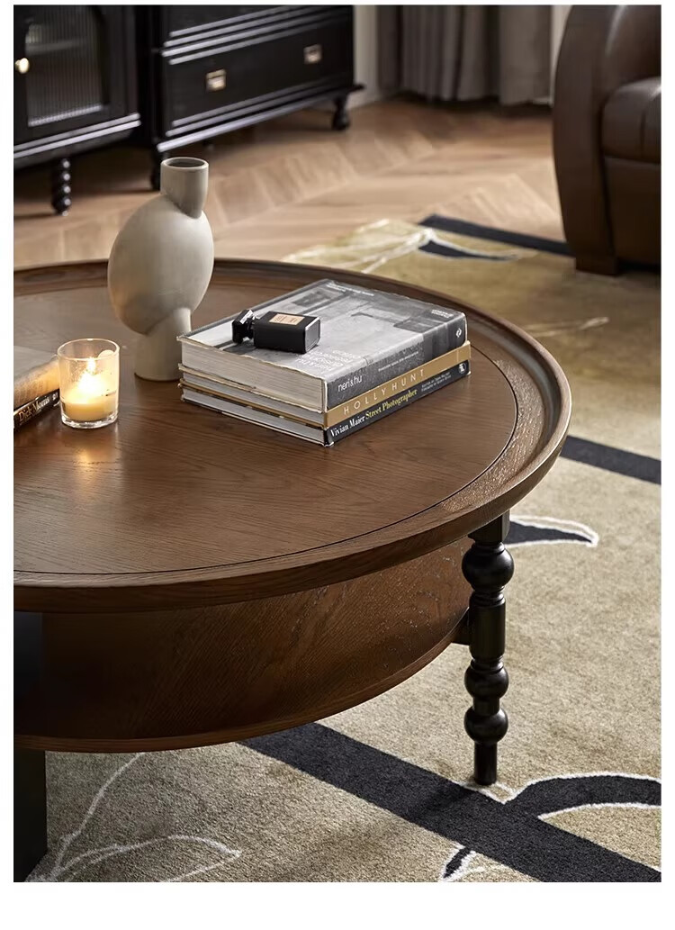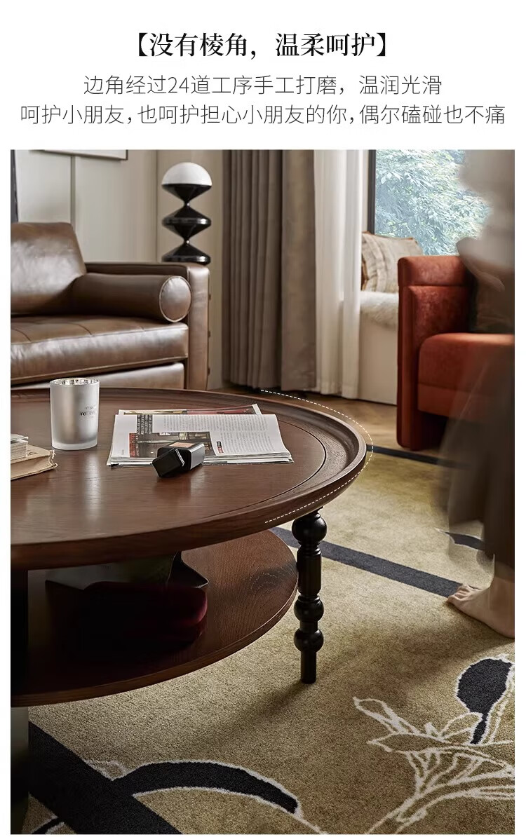Qingziyou French retro coffee table, antique style round tea table 2026 new American simple household small apartment side table furniture walnut color + rubber wood diameter 80CM