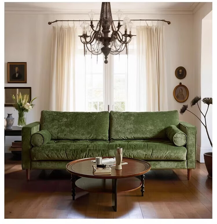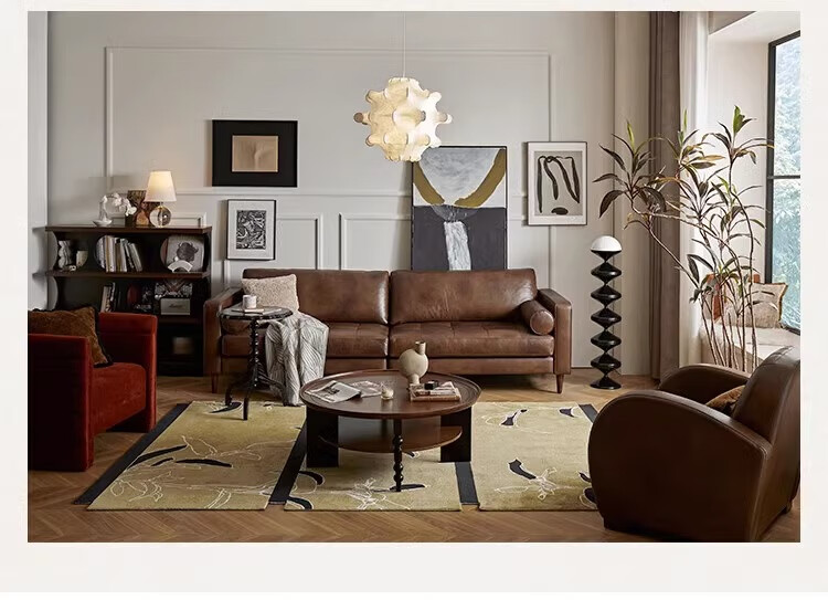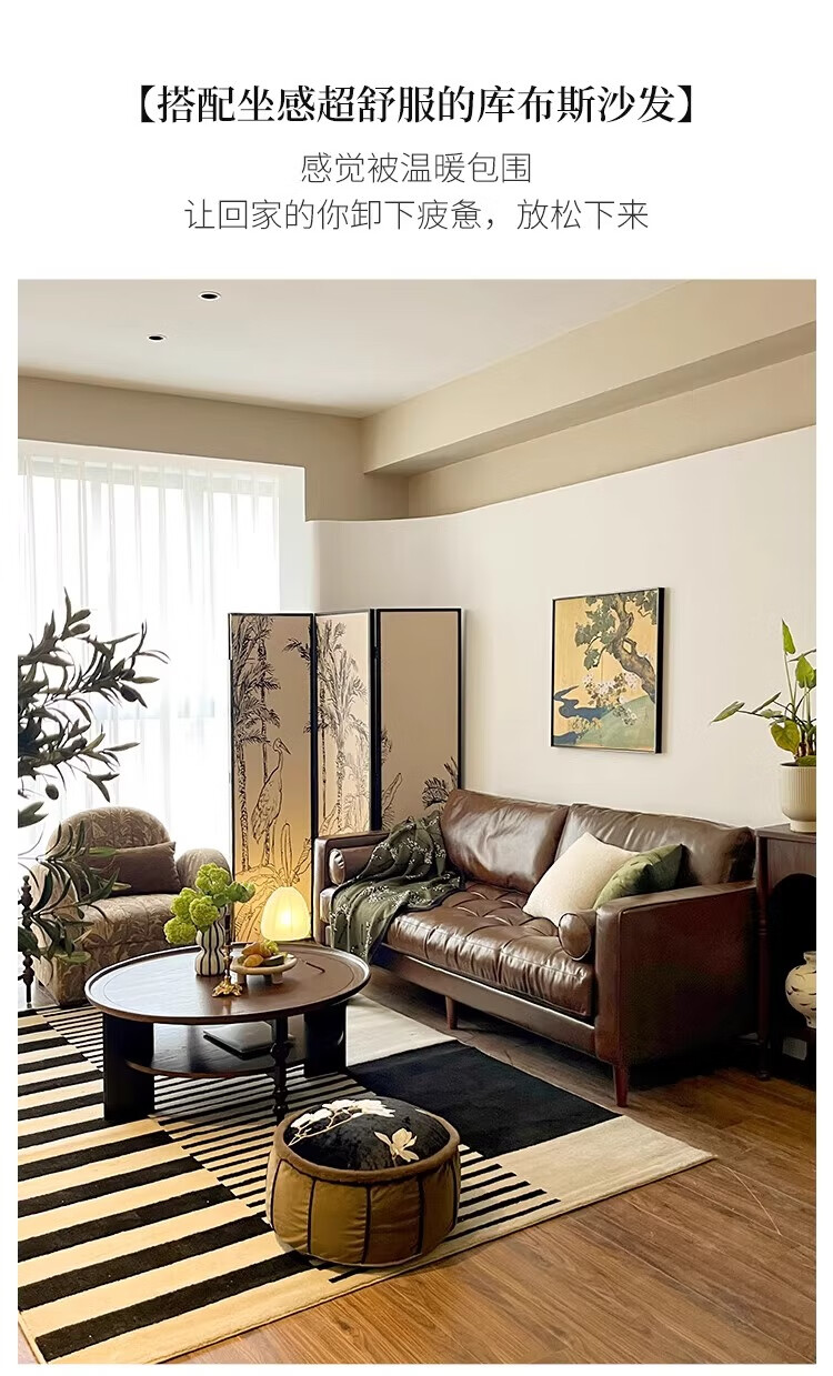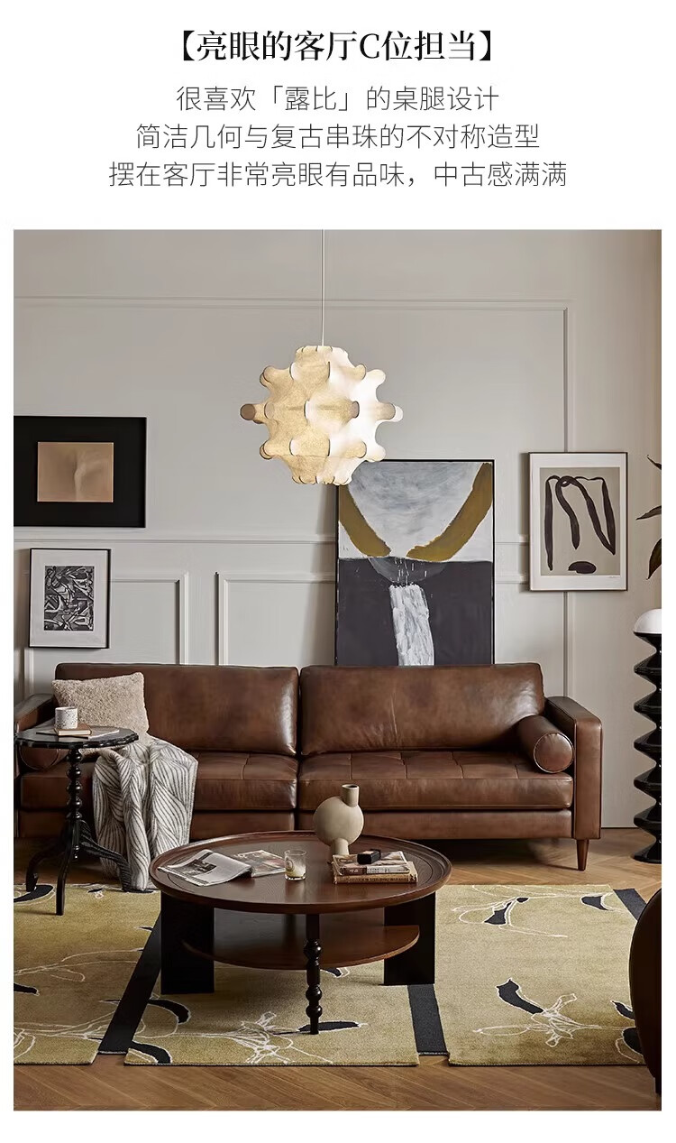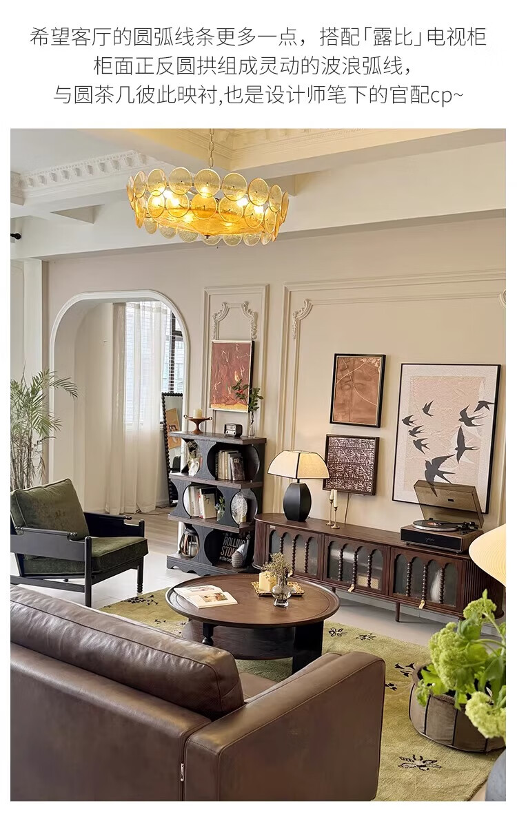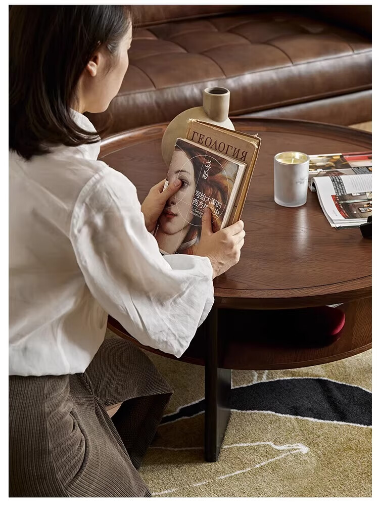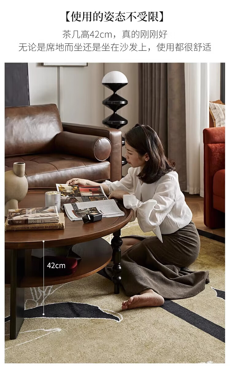 Qingziyou French retro coffee table, antique style round tea table 2026 new American simple household small apartment side table furniture walnut color + rubber wood diameter 80CM