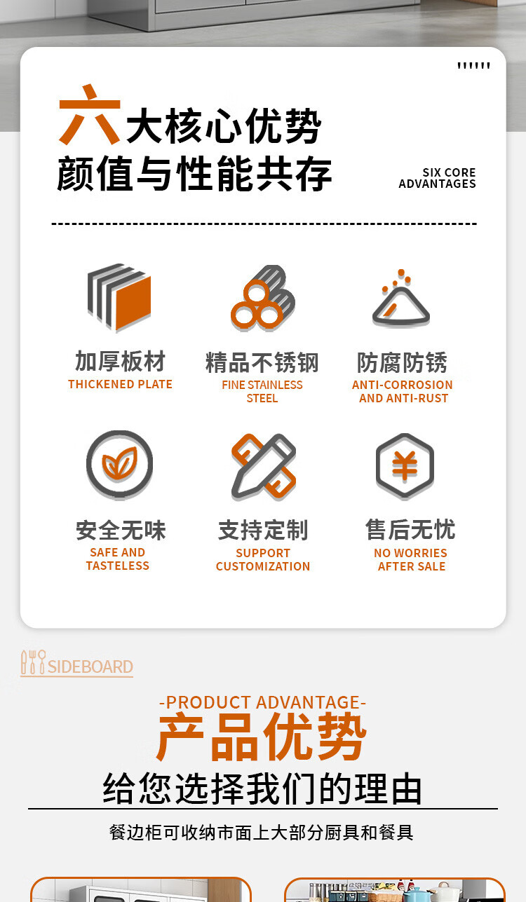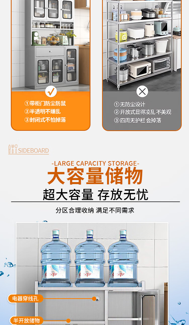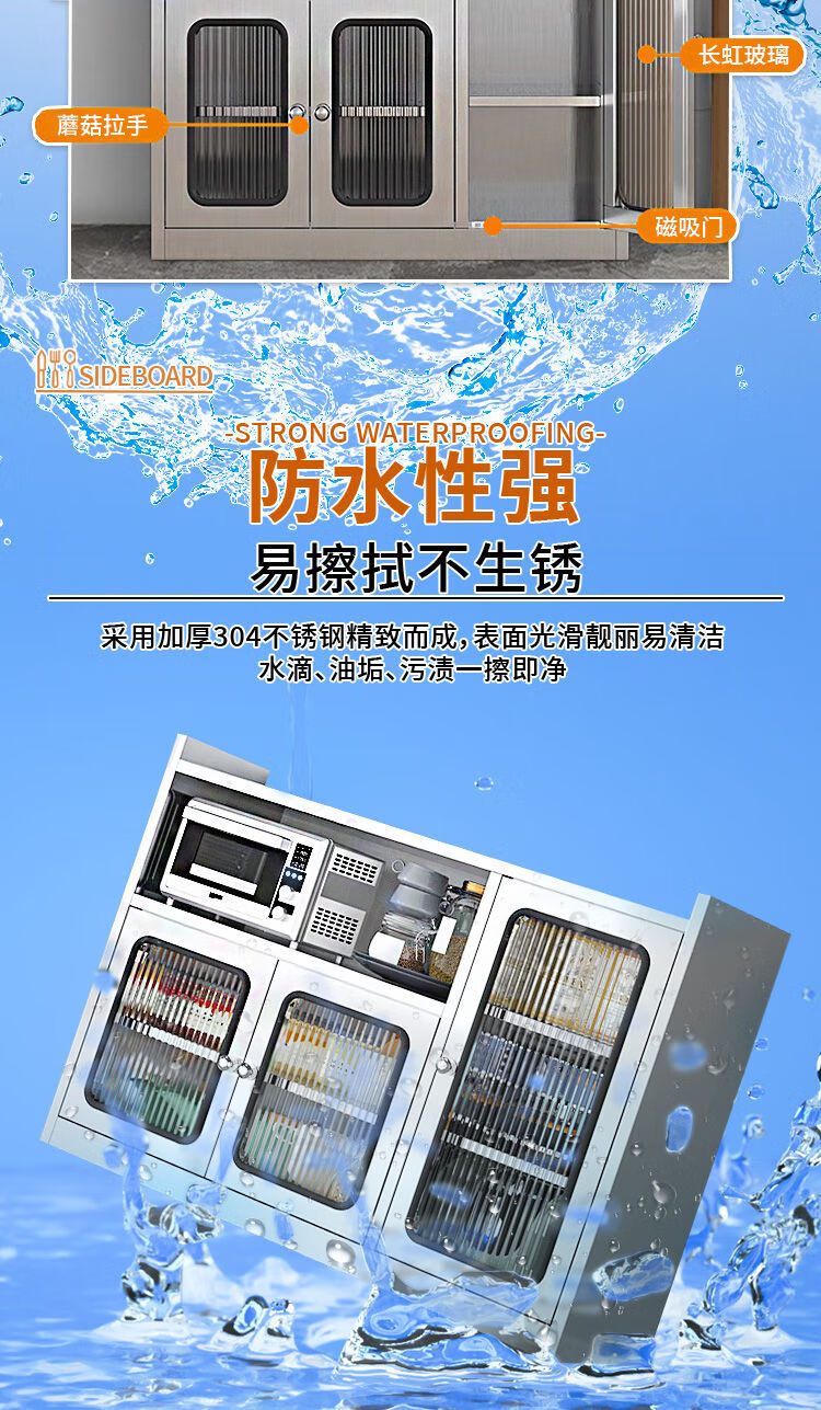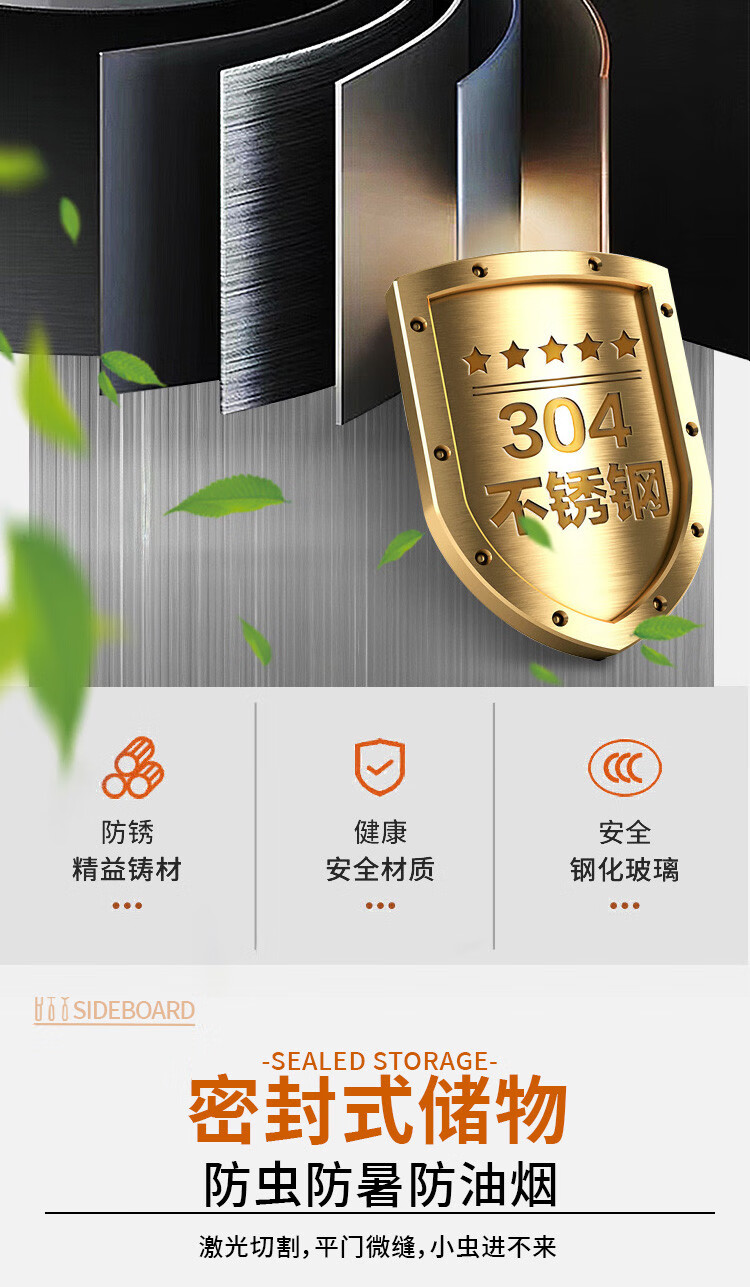 Wen Yijia 304 stainless steel sideboard kitchen cupboard home restaurant multi-functional storage cabinet storage cabinet mobile 0.7 meters wide two drawers tempered 201 2-3 doors