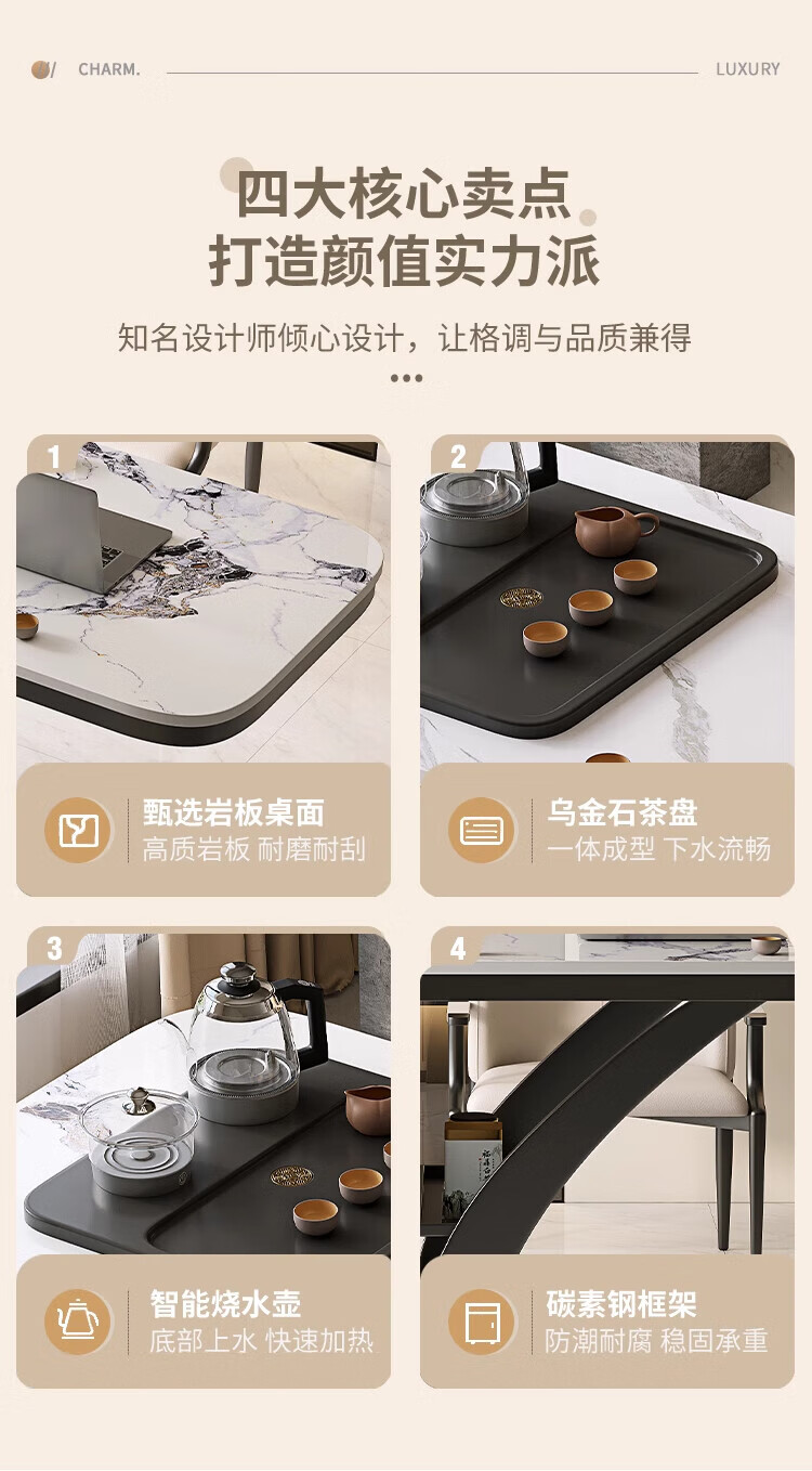Yipintiancheng light luxury slate balcony tea table and chair combination modern small apartment tea table living room household small tea table kettle integrated 1.0 meter single tea table color contact customer service notes