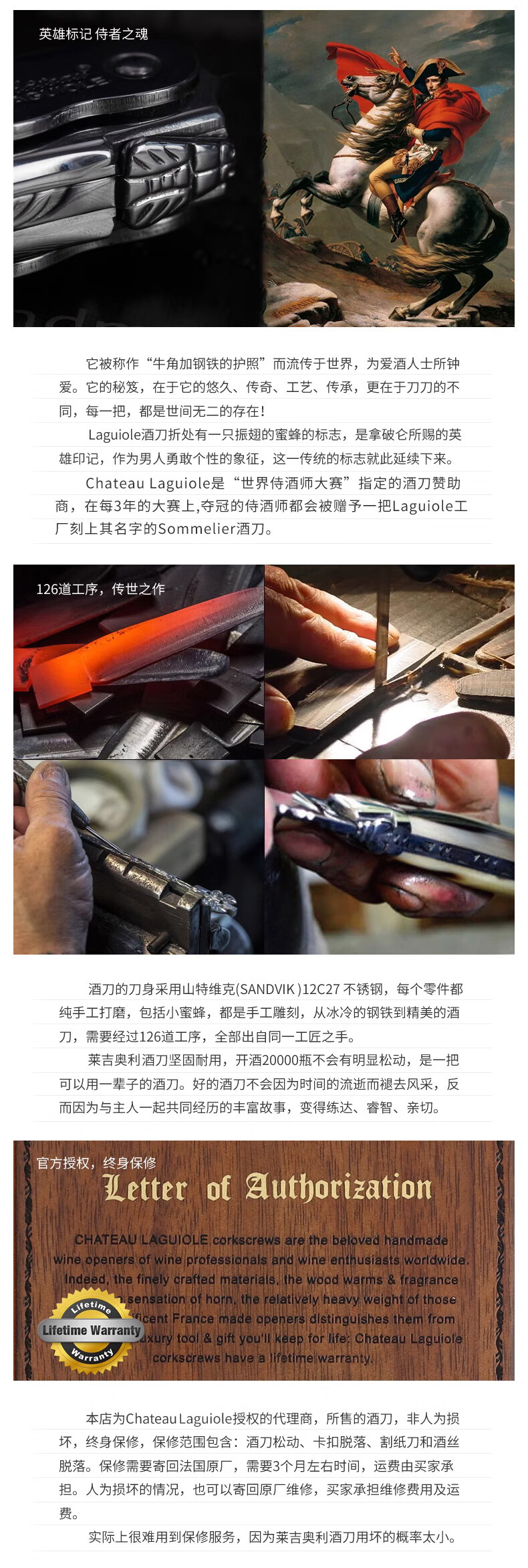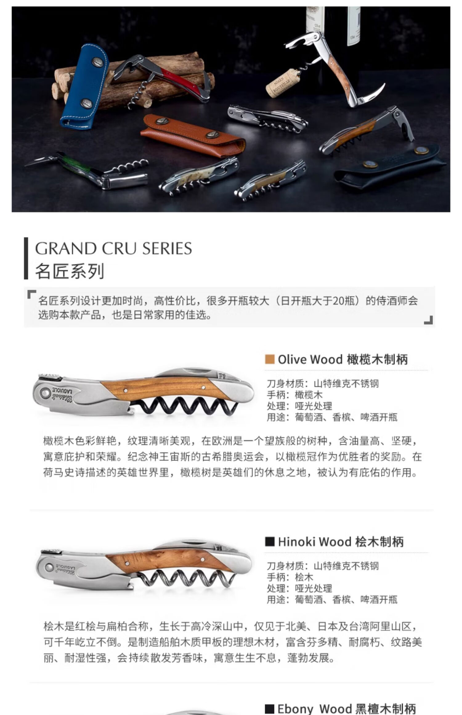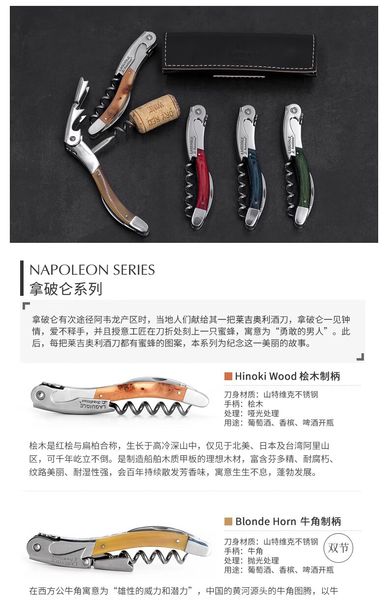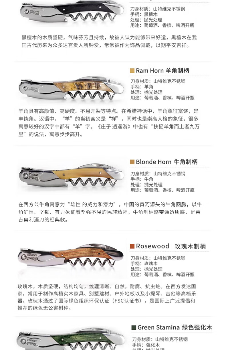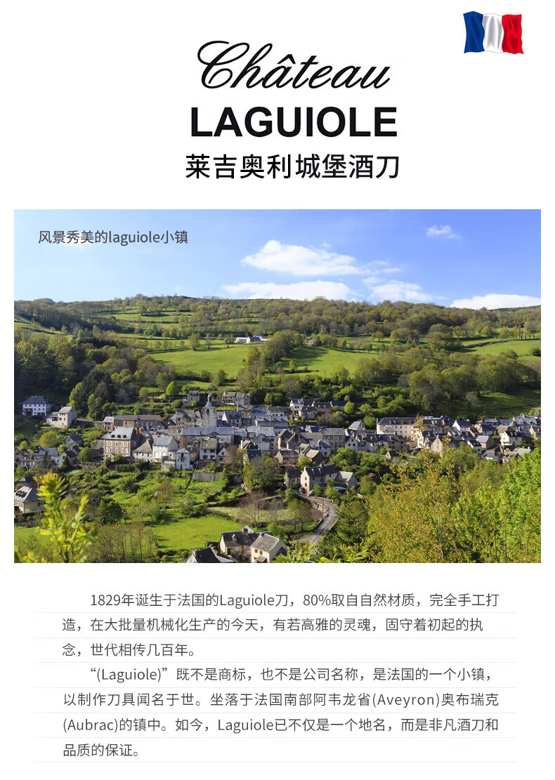 Chateau Laguiole France Legioli Castle Wine Knife Red Wine Corkscrew Unedged Seahorse Knife Classic Series Black Horn