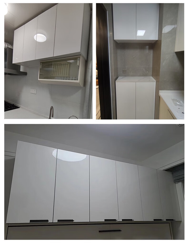 Customized solid wood kitchen wall cabinets with oil machine wall cabinets, wall cabinets, balcony cabinets, European pine high-gloss cabinet doors, P high-gloss doors, custom-made, please contact customer service before assembly.