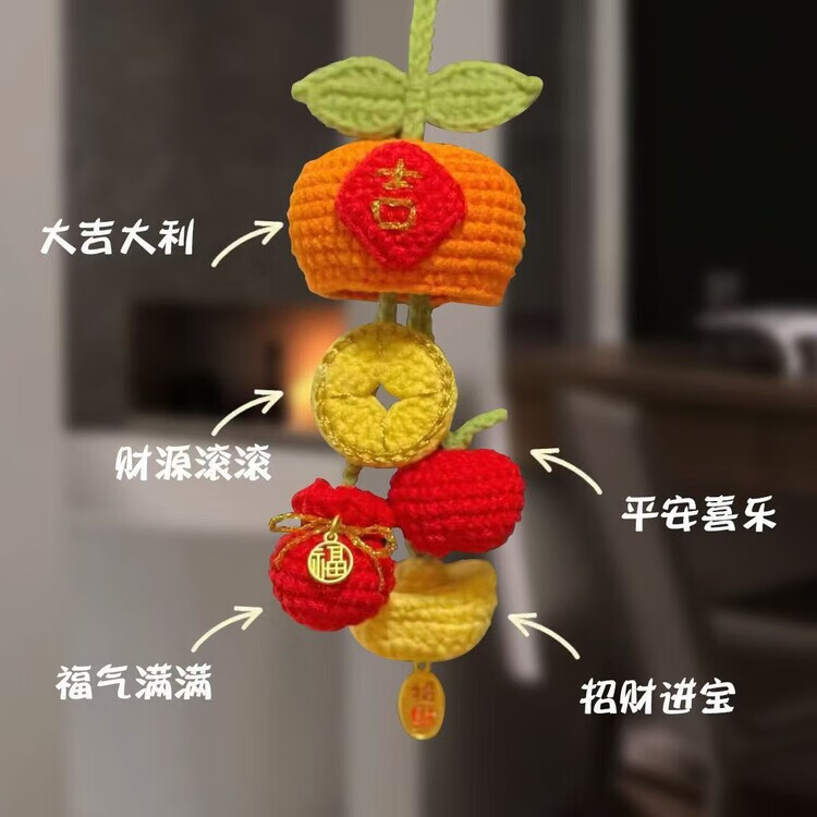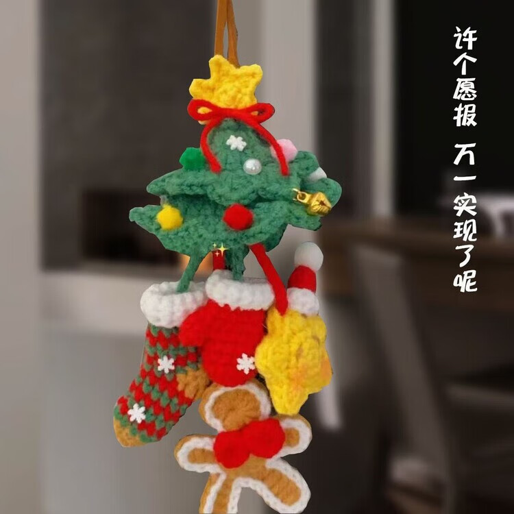Oein Christmas gift handmade diy wool crochet New Year God of Wealth bag hanging material package production creative car hanging God of Wealth Elf pendant material package free video tools