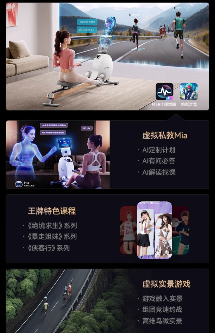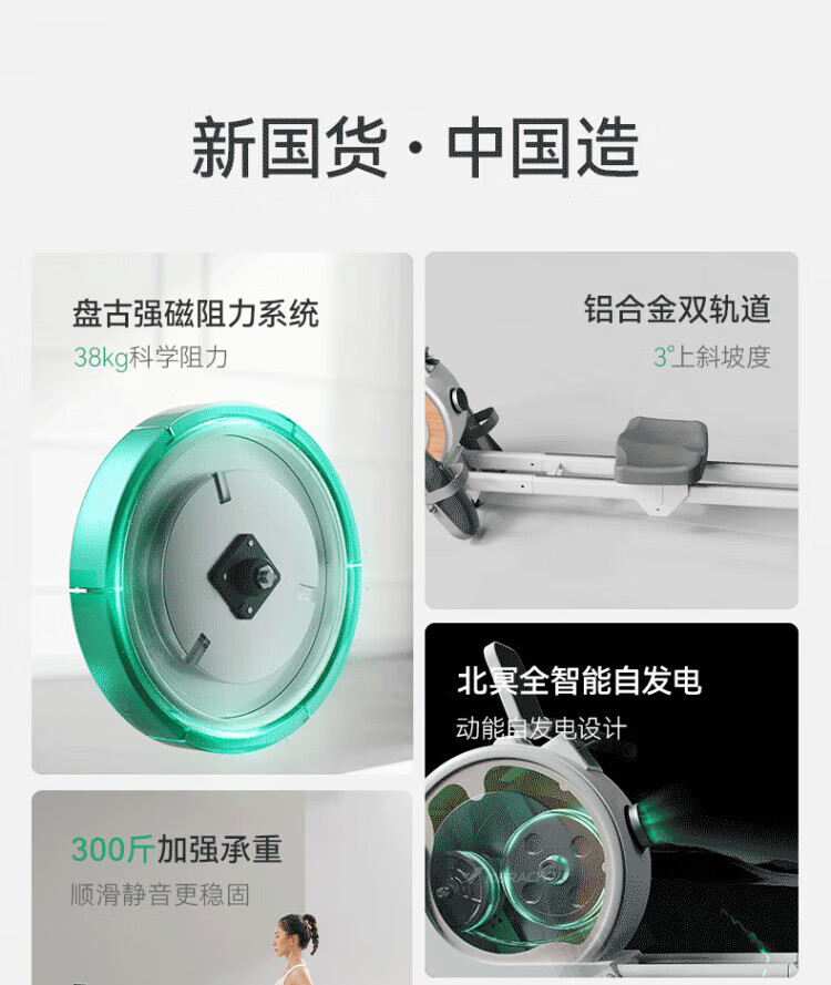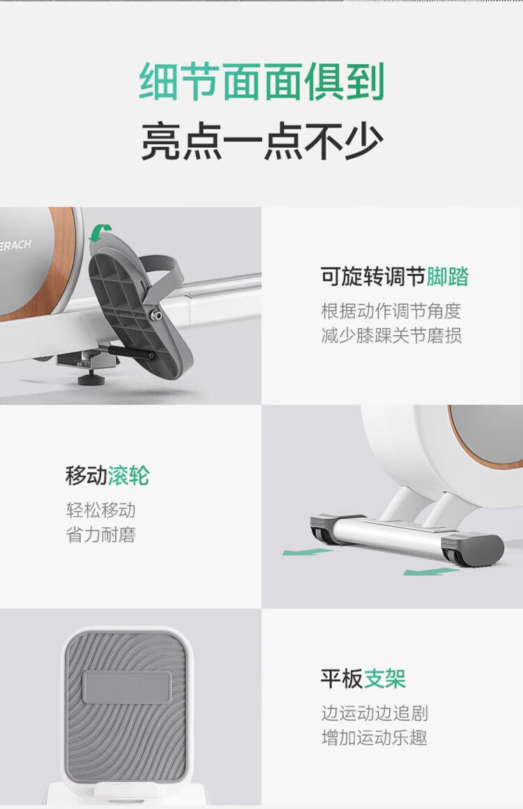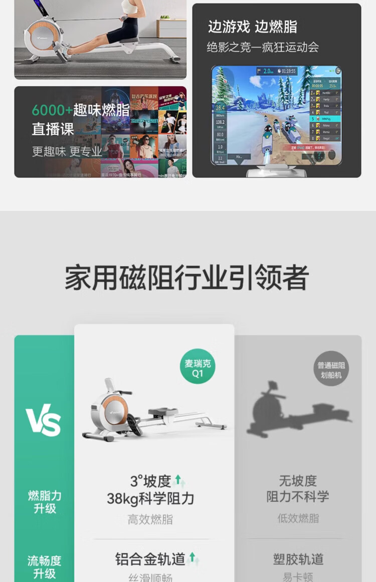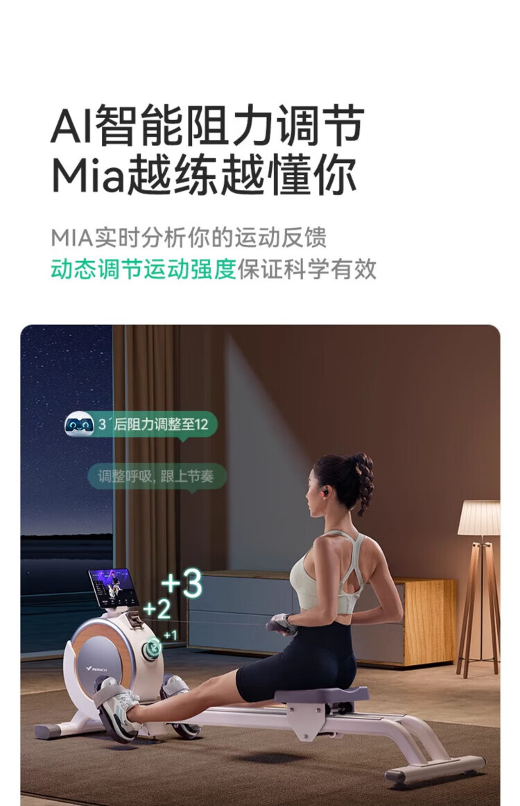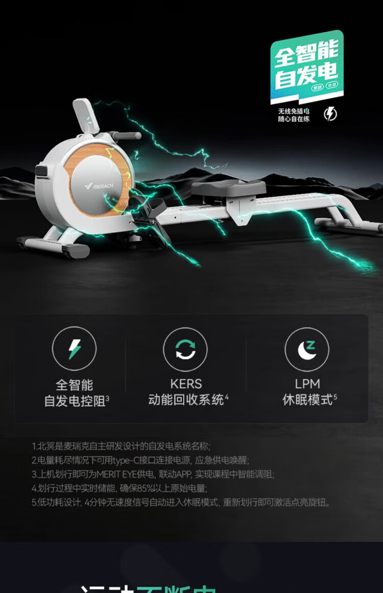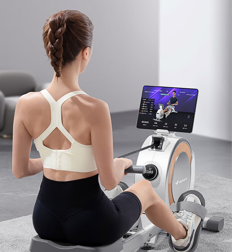 MERACH rowing machine household magnetic resistance super fat-burning comprehensive trainer rowing machine fitness equipment for women Q1S plug-in model pearl white-smart resistance adjustment-aluminum