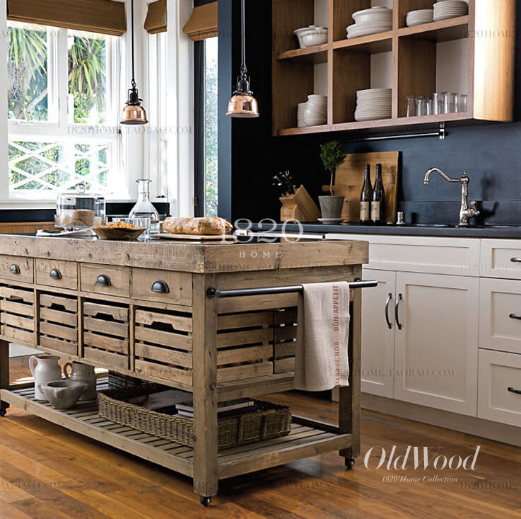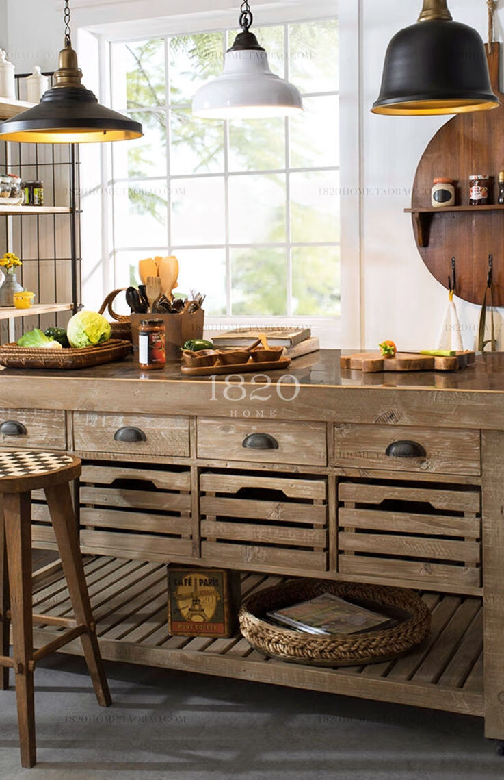 Wen Yijia Nordic American country style solid wood cabinet sideboard removable marble kitchen island console material 100*60*85 (solid wood countertop) two drawers