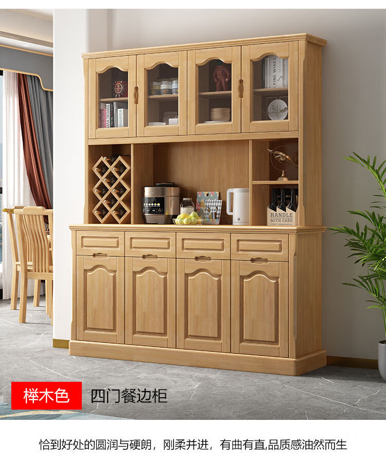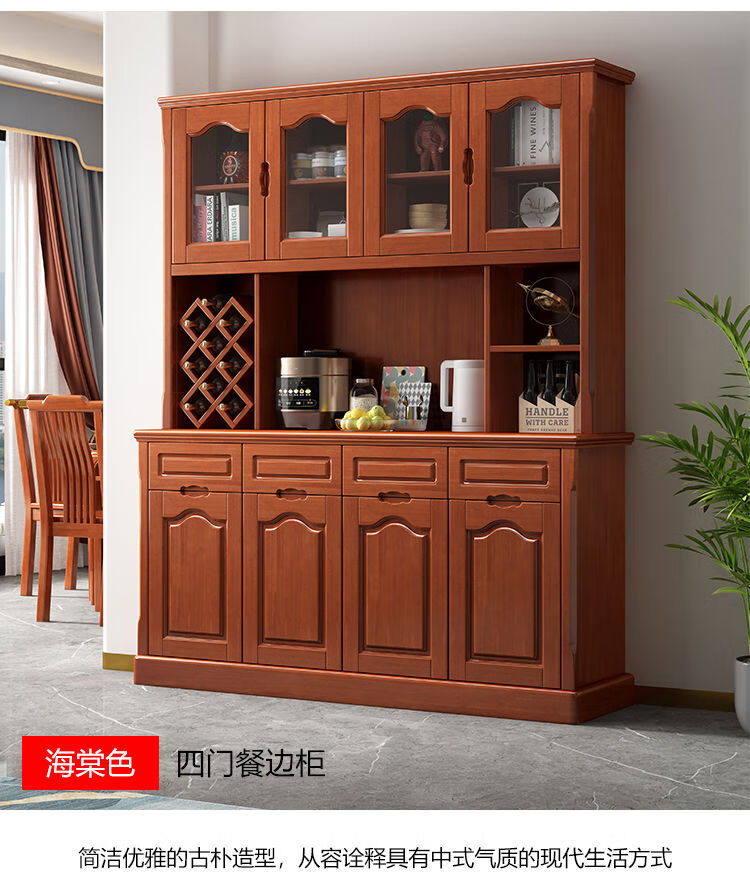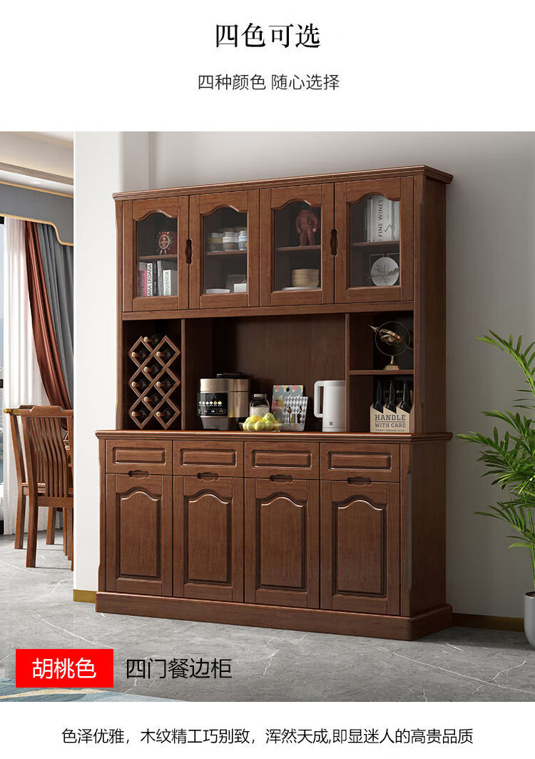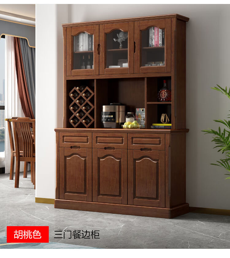 Wen Yijia customized Chinese solid wood sideboard and wine cabinet integrated living room wall tea cabinet storage cabinet kitchen cupboard dining room 1.0 meters two doors (walnut color)