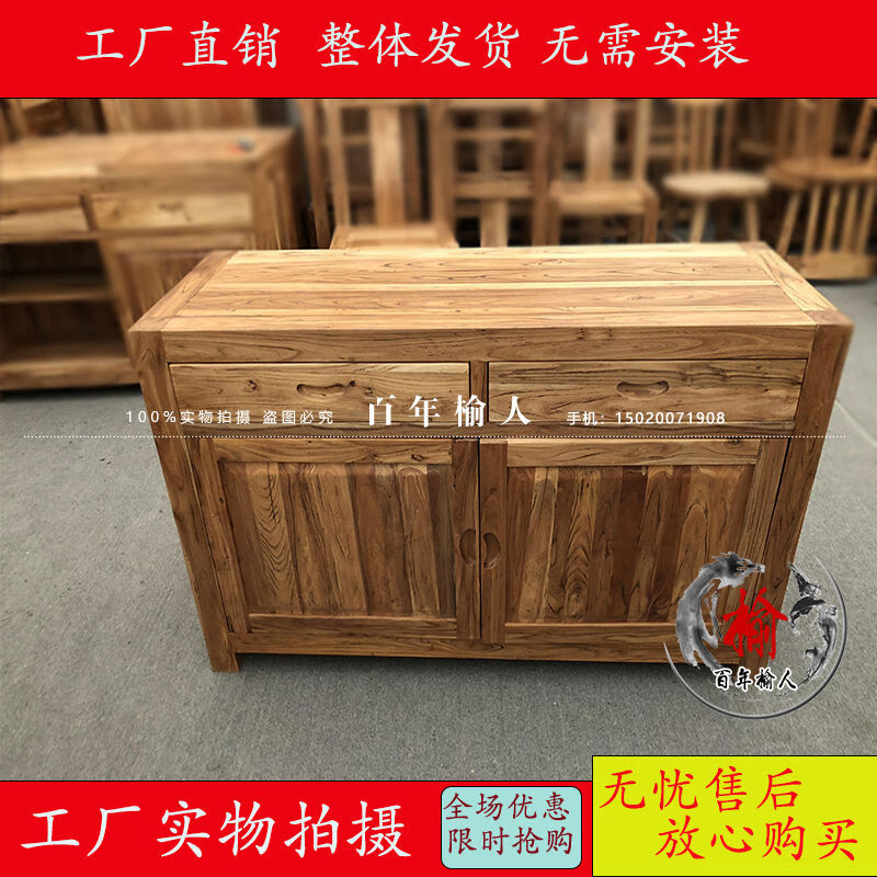 Wen Yijia solid wood sideboard manufacturer direct sales old elm sideboard storage cabinet shoe cabinet multi-functional cabinet special price 140*40*80 high (three drawers and four doors)