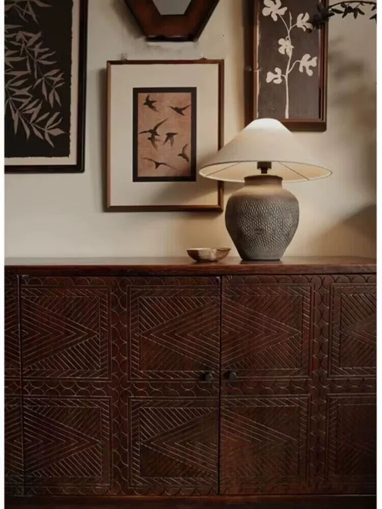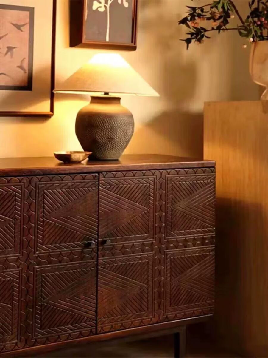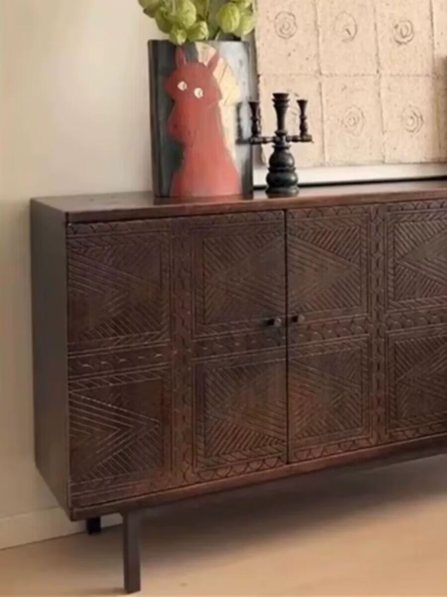 Wen Yijia Nordic medieval retro solid wood sideboard carved solid wood furniture simple light luxury all solid wood entrance cabinet storage 160*40*81cm