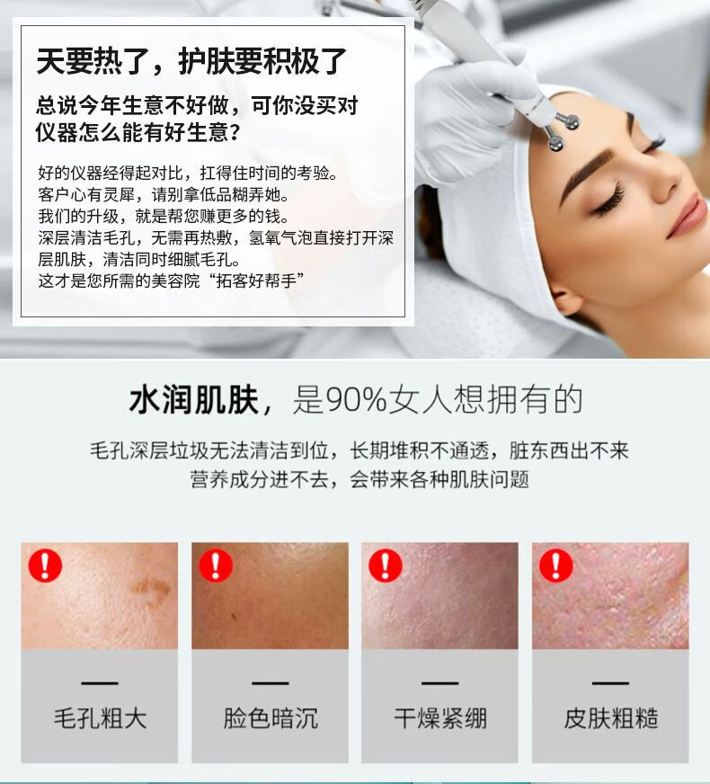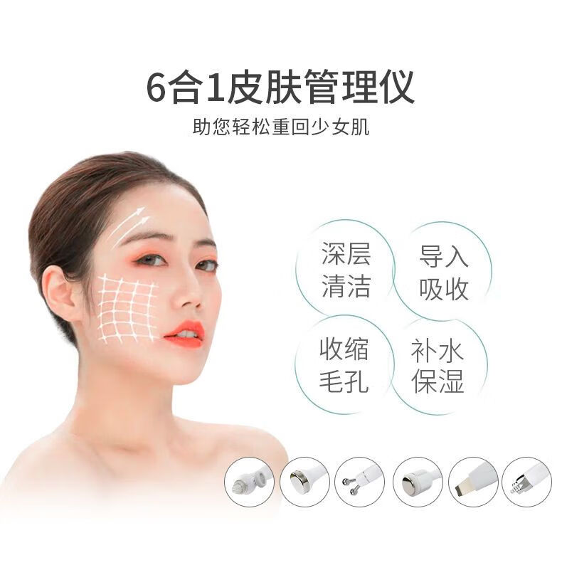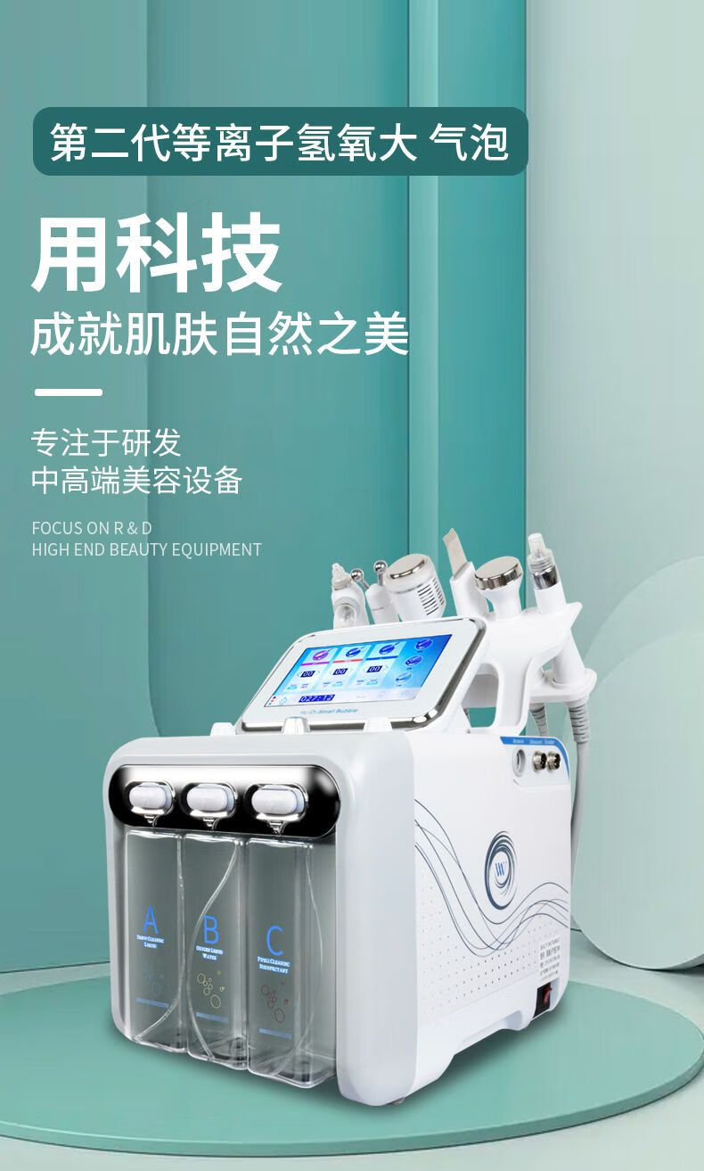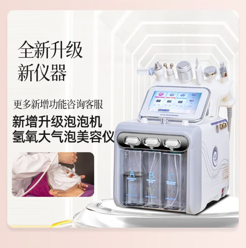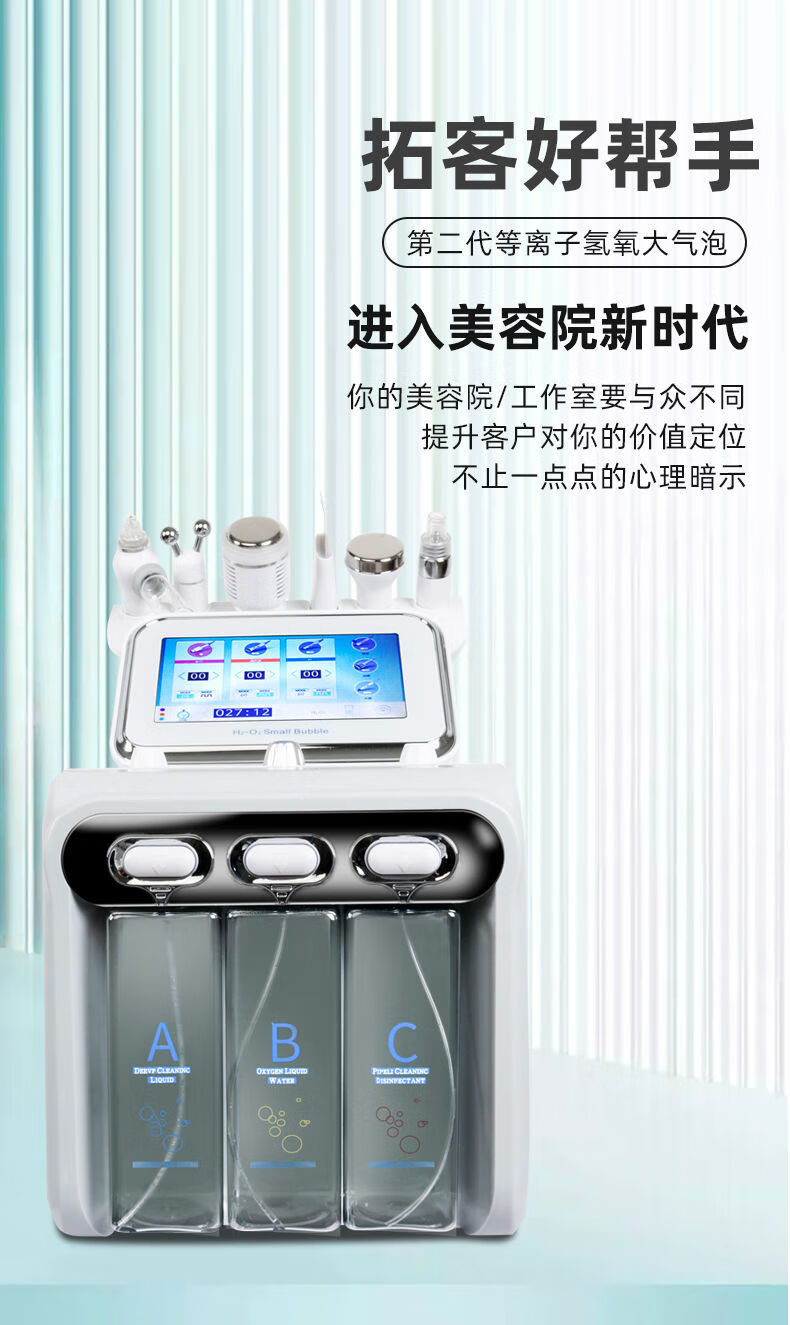 Second Generation Hydrogen Oxygen Small Bubble All-Purpose Cleansing Instrument Skin Management Comprehensive Instrument Oxygen Injection Hydration Cleansing Blackheads Beauty Salon Upgraded Model 6-in-1 (Gift + Cart)