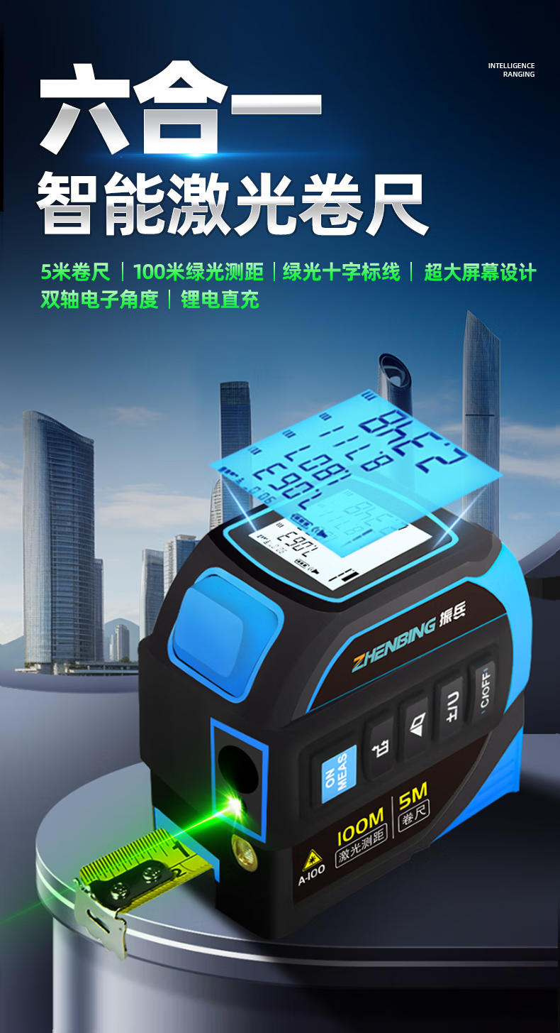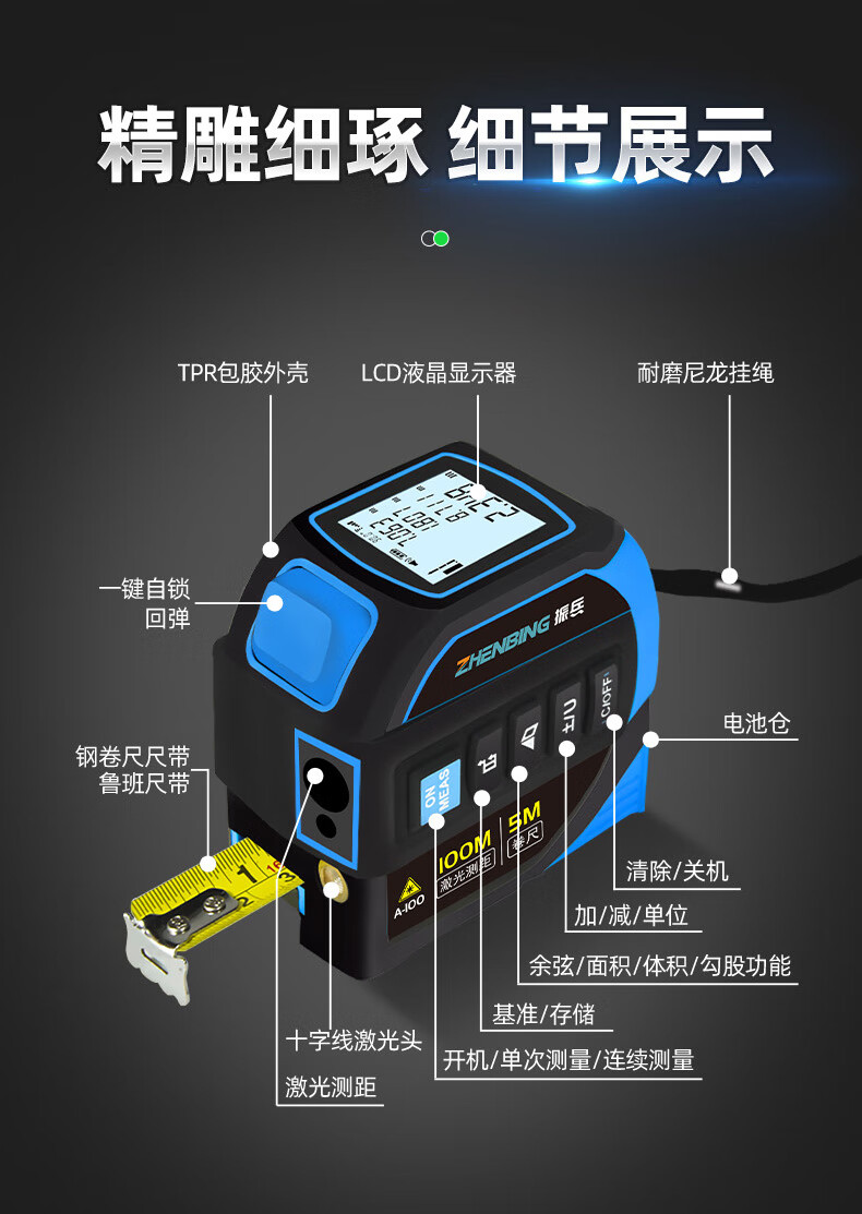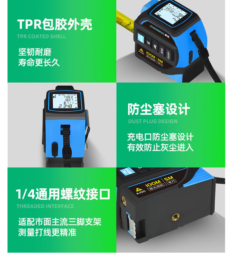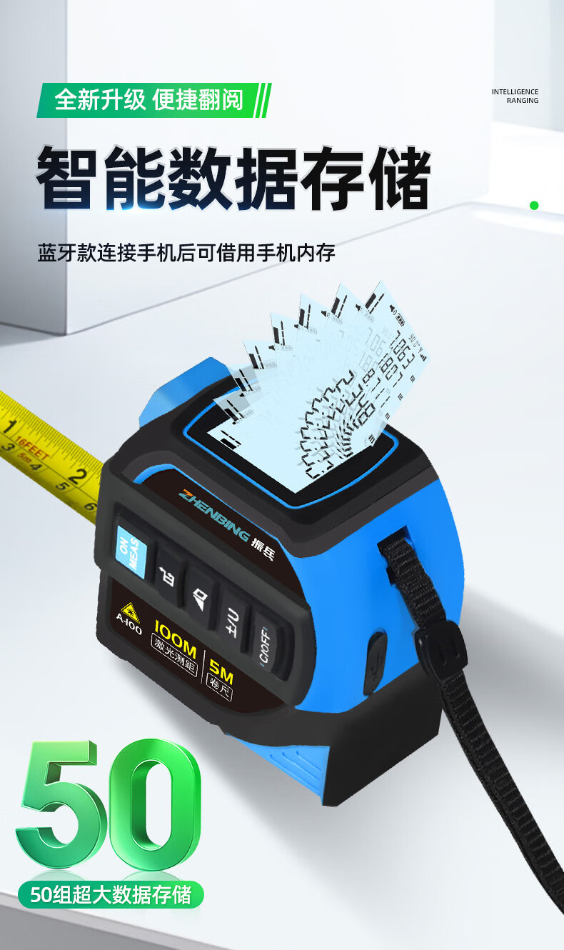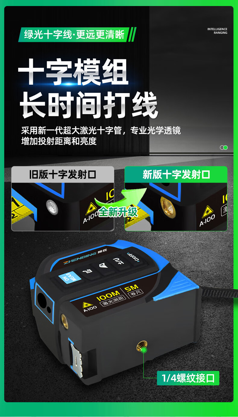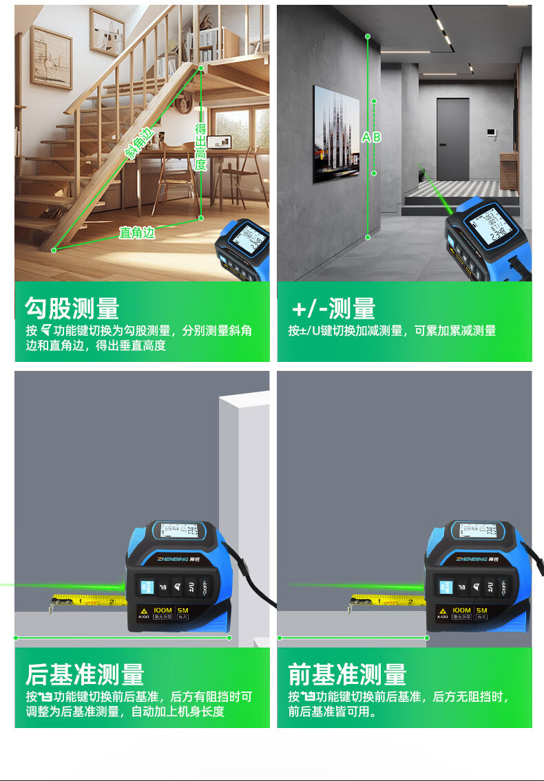 Zhenbing green light laser tape measurer handheld infrared electronic ruler cross line box ruler measurement distance tool green light 40 meters + green light cross line + 5 meter steel tape measure