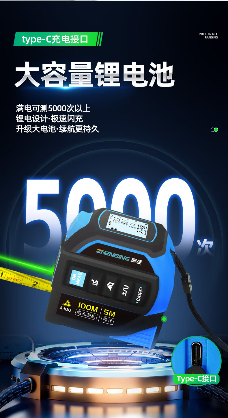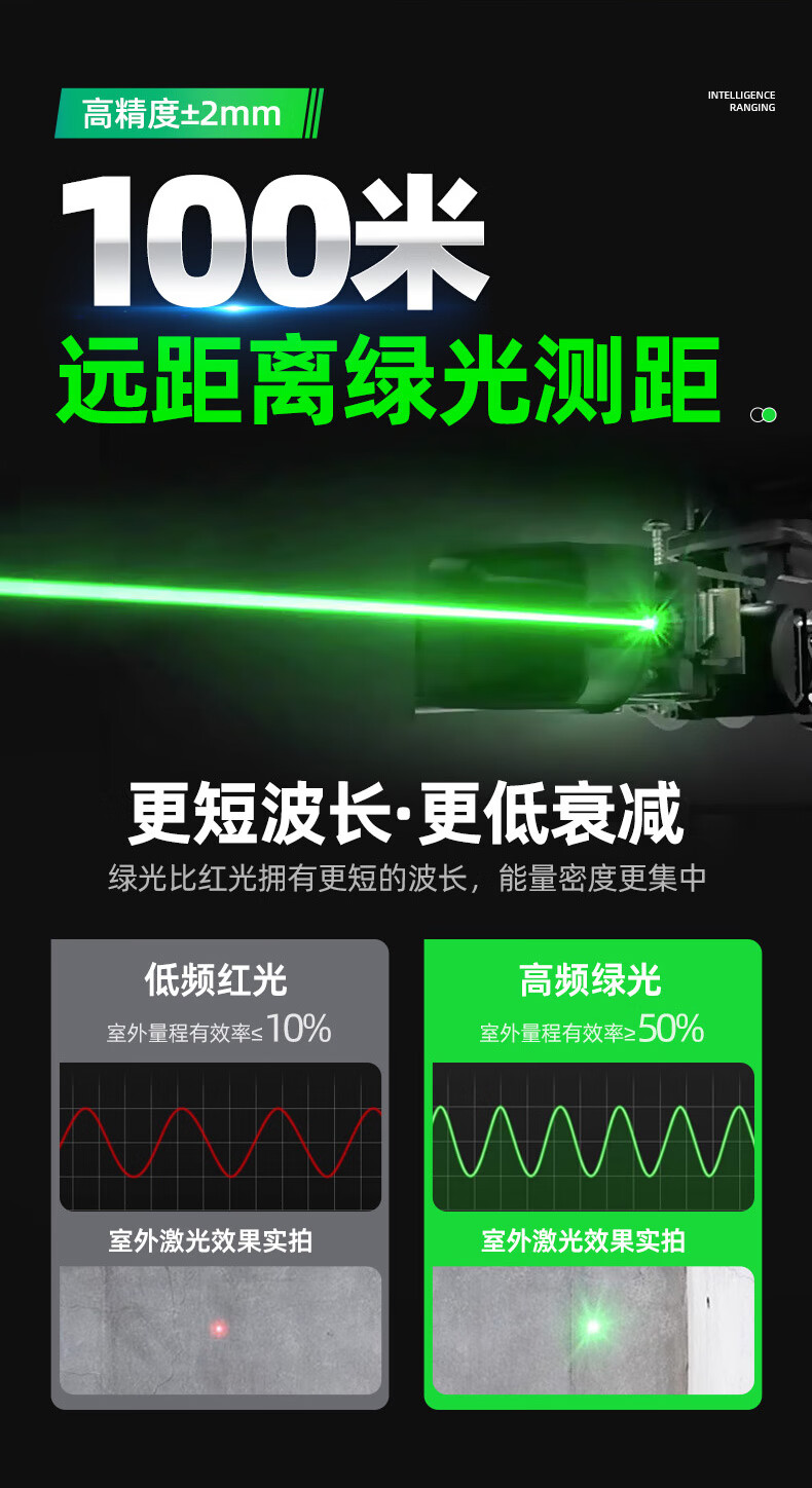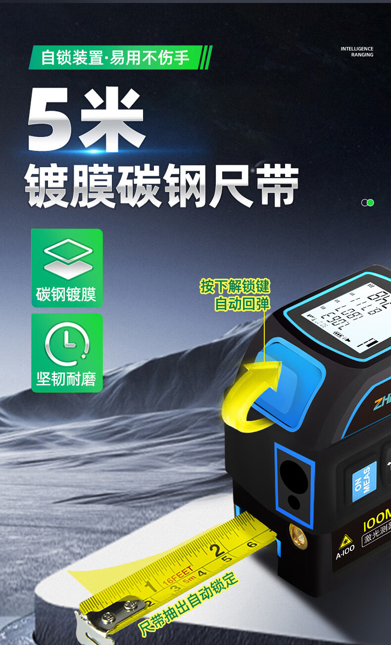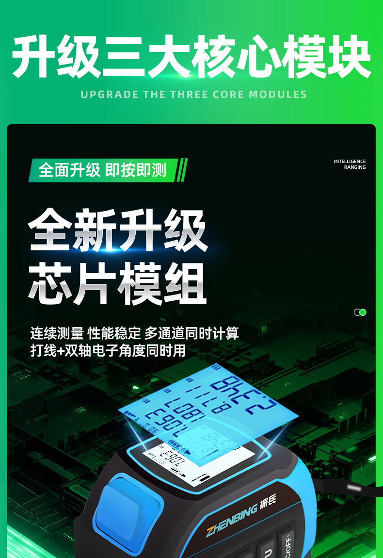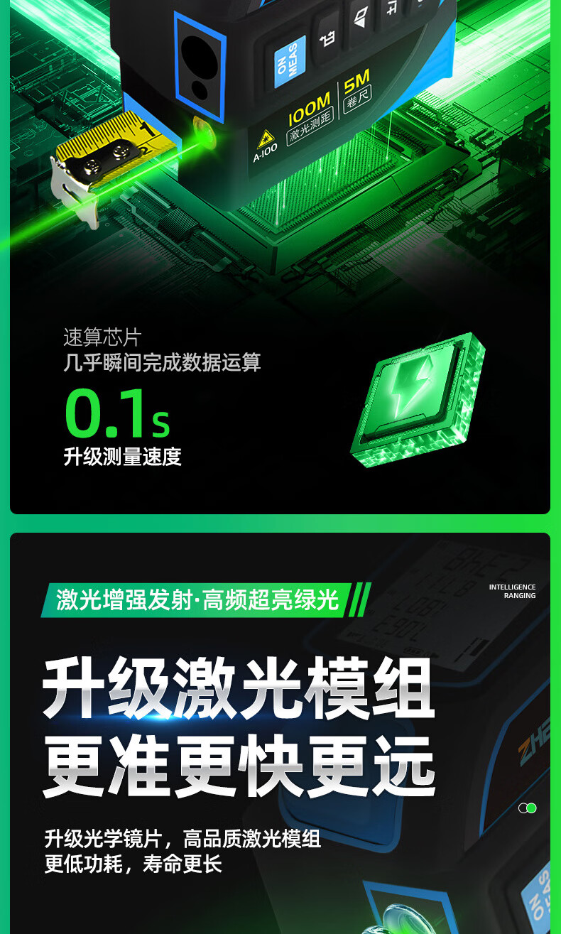 Zhenbing green light laser tape measurer handheld infrared electronic ruler cross line box ruler measurement distance tool green light 40 meters + green light cross line + 5 meter steel tape measure