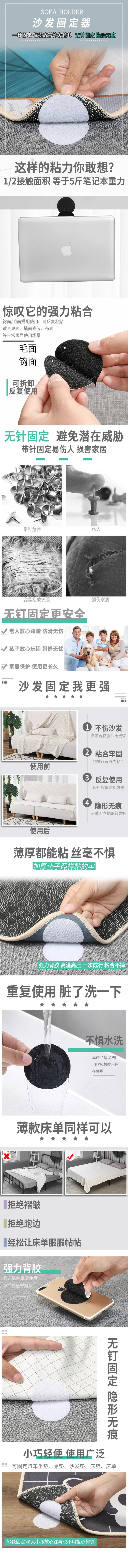 Miling bed sheet, sofa cushion, silicone needleless invisible patch, household quilt holder, anti-slip artifact, strong adhesive mattress, 20 pairs, thickened white * round