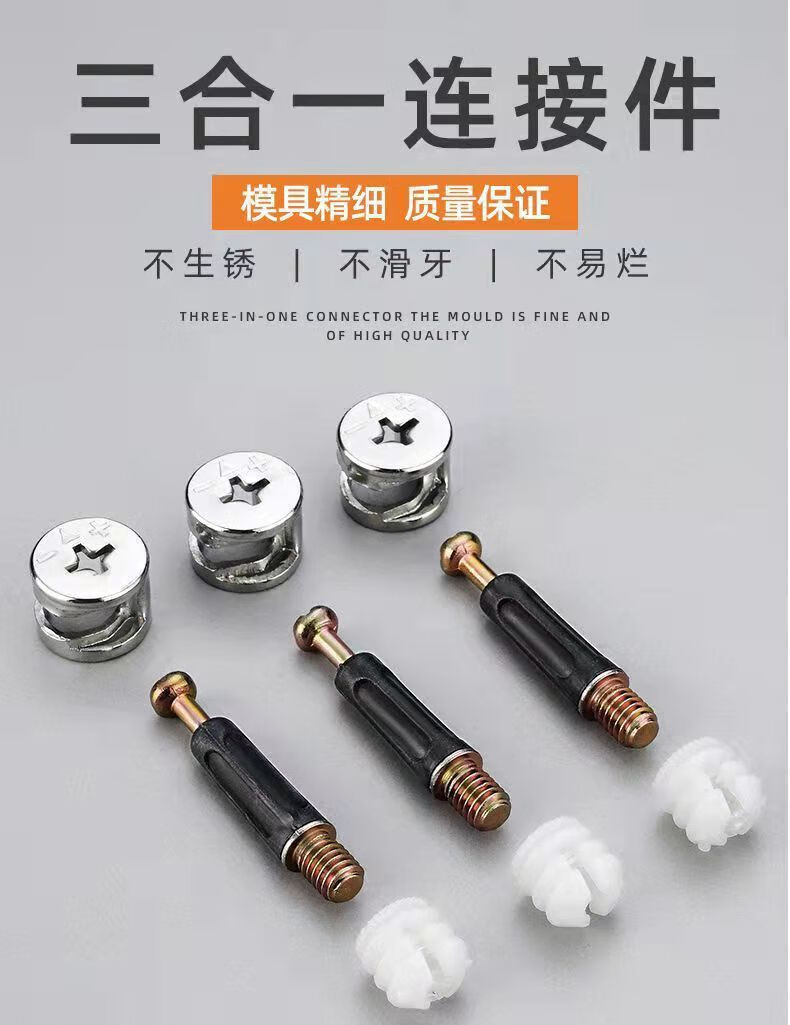 Nufeng eccentric wheel furniture three-in-one connection piece bed wardrobe panel furniture assembly accessories thickened screws and nuts 20 sets 15mm eccentric wheel + 40mm screw + 10mm expansion plug