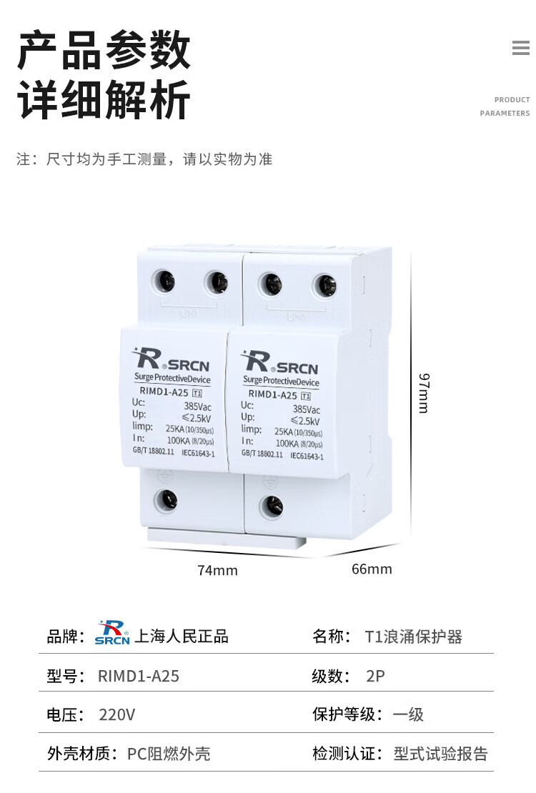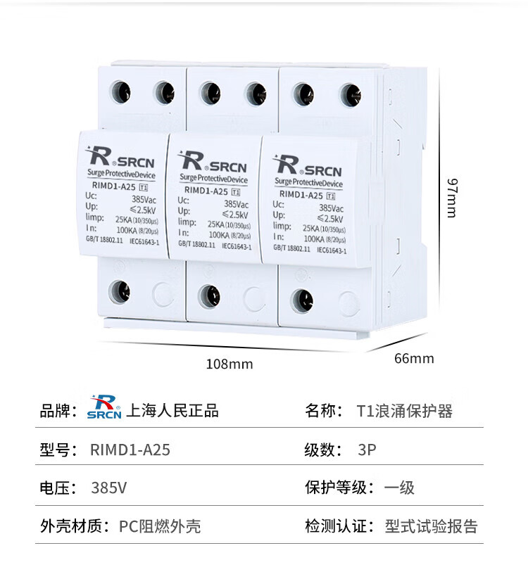 Shanghai People's first-level surge protector T1 lightning surge protection SPD12.5KA15KA25KA (10/350 s) 4P 15KA