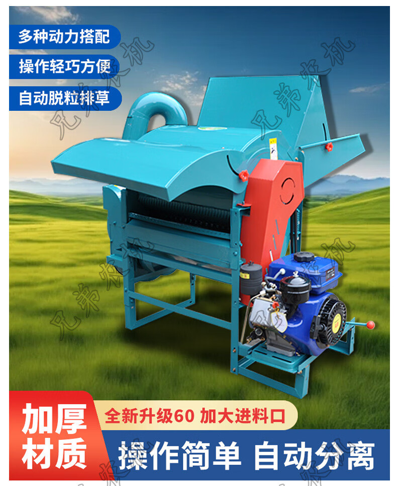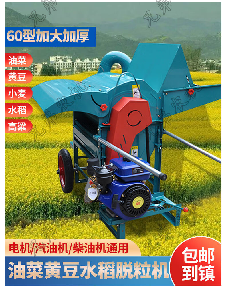 Wen Yijia's new model 60 rapeseed rice thresher, large diameter, full feeding, soybean, sorghum and wheat threshing, small harvester, 60 extra thick thresher + wheel (unpowered)