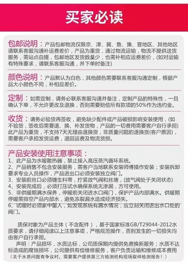 Chiweng steel radiator large water channel household central heating water heating radiator wall-mounted horizontal bedroom living room heating customized various sizes (thickness 2.0) 0mm*0 column