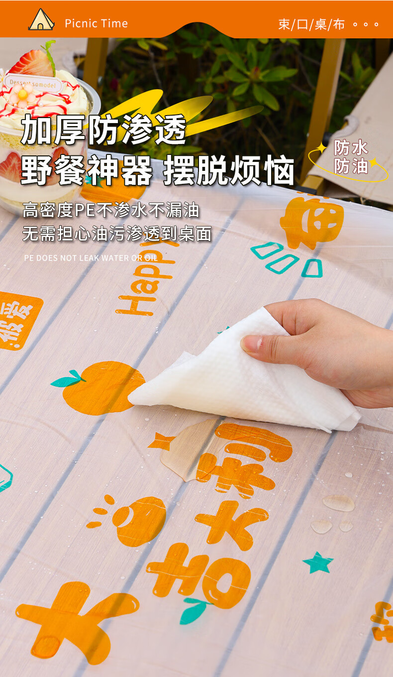 Qianhua Cartoon Disposable Picnic Table Cloth Picnic Outdoor Camping Cake Roll Table Mat Thickened Oil-proof and Waterproof Table Cover Length 90* Width 60cm Picnic Long Table 10 pieces