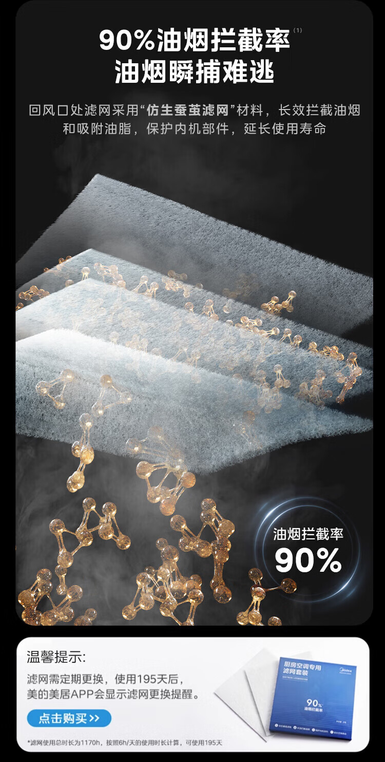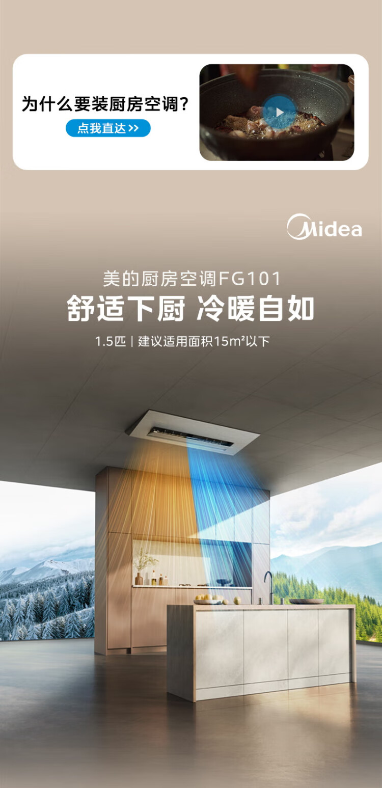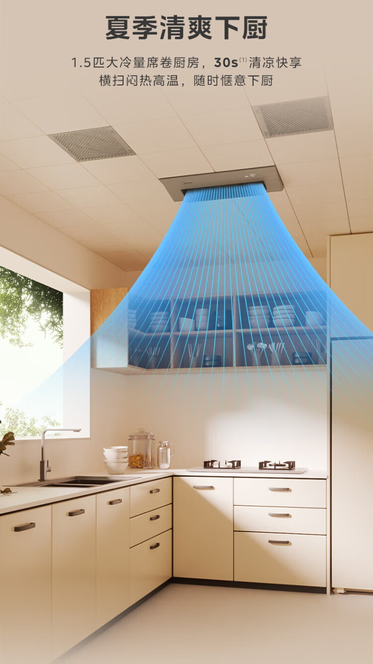 Midea (Midea) Large 1.5 HP Kitchen Air Conditioner Small Cooling Square Embedded Frequency Converter Level One Energy Efficiency Energy Saving Special Kitchen Air Conditioner Household Integrated Ceiling Refrigeration Kitchen Air Conditioner Large 1.5 HP Kitchen Air Conditioner Without External Unit